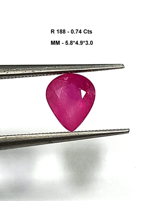 Sourced from the renowned mines of Burma, this 0.74 carat ruby exhibits a pear cut that enhances its natural beauty and brilliance.