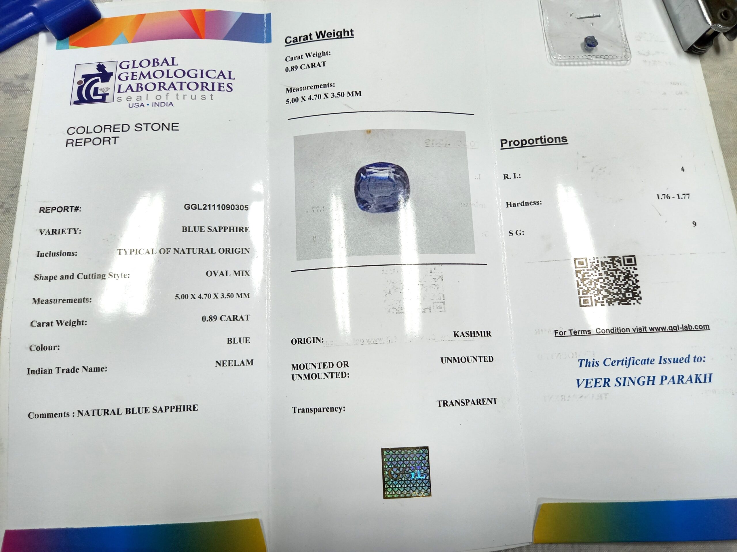 This 0.89 Cts Certified Natural Kashmir Blue Sapphire is authenticated, which means it has undergone thorough testing to assure buyers of its origin and quality. Only sapphires sourced from the Kashmir region can boast the prestige and historical significance associated with this gemstone. Owning a certified natural Kashmir Blue Sapphire is not just about possession; it is about owning a piece of history.