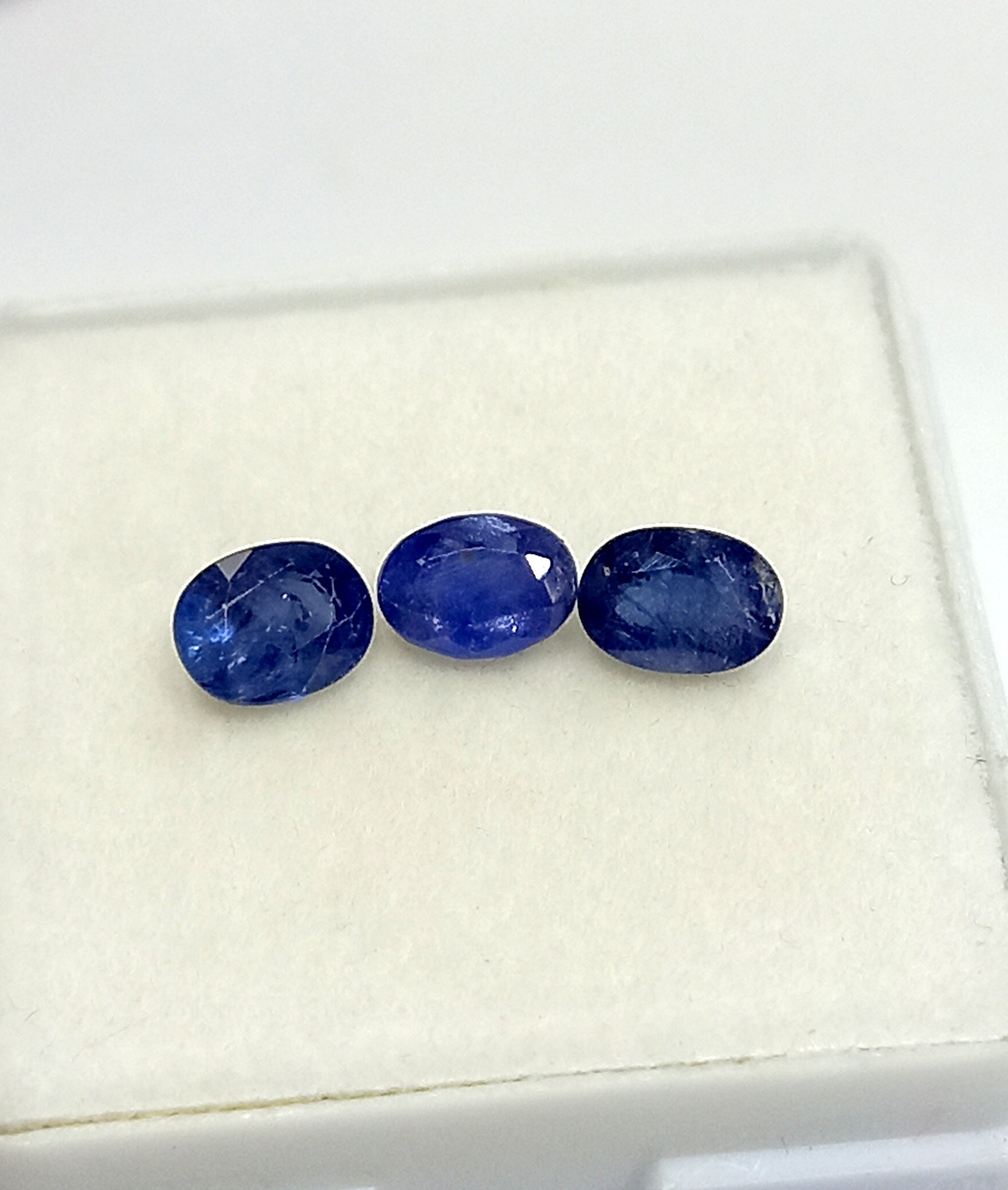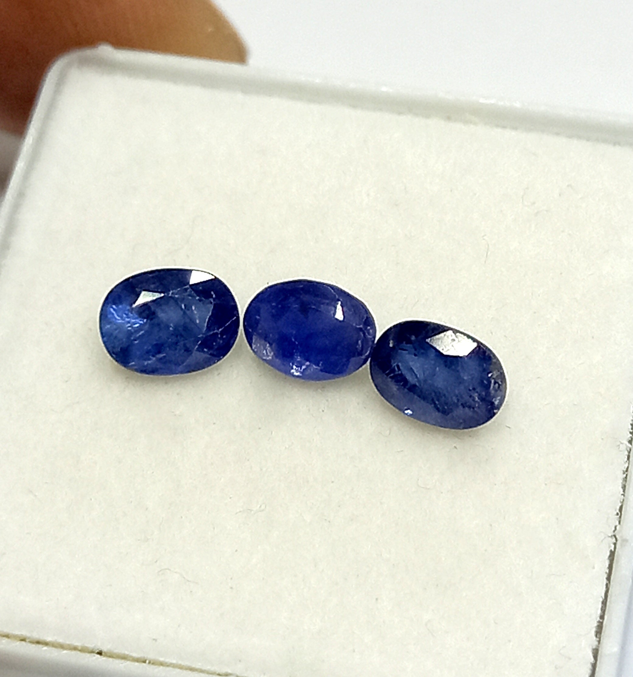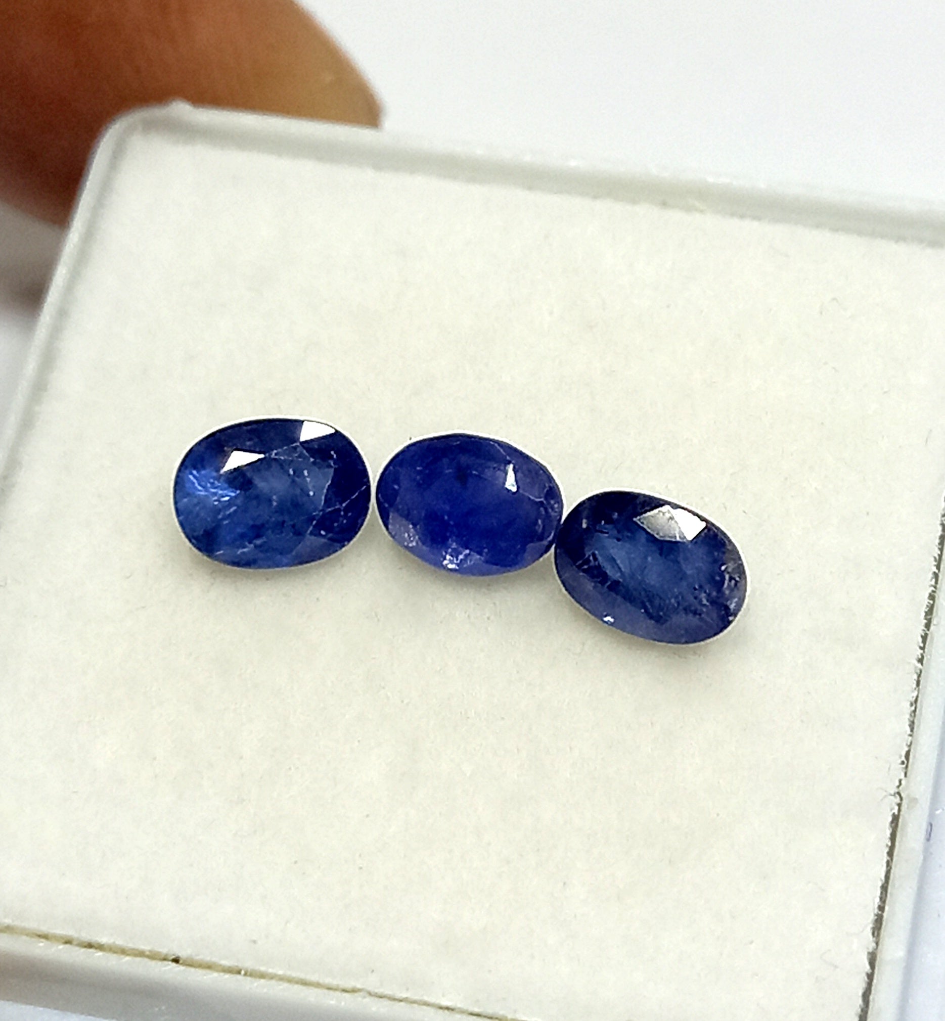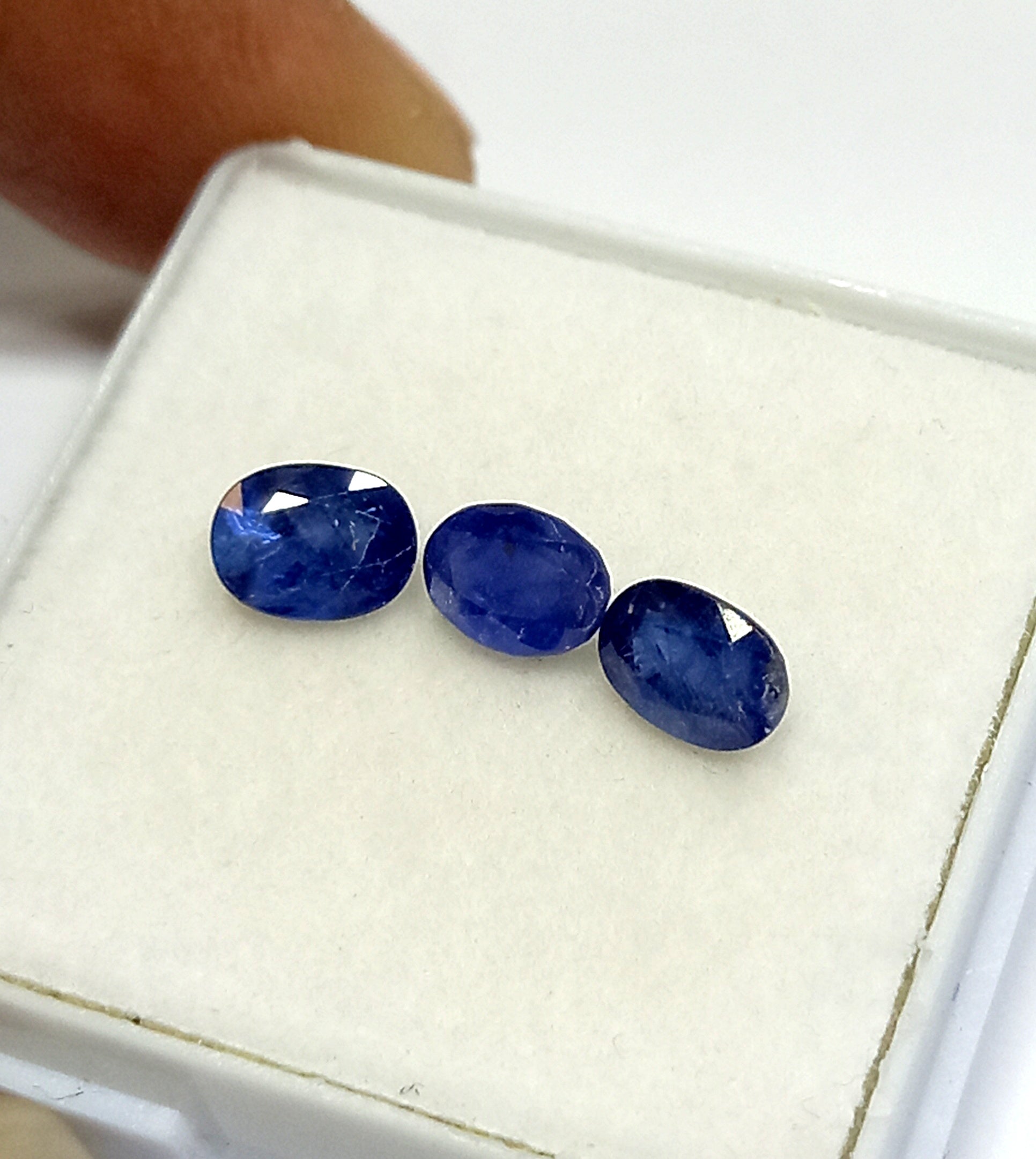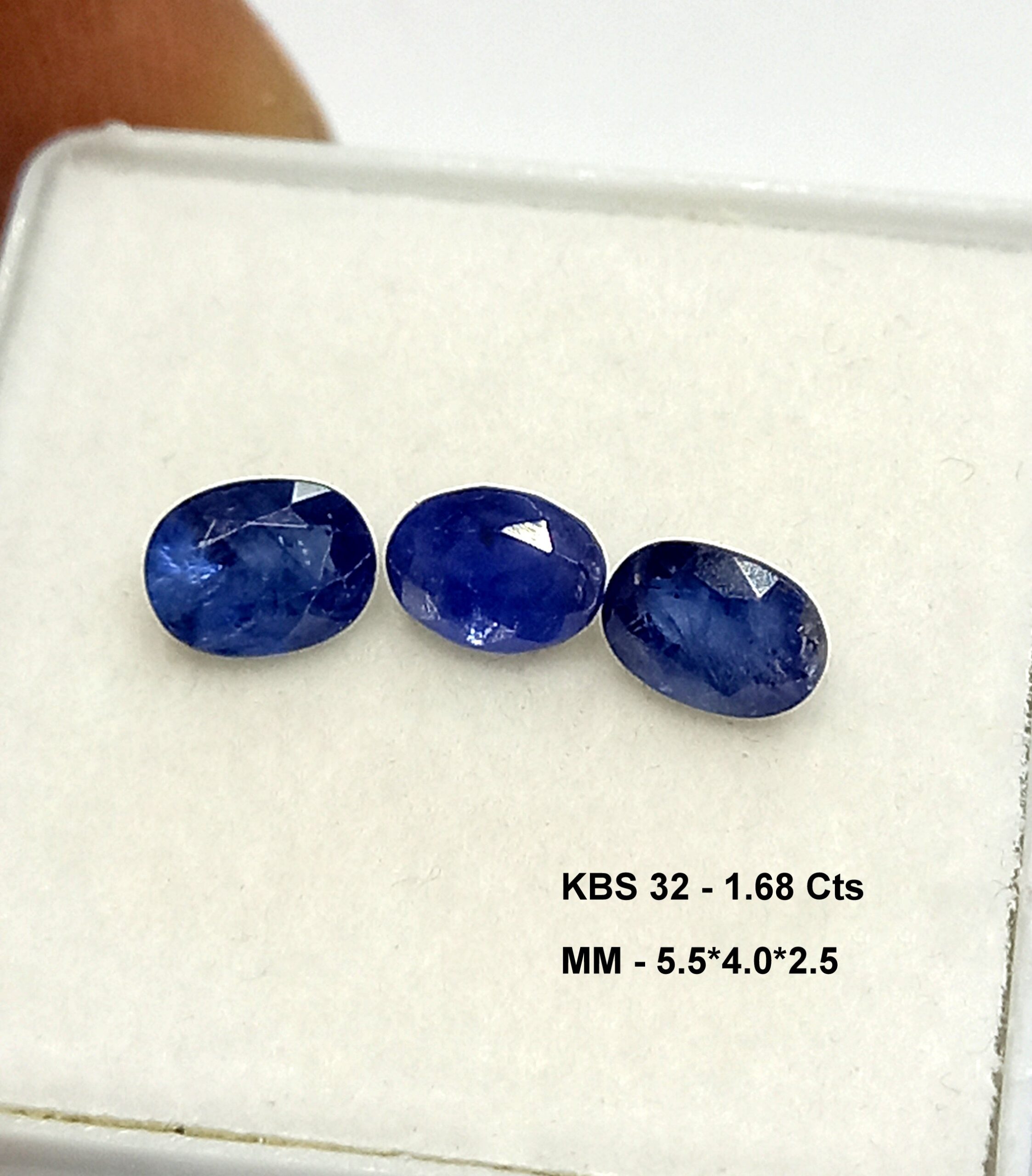 This specific product features a total of 1.68 carats of Natural Kashmir Blue Sapphire, meticulously cut into an oval shape measuring 5.5x4mm. Each stone is distinctive, showcasing the exquisite craftsmanship that goes into gemstone cutting. With three pieces included, this collection is perfect for jewelry designers or anyone looking to enhance their personal gem collection.