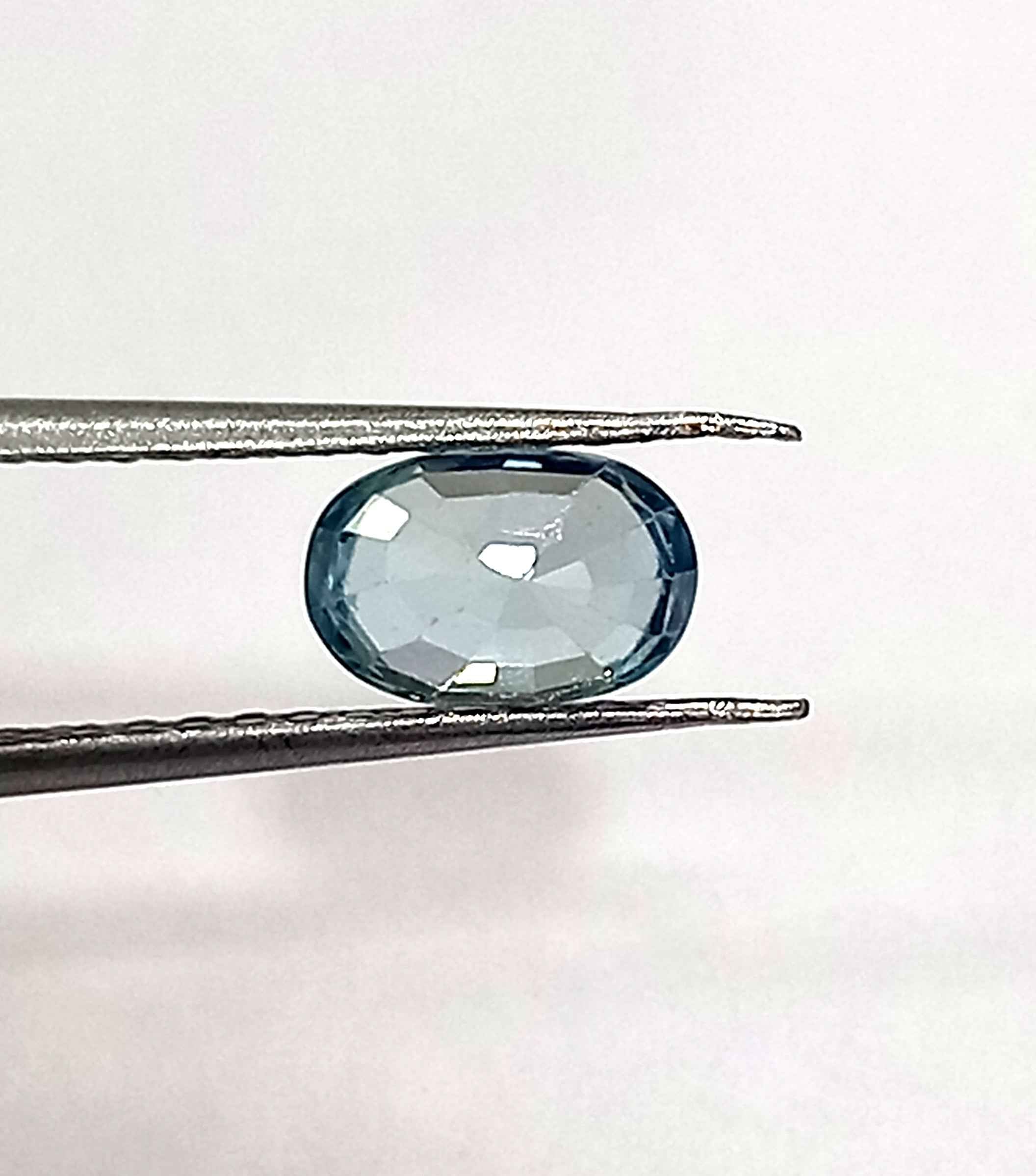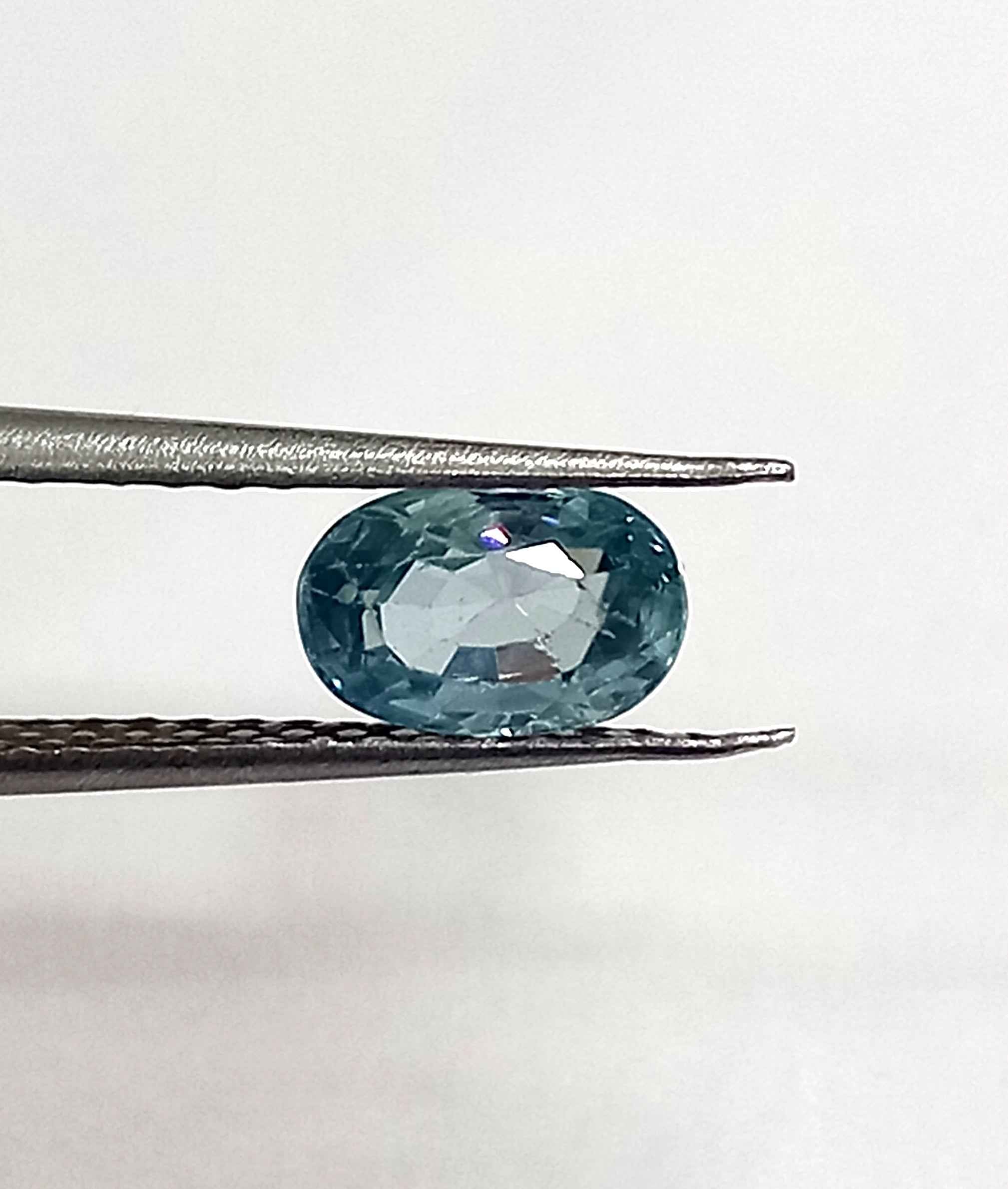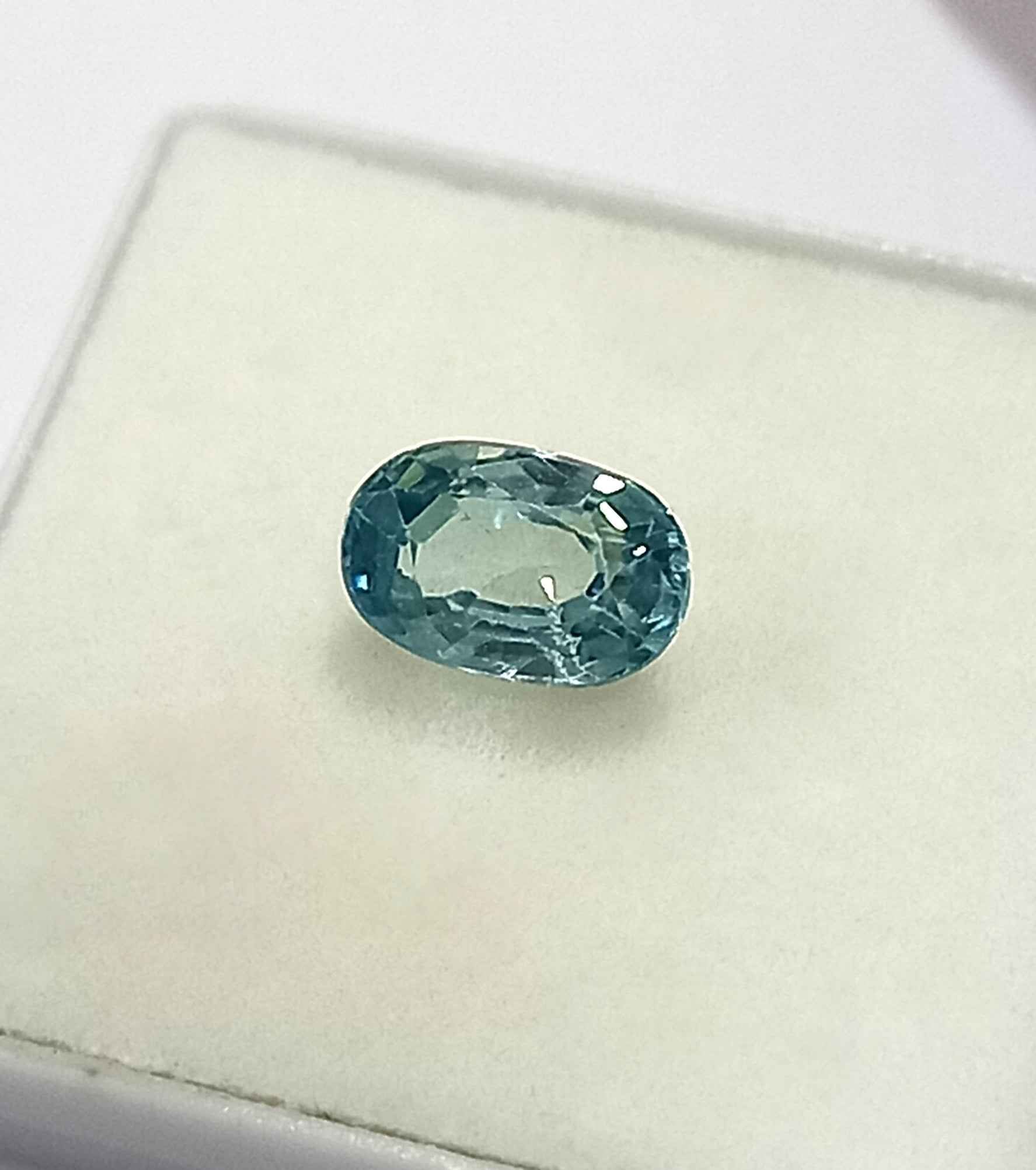 With a stunning blue hue, it measures 7.6*5 MM and boasts a perfect oval cut.