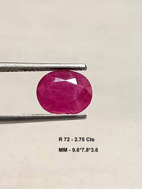 This exquisite 2.75 Cts Natural Mozambique Red Ruby showcases a beautiful oval cut and impressive dimensions of 9.6*7.8 MM, making it an ideal choice for collectors and jewelry enthusiasts alike.
