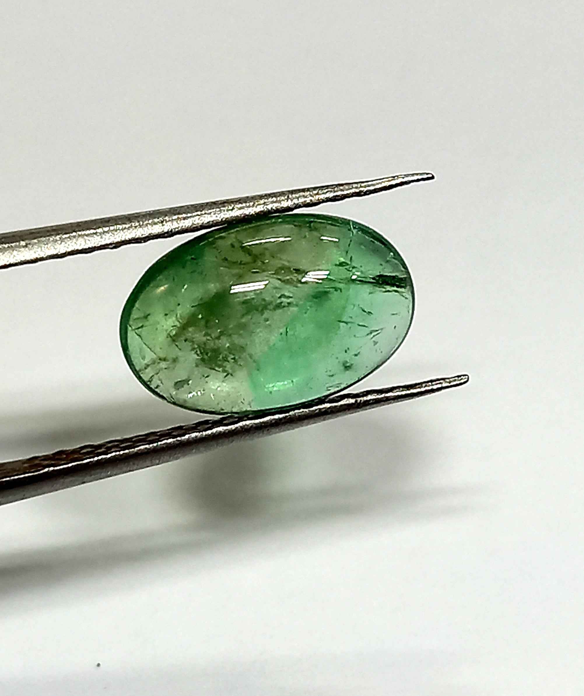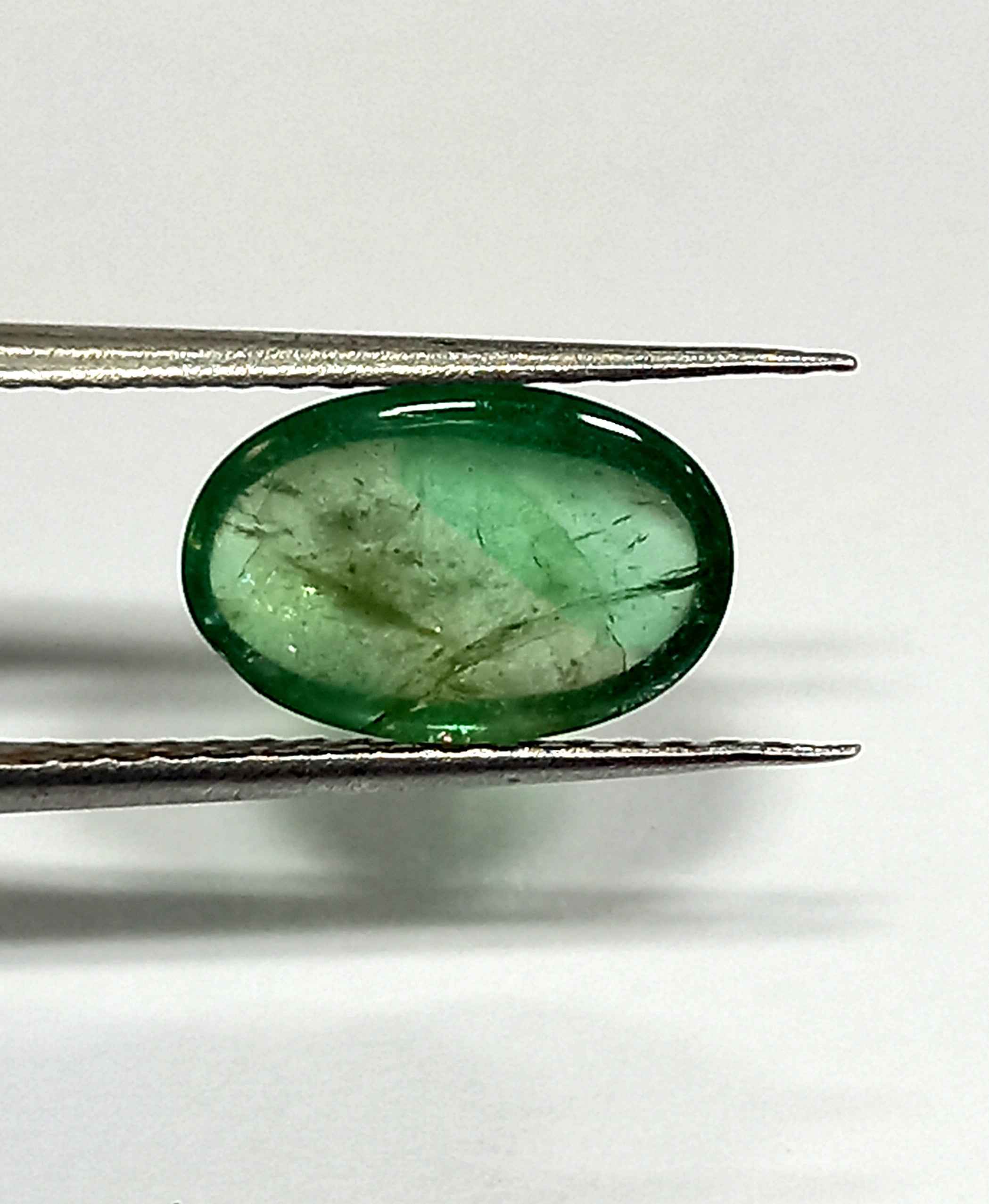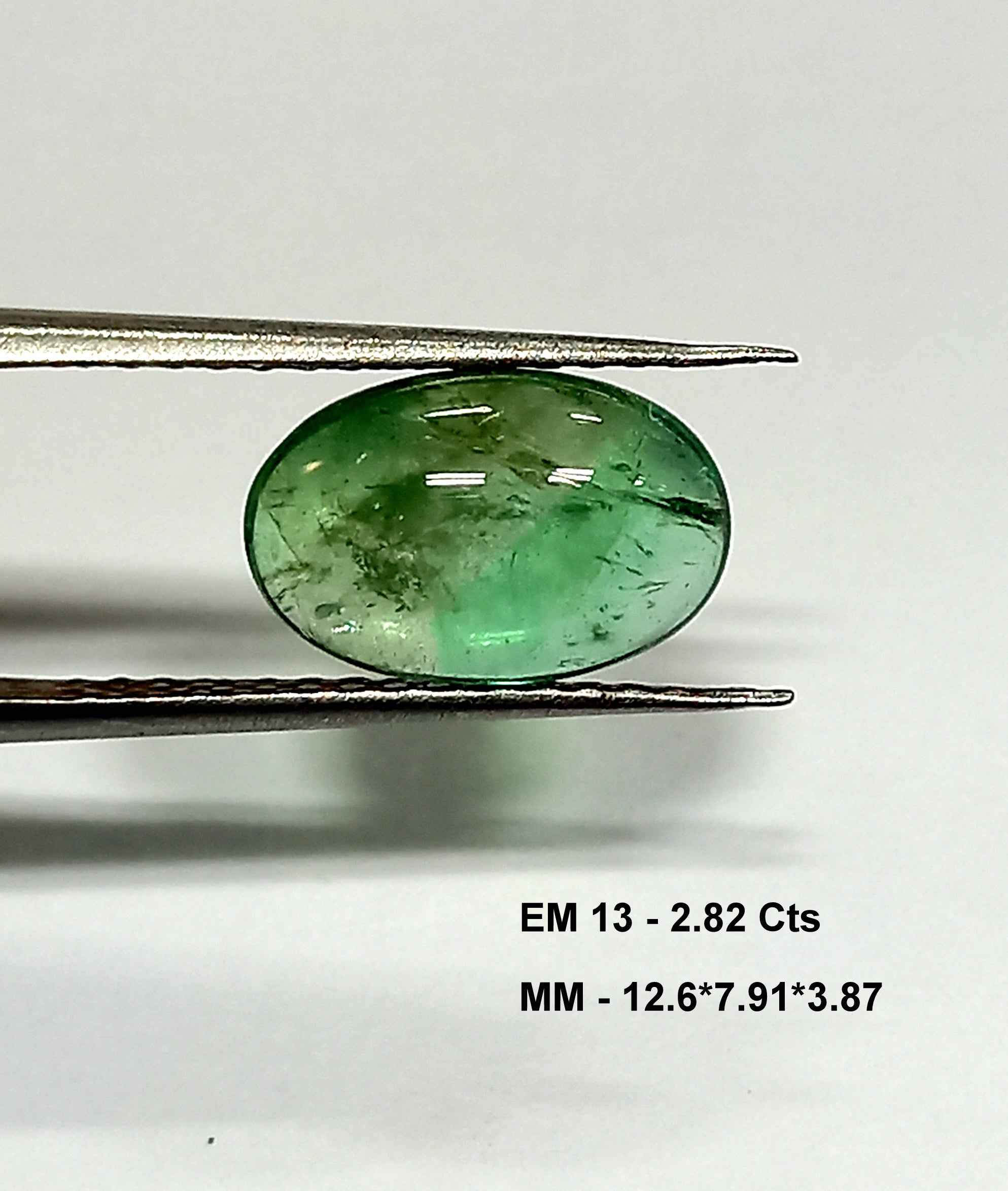 Zambian Emerald Gemstone Expertly crafted, this 2.82 carat oval cabochon natural Zambian emerald gemstone boasts a size of 12.6*7.91 MM.