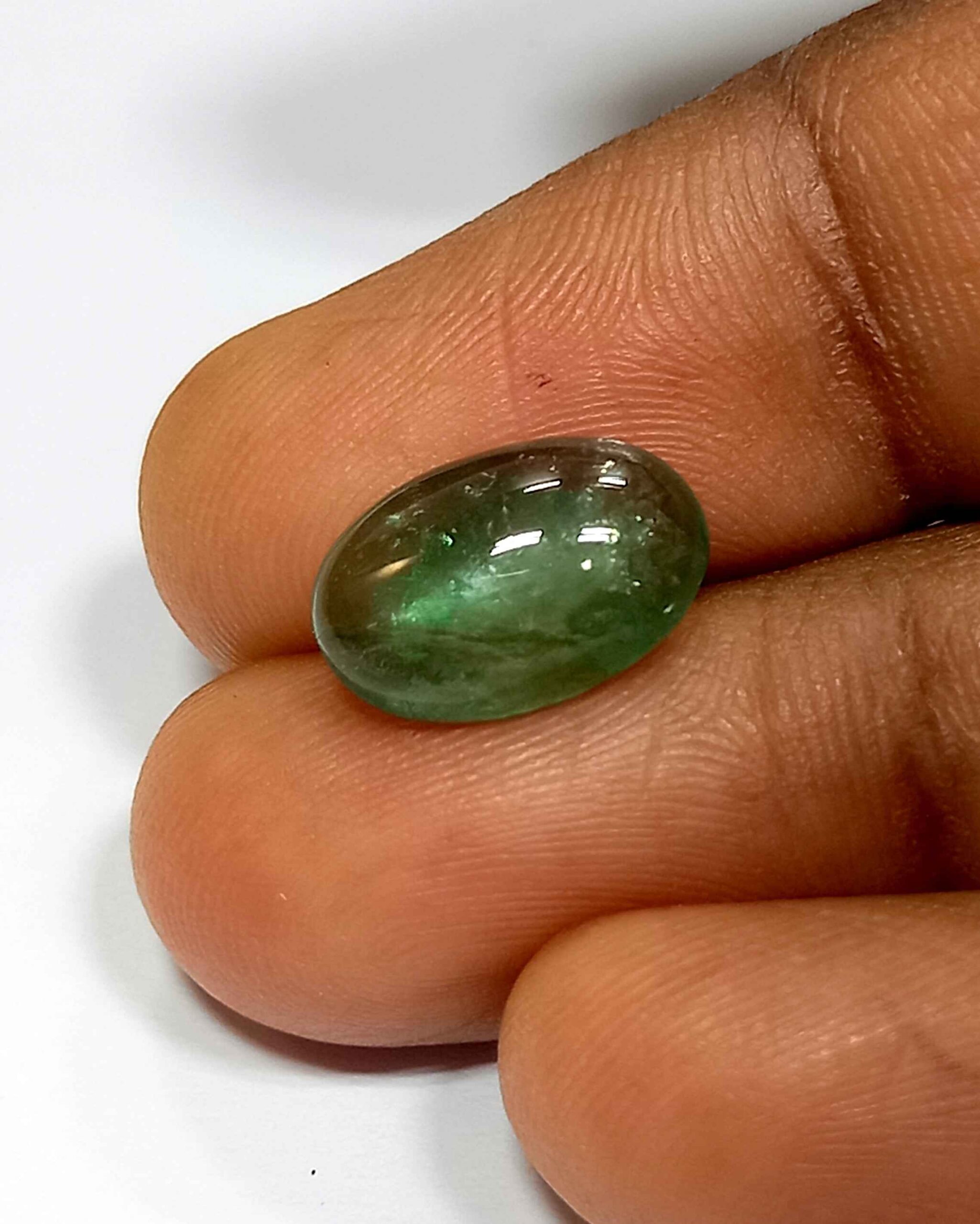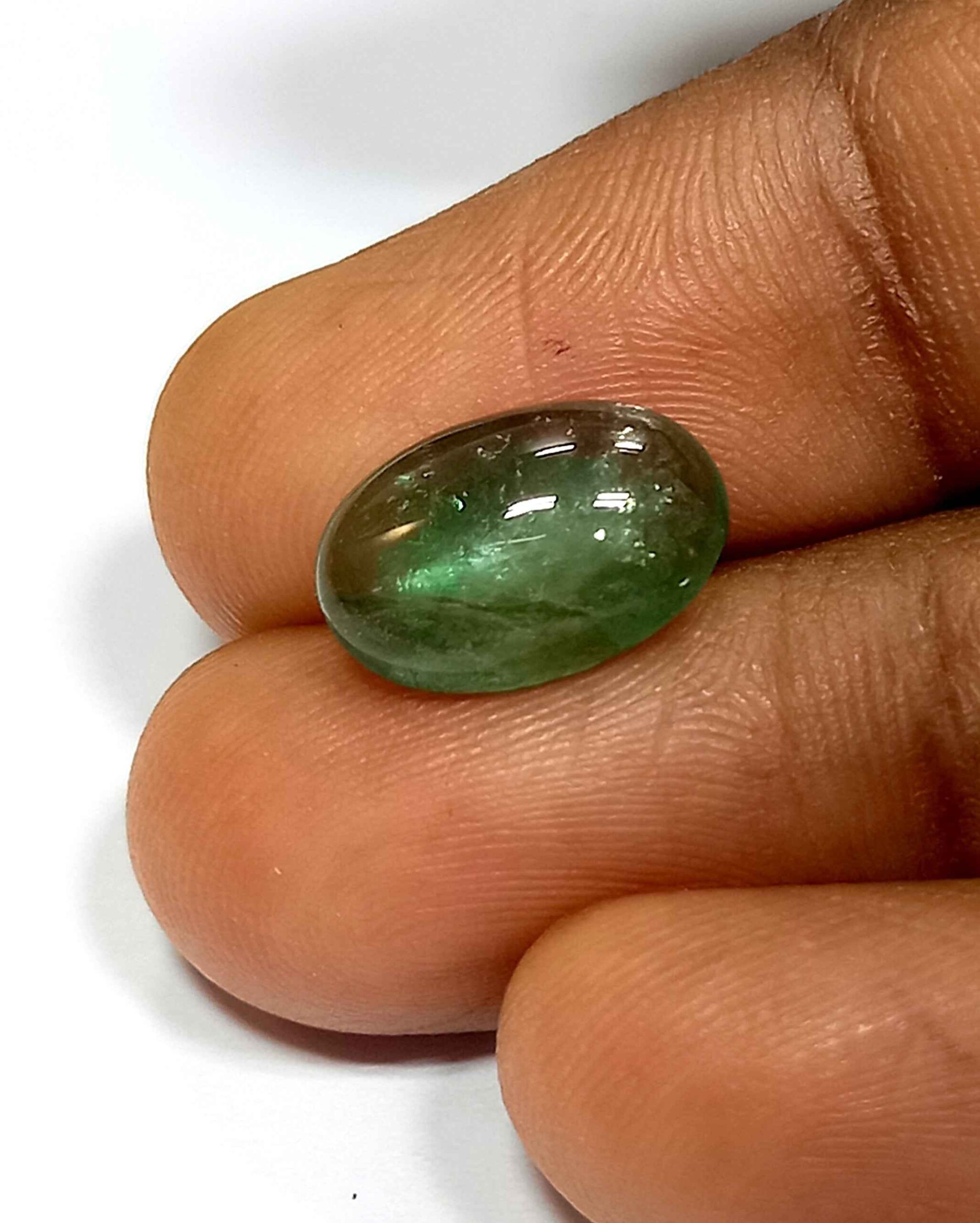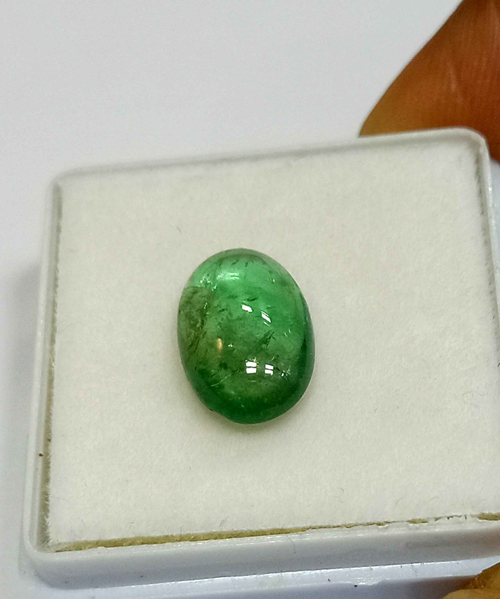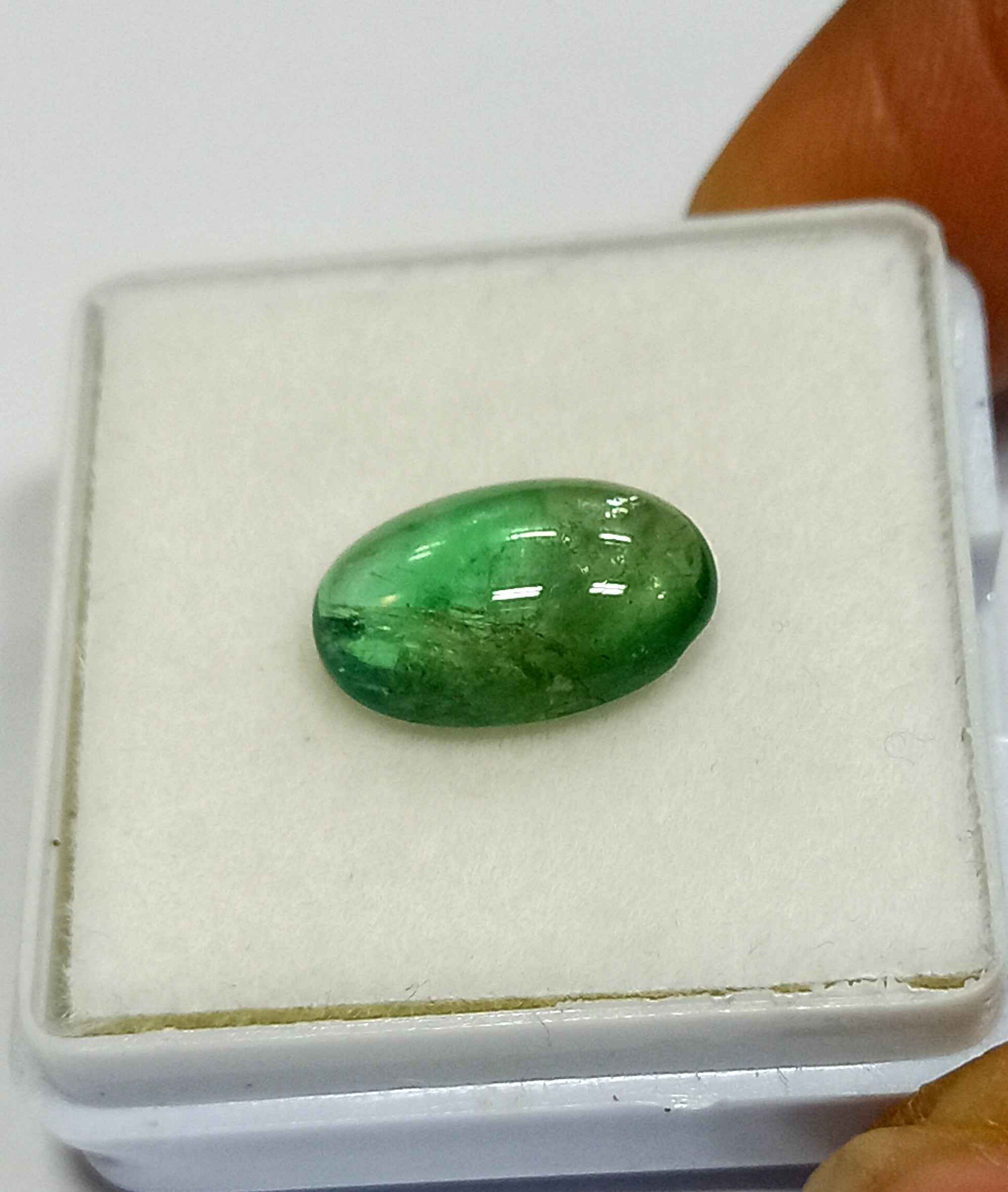 Zambian Emerald Gemstone Expertly crafted, this 2.82 carat oval cabochon natural Zambian emerald gemstone boasts a size of 12.6*7.91 MM.