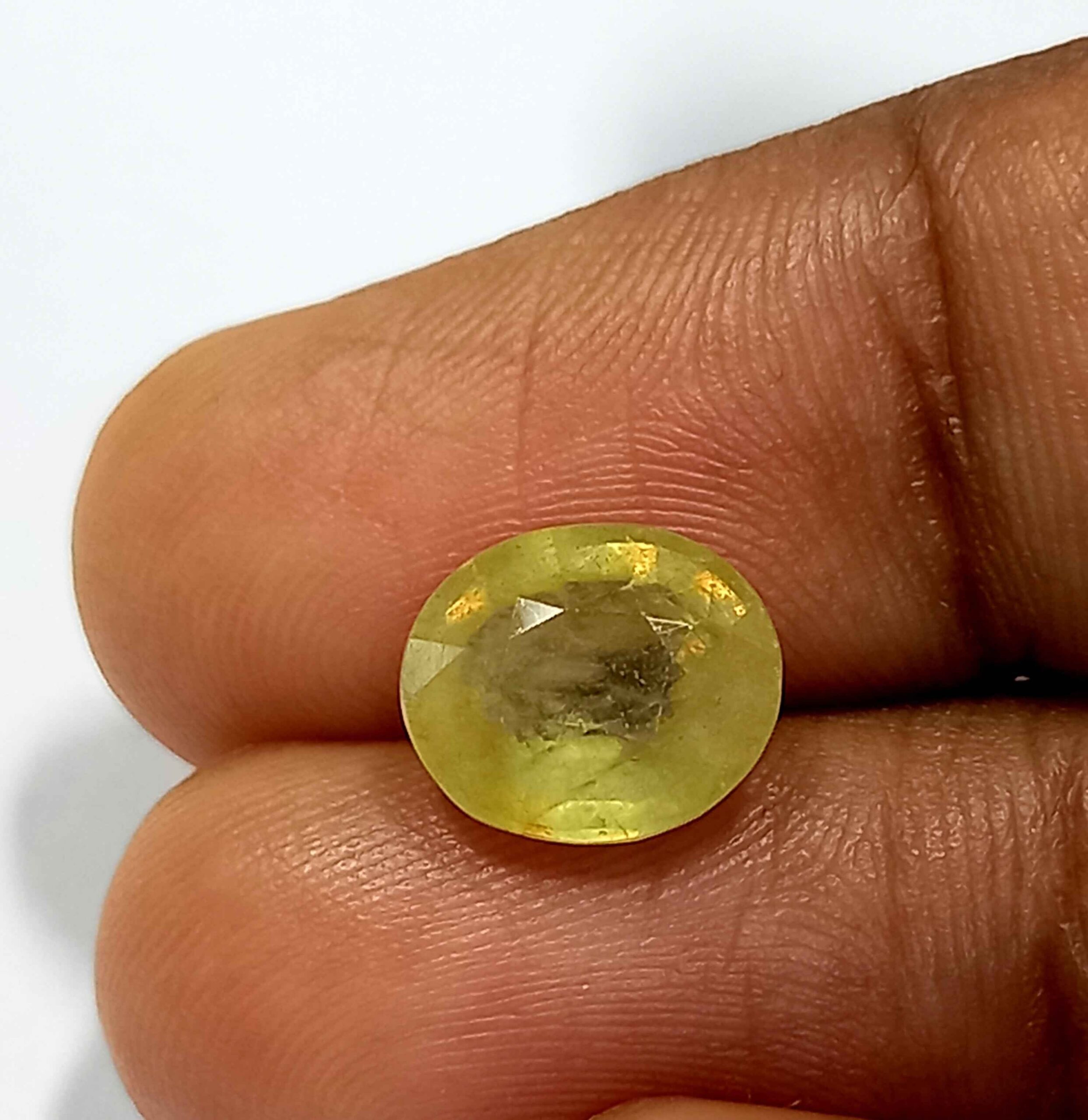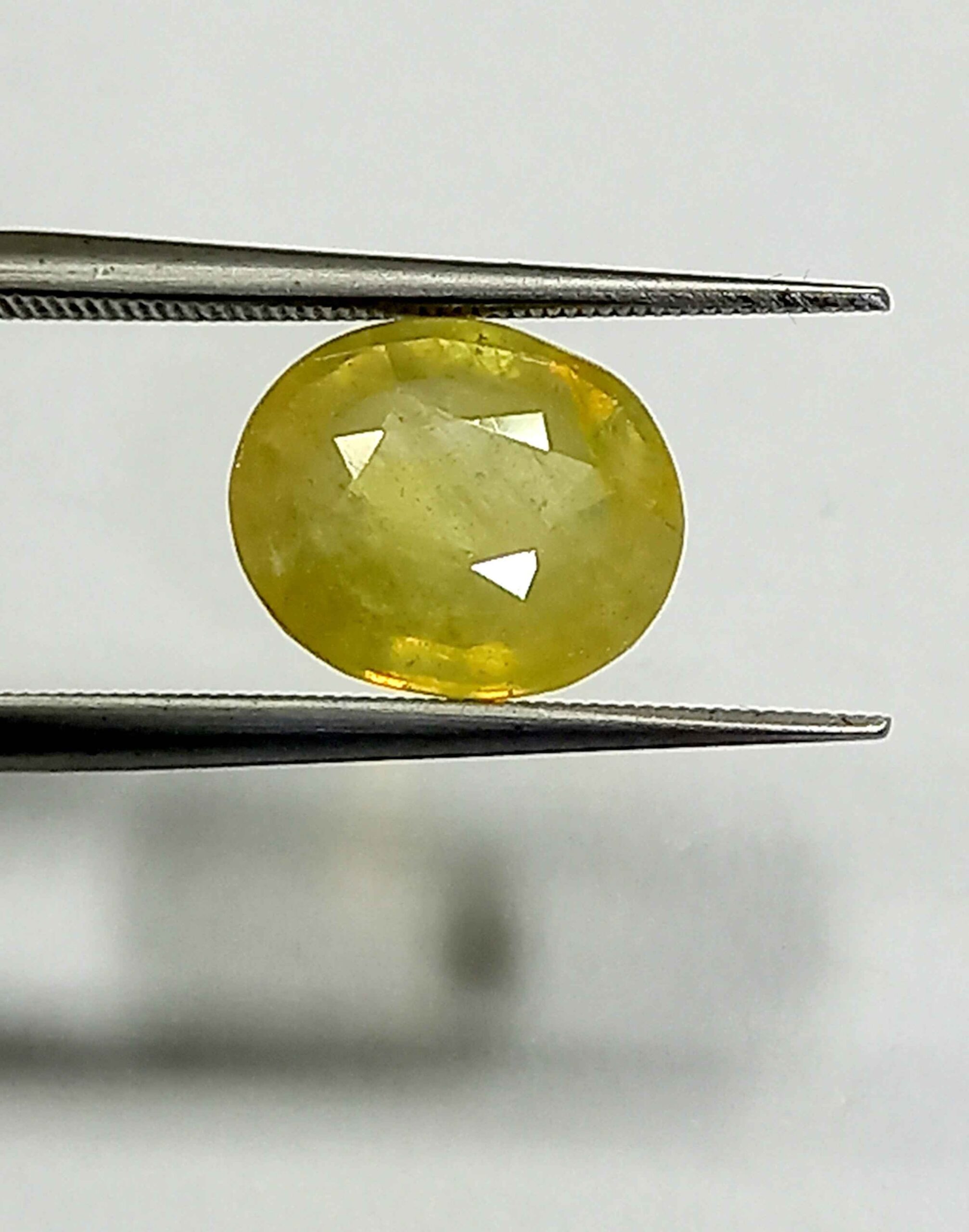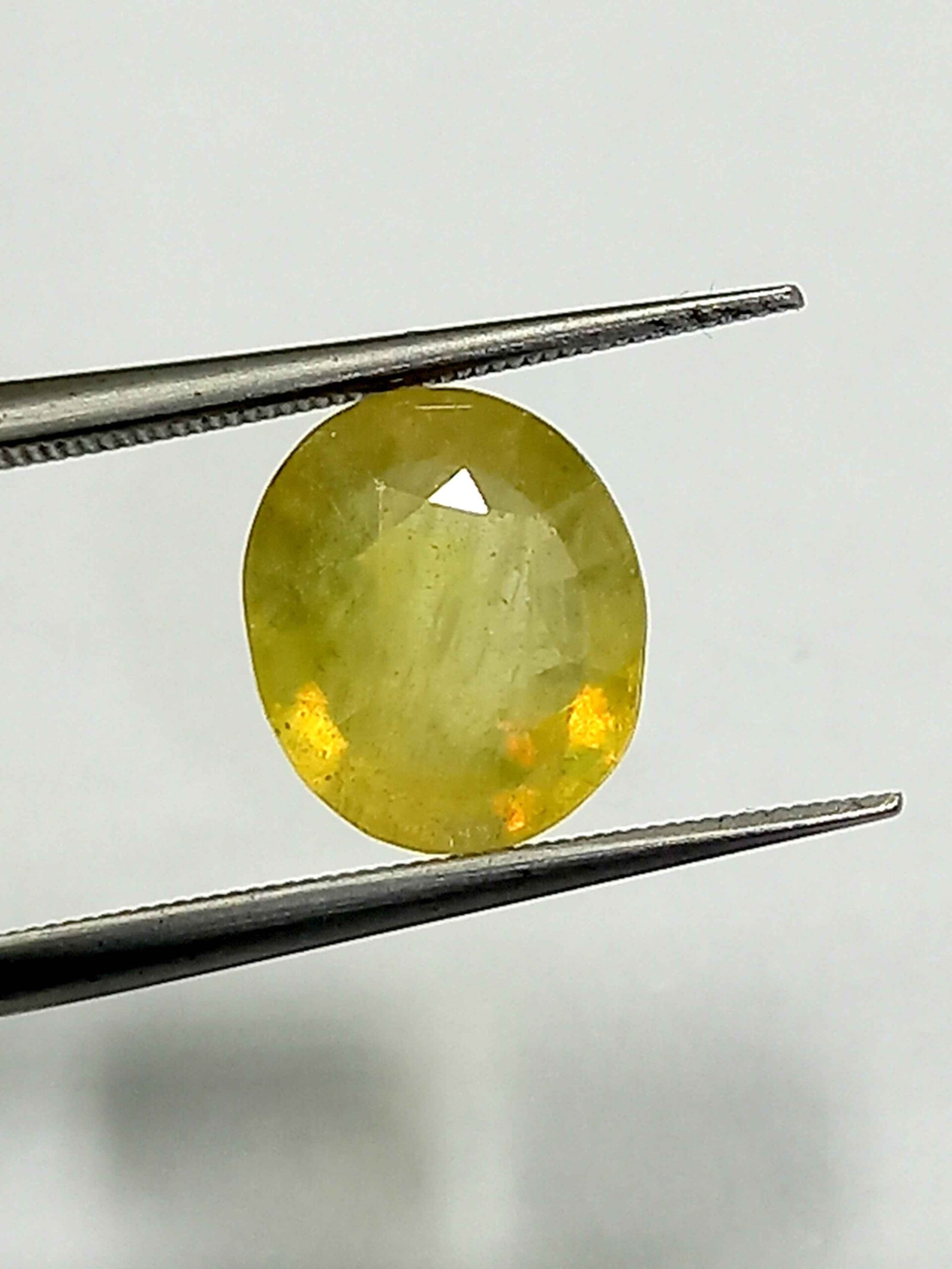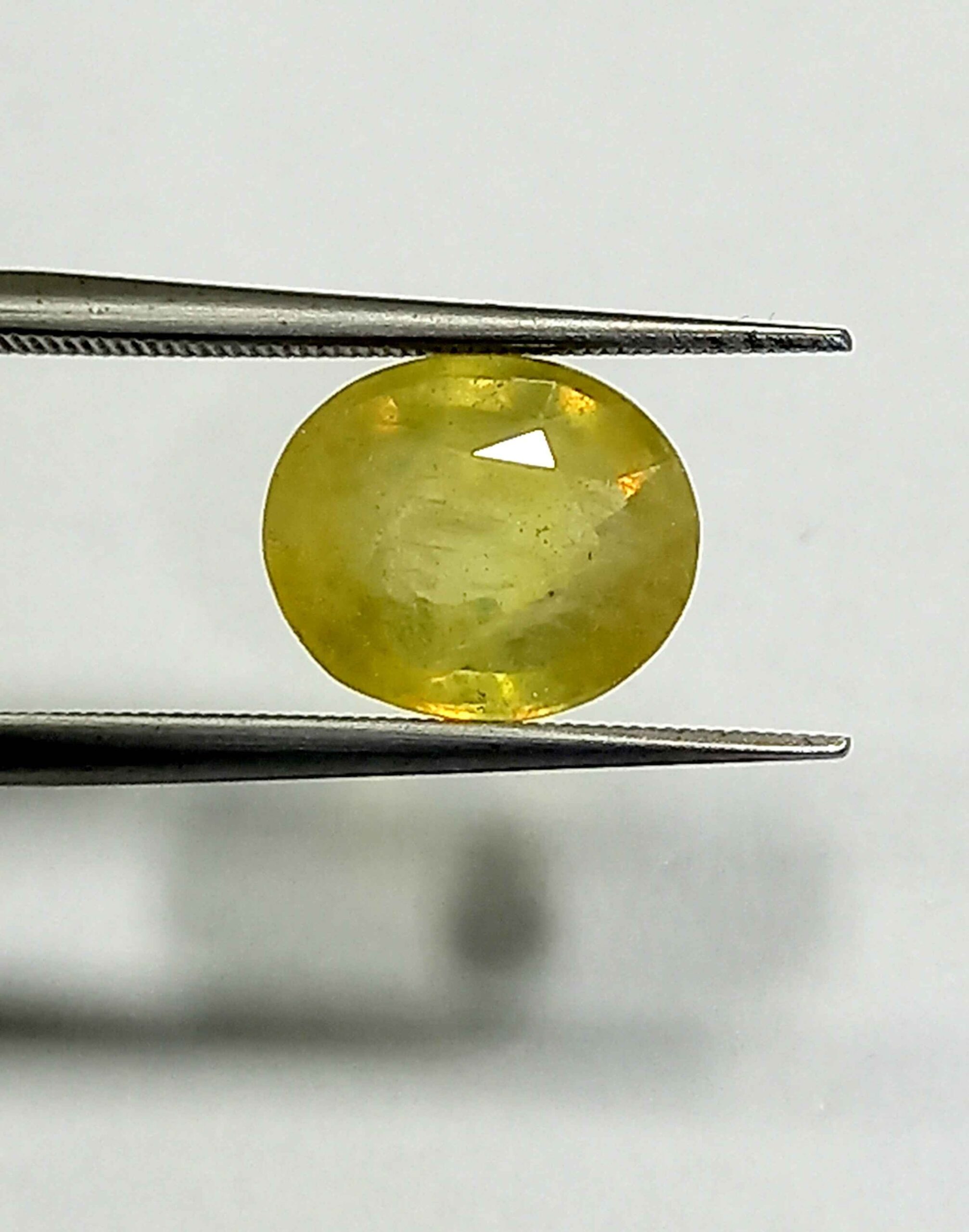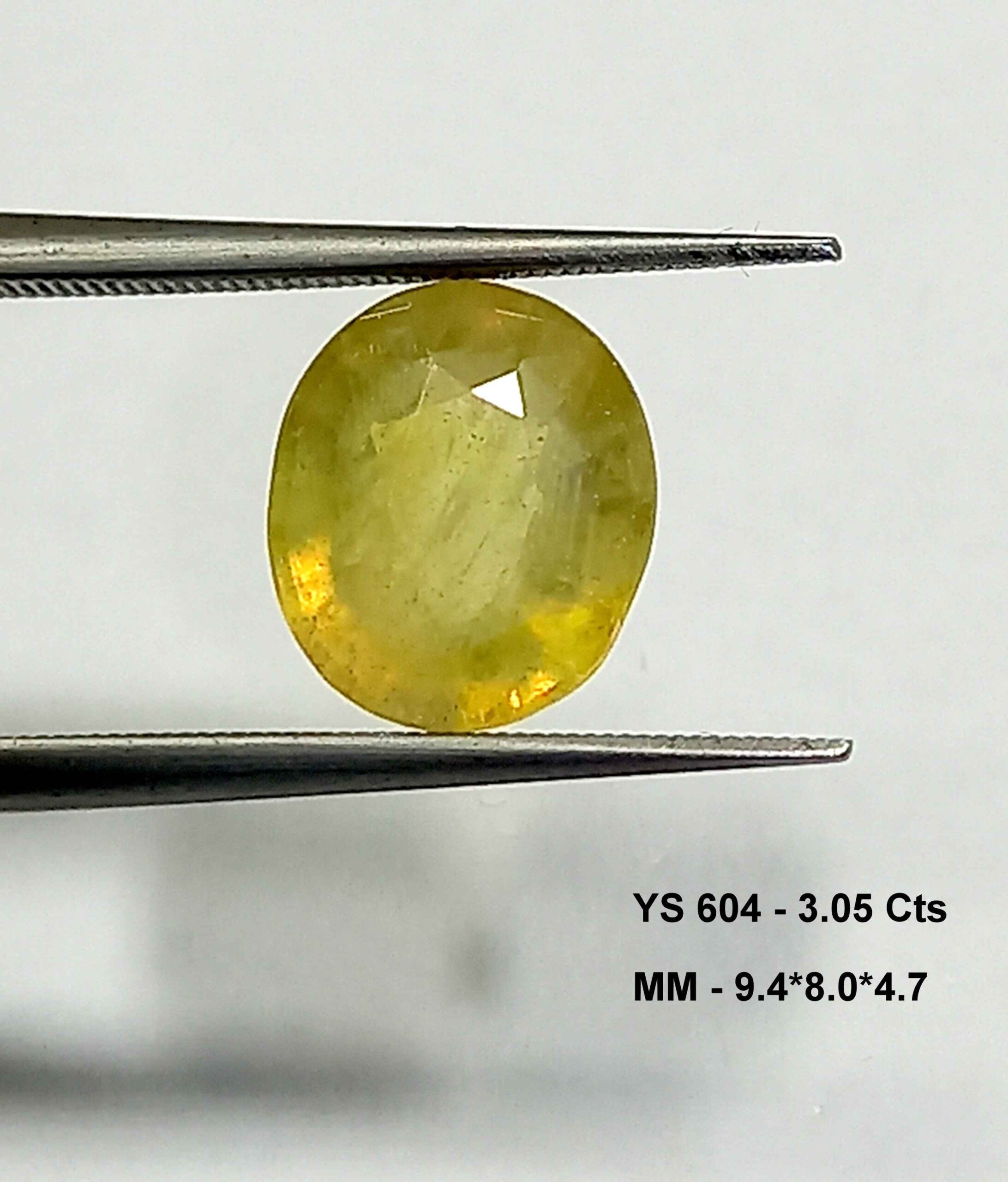 Natural Bangkok Yellow Sapphire Expertly cut and polished, this 3.05 carat Natural Bangkok Yellow Sapphire boasts a stunning oval shape, measuring 9.4 by 8 millimeters.