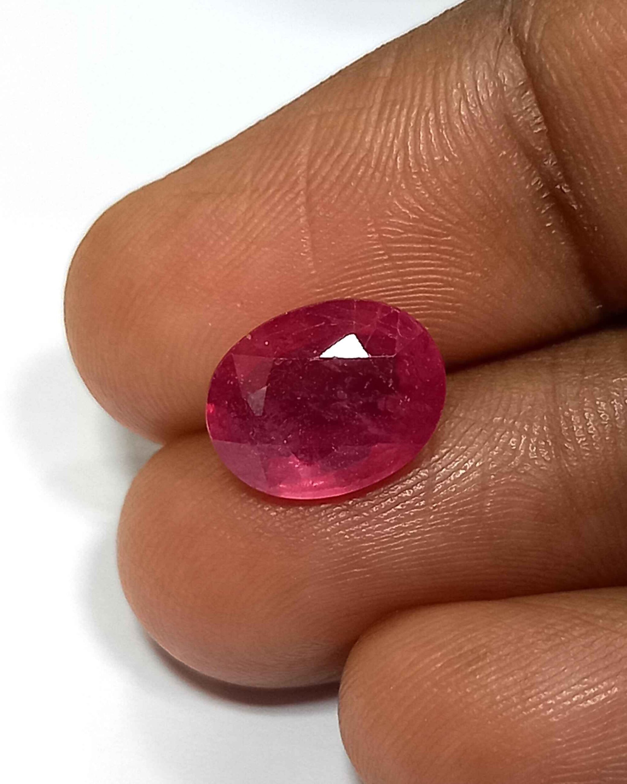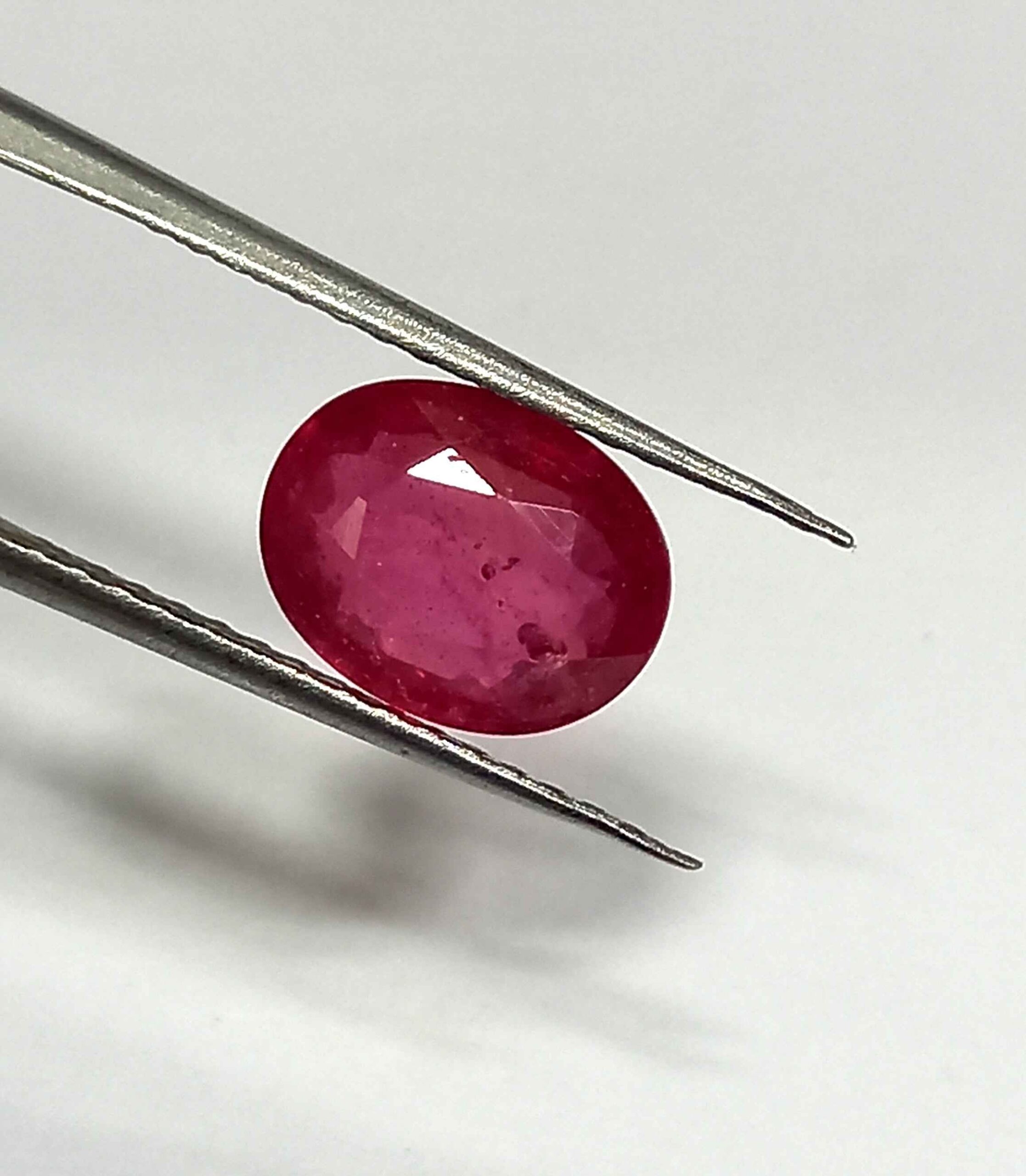 This 3.30 carat oval cut natural pink ruby gemstone originates from Thailand.