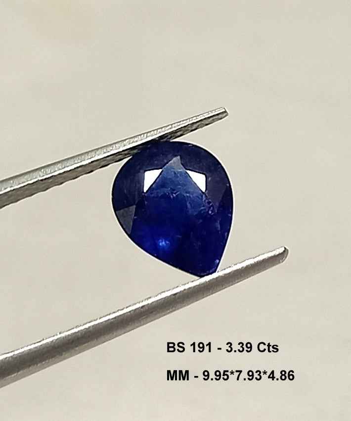 3.39 Cts Natural Pear Cut Blue Sapphire Gemstone 9.95*7.93 MM BS191