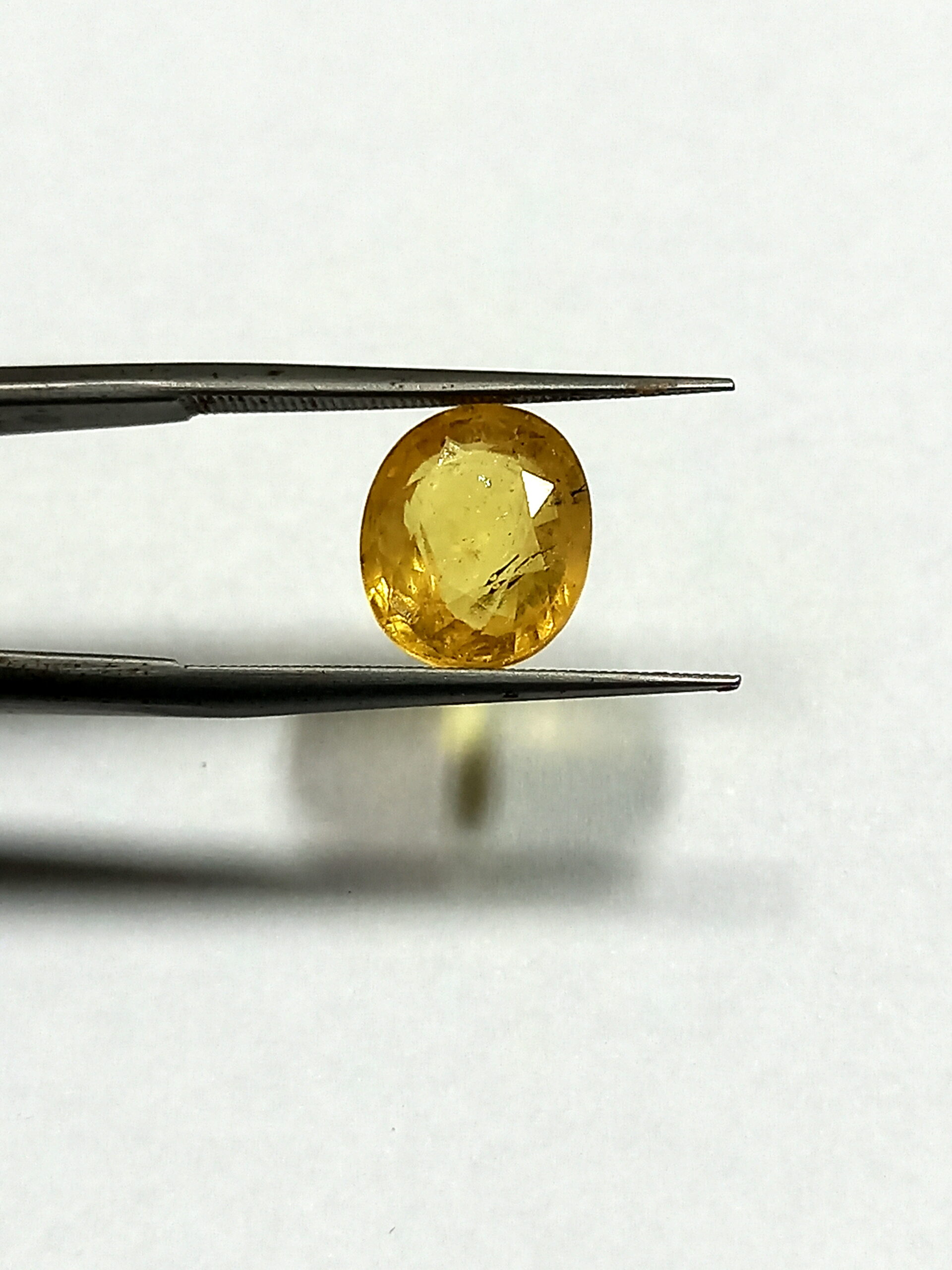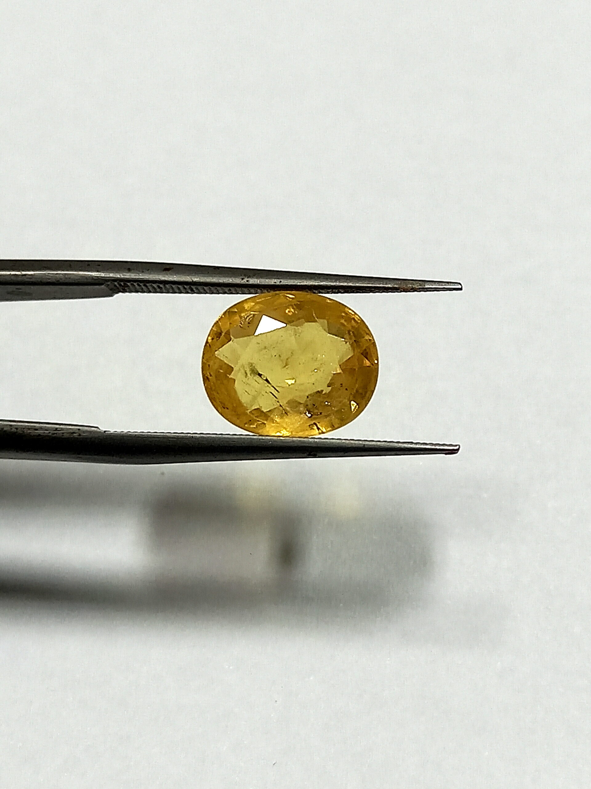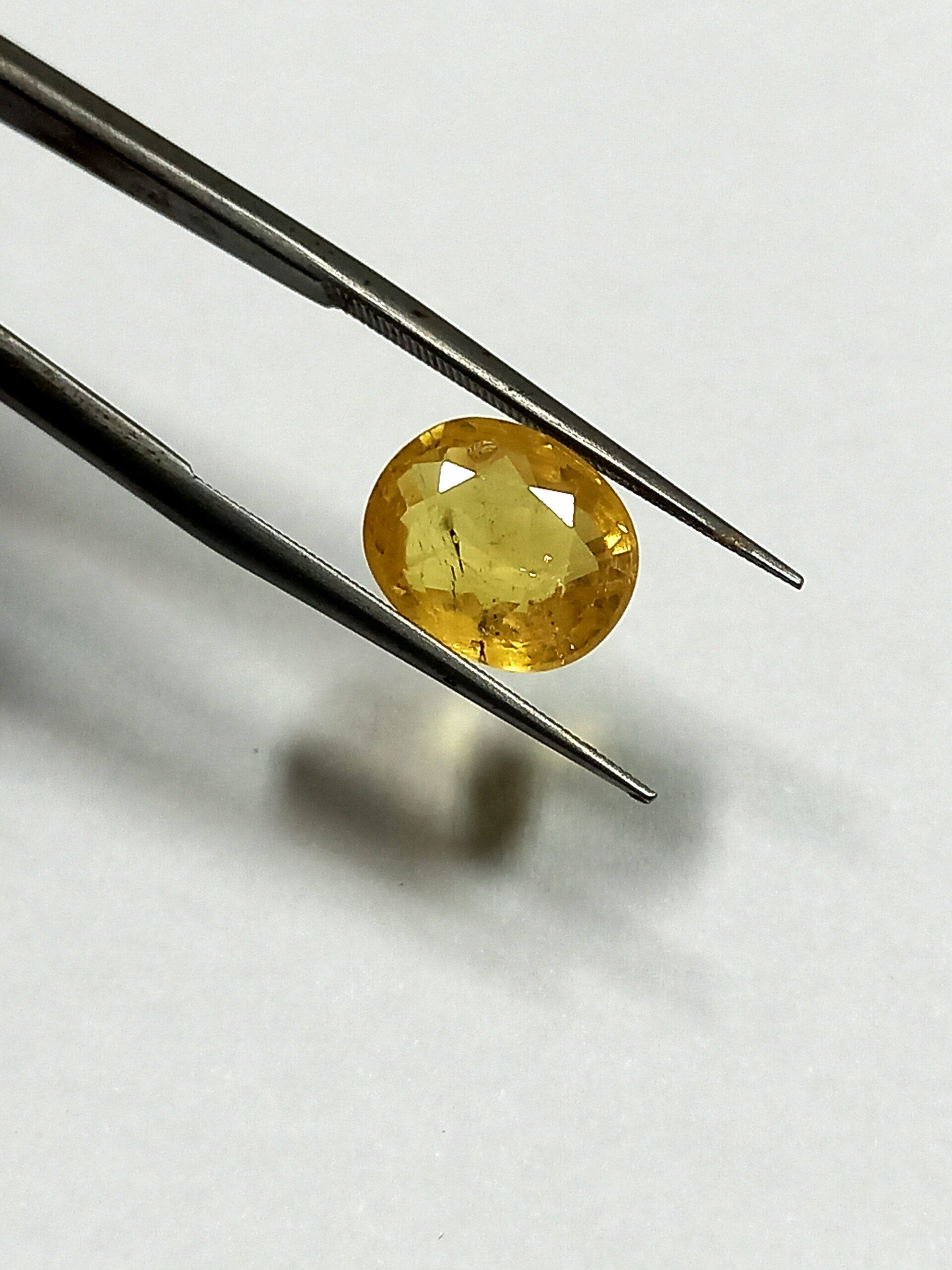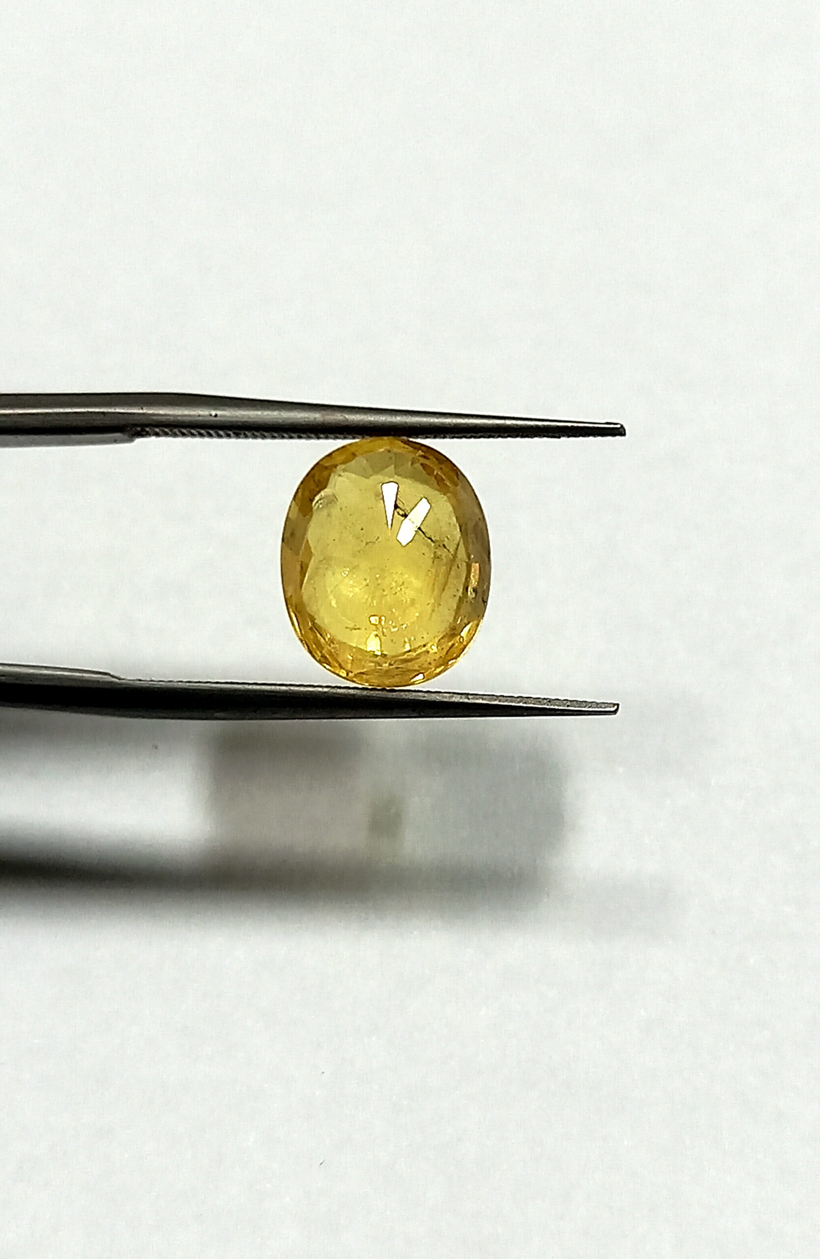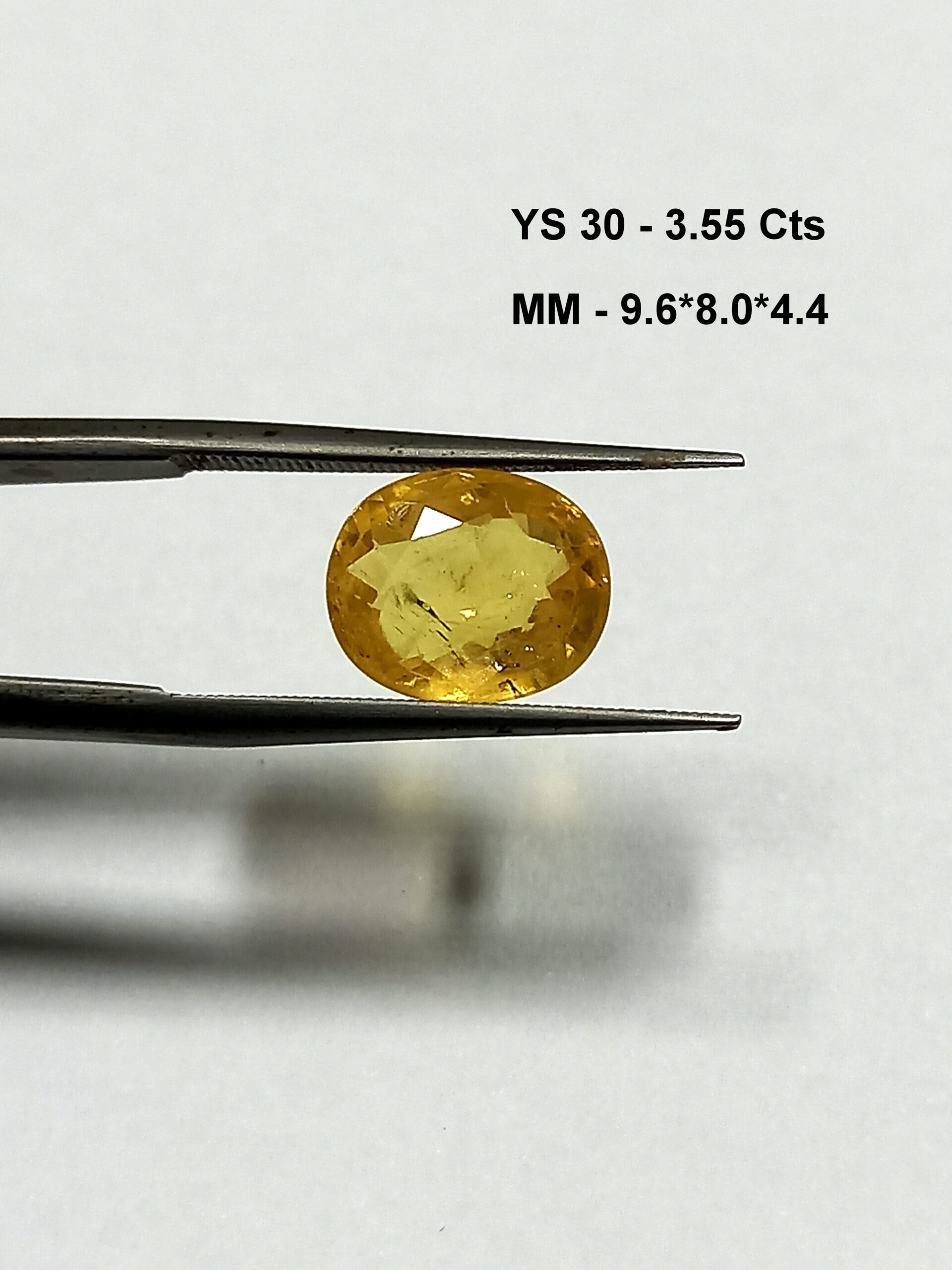 Natural Bangkok Yellow Sapphire This 3.55 carat Natural Bangkok Yellow Sapphire has an oval cut measuring 9.6 by 8 millimeters.