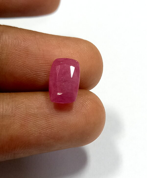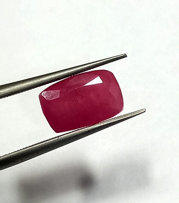Natural Sri Lanka Red Ruby With a weight of 3.55 carats and dimensions of 9.8 x 6.2 mm in an emerald cut, this ruby is a striking piece that stands out in any collection.