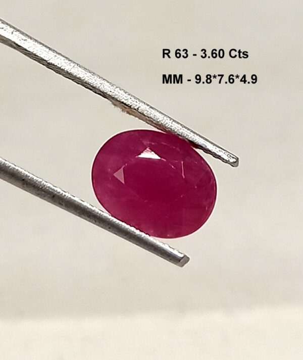 The vibrant red hue of this gem is both striking and deep, making it a perfect choice for jewelry enthusiasts and collectors alike. Measuring 9.8*7.6 mm and weighing 3.60 carats, this oval-cut ruby showcases a perfect blend of size and brilliance.