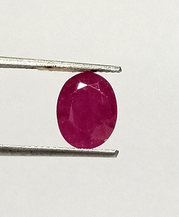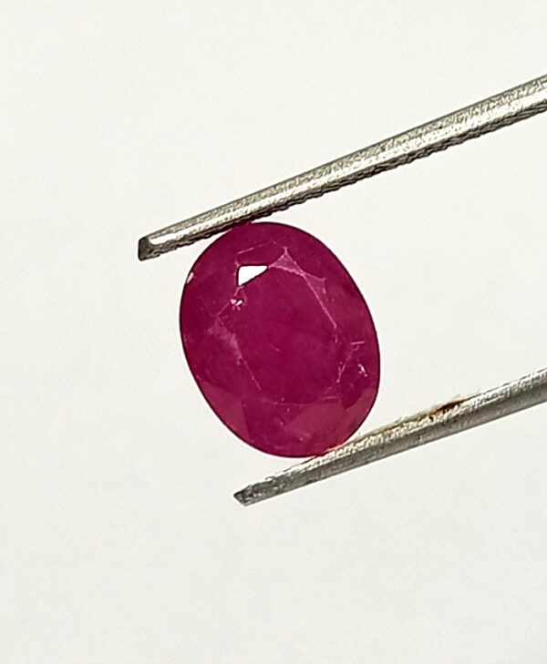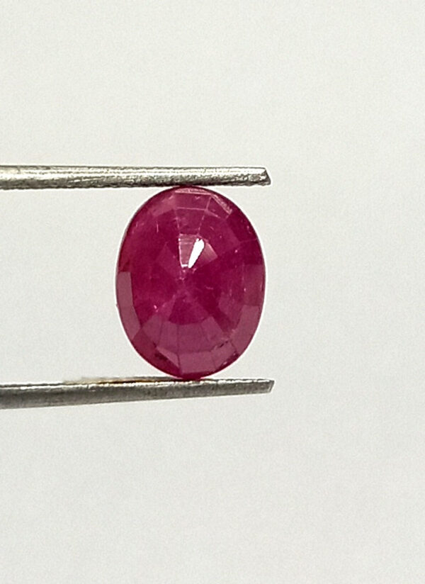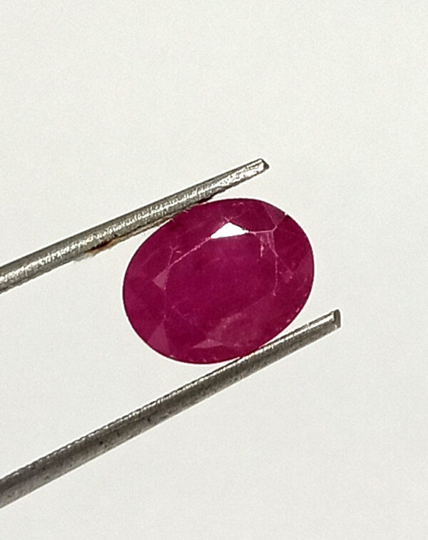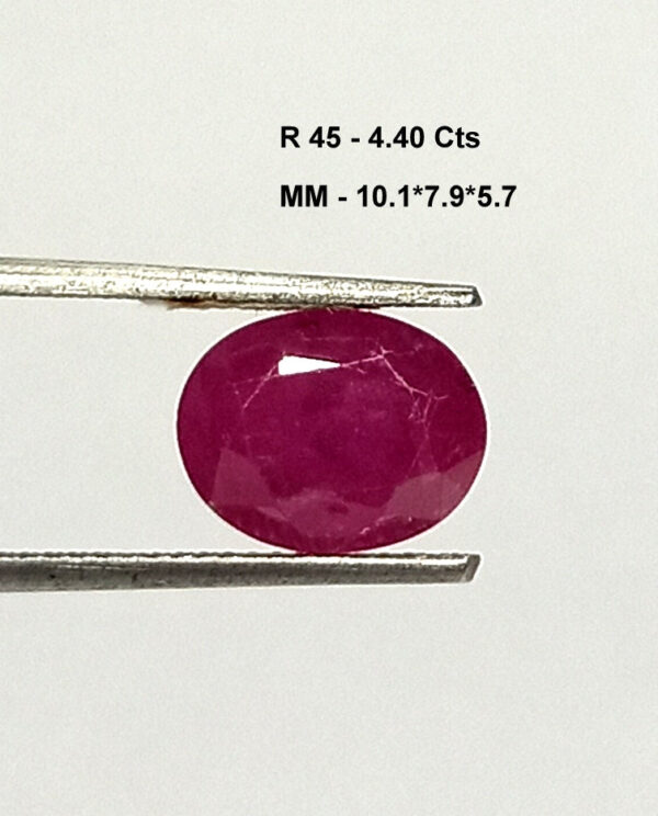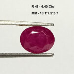 This particular specimen of Natural Mozambique Red Ruby weighs 4.40 carats and features an oval cut measuring 10.1 x 7.9 mm.