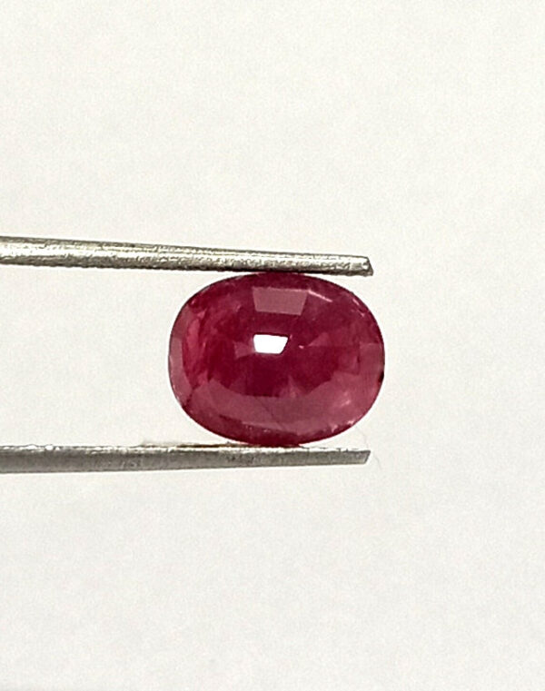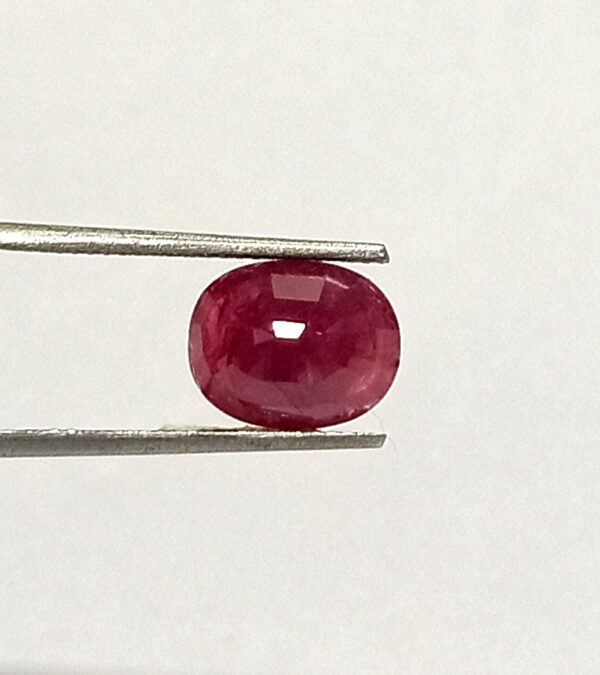 Weighing 4.40 carats and measuring 10.5 by 8.2 mm, this oval-cut ruby is a true marvel of nature, shaped into a stunning piece that reflects light and beauty.