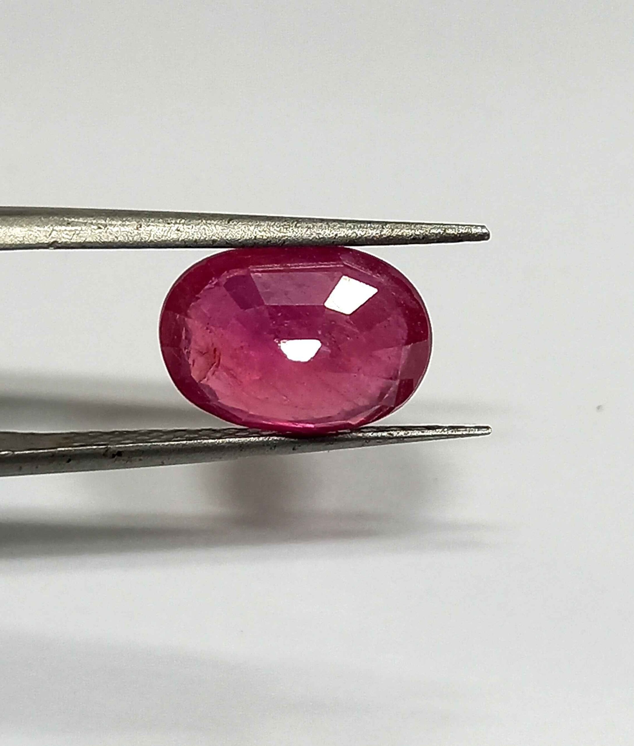 The precise oval cut (11.4×7.9 mm) maximizes the stone’s vibrant pink hue while enhancing light reflection.