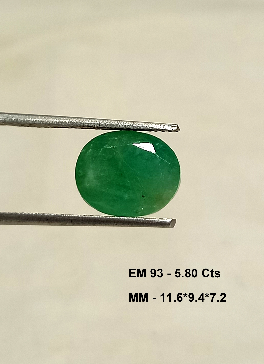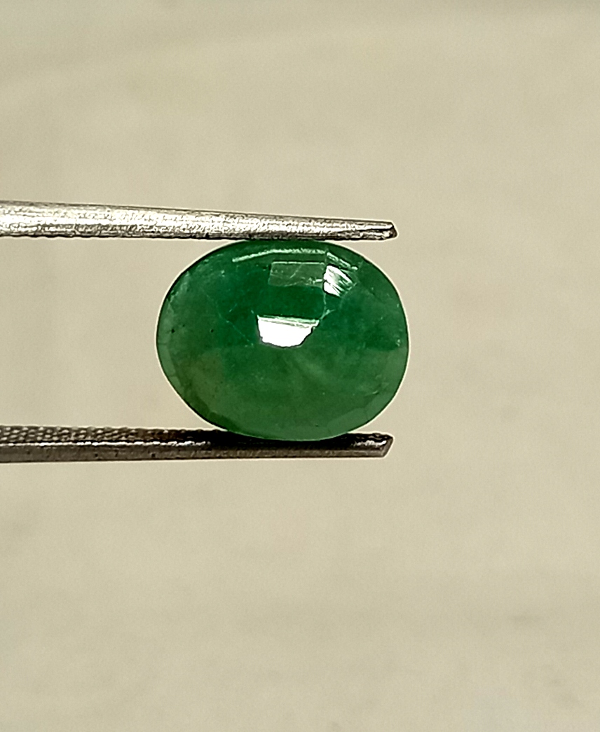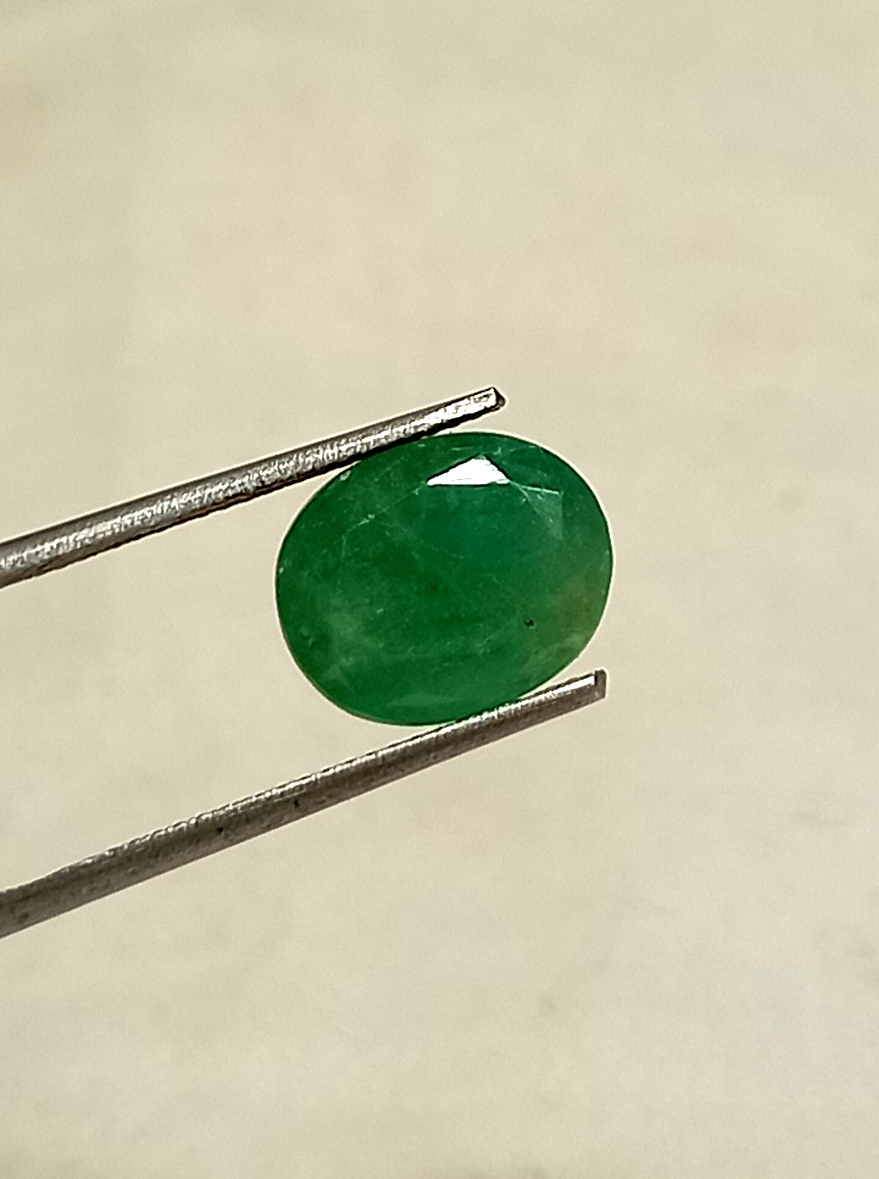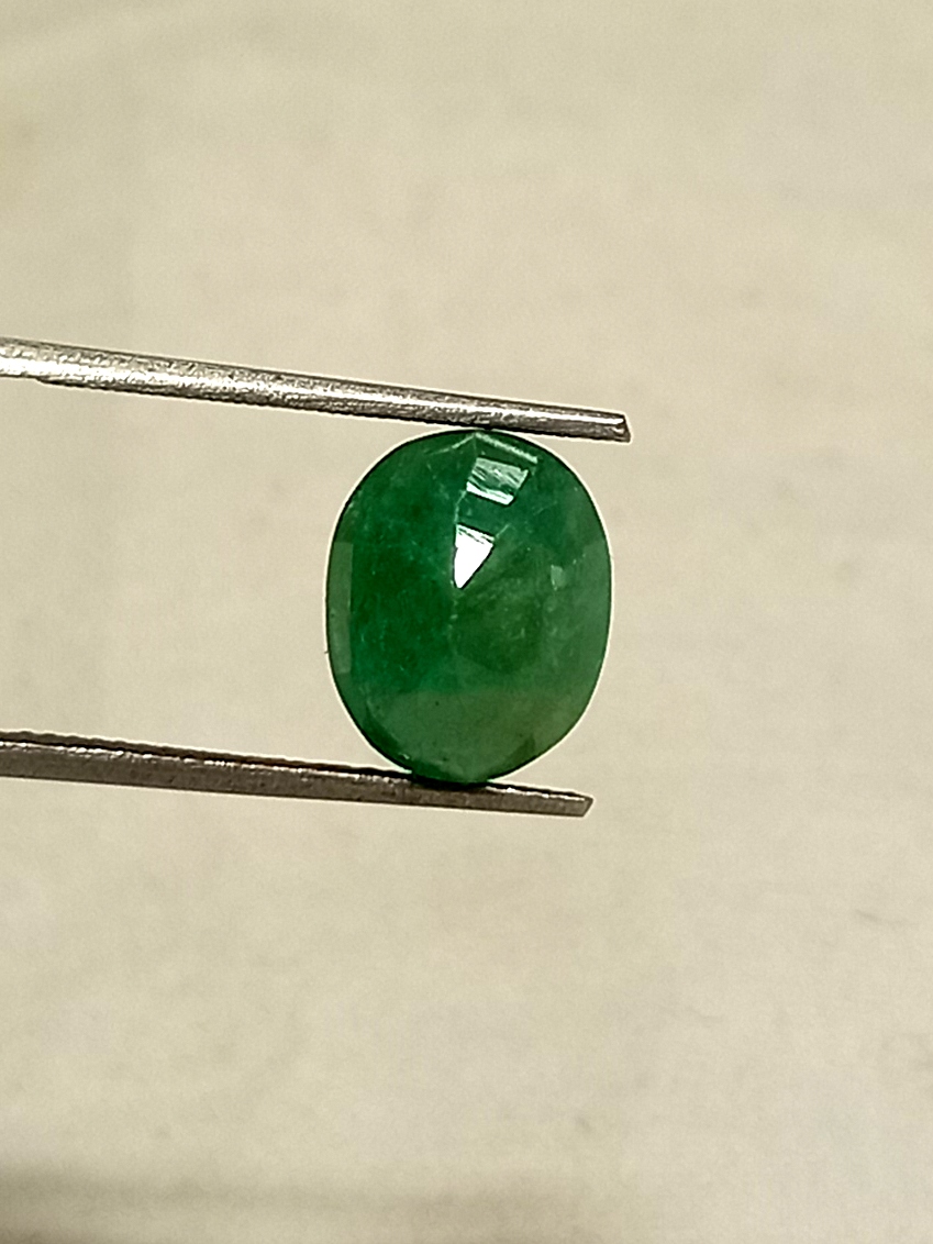 Natural Zambian Emerald This 5.80 carat oval cut natural Zambian emerald gemstone measures 11.6*9.4 millimeters.