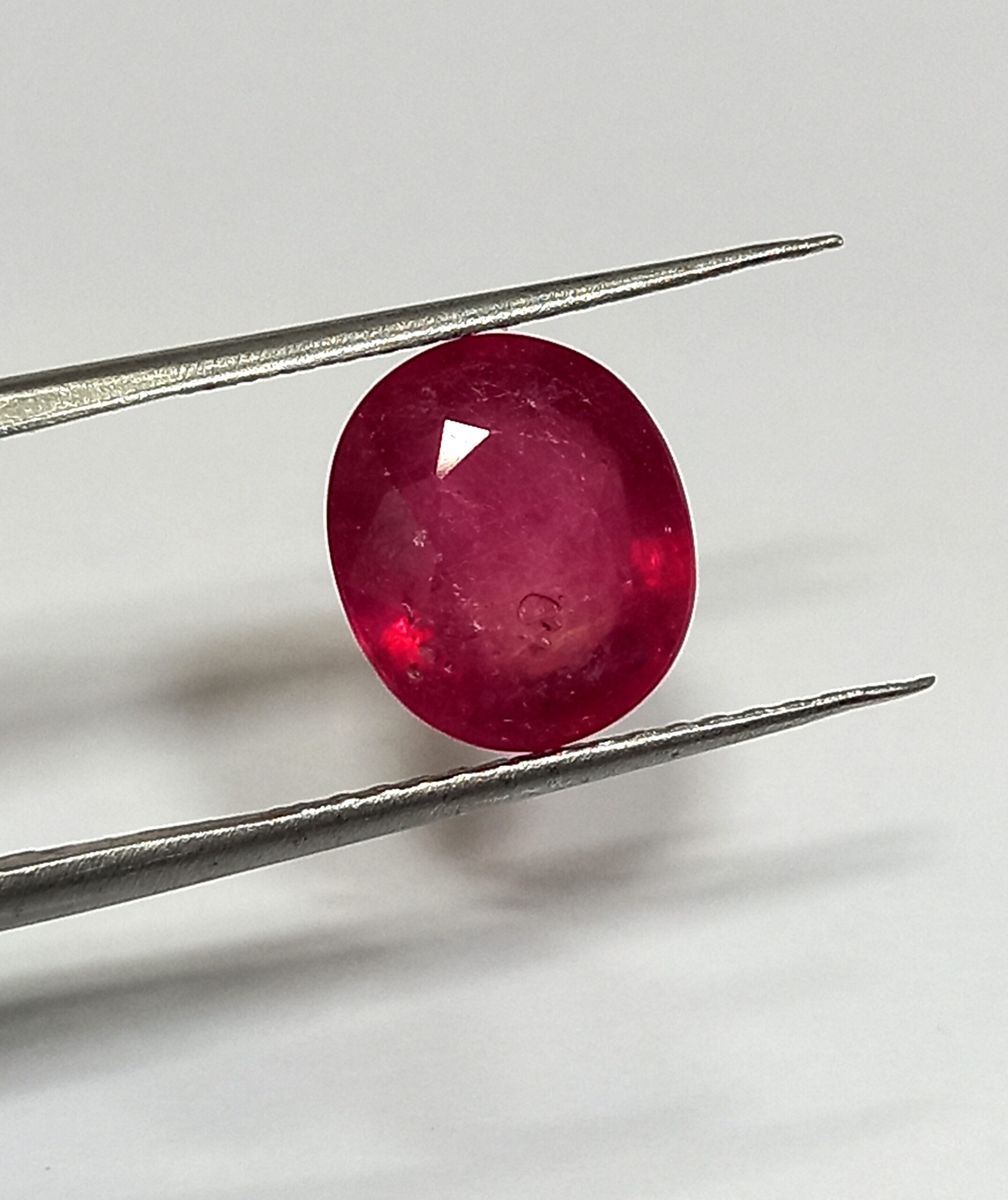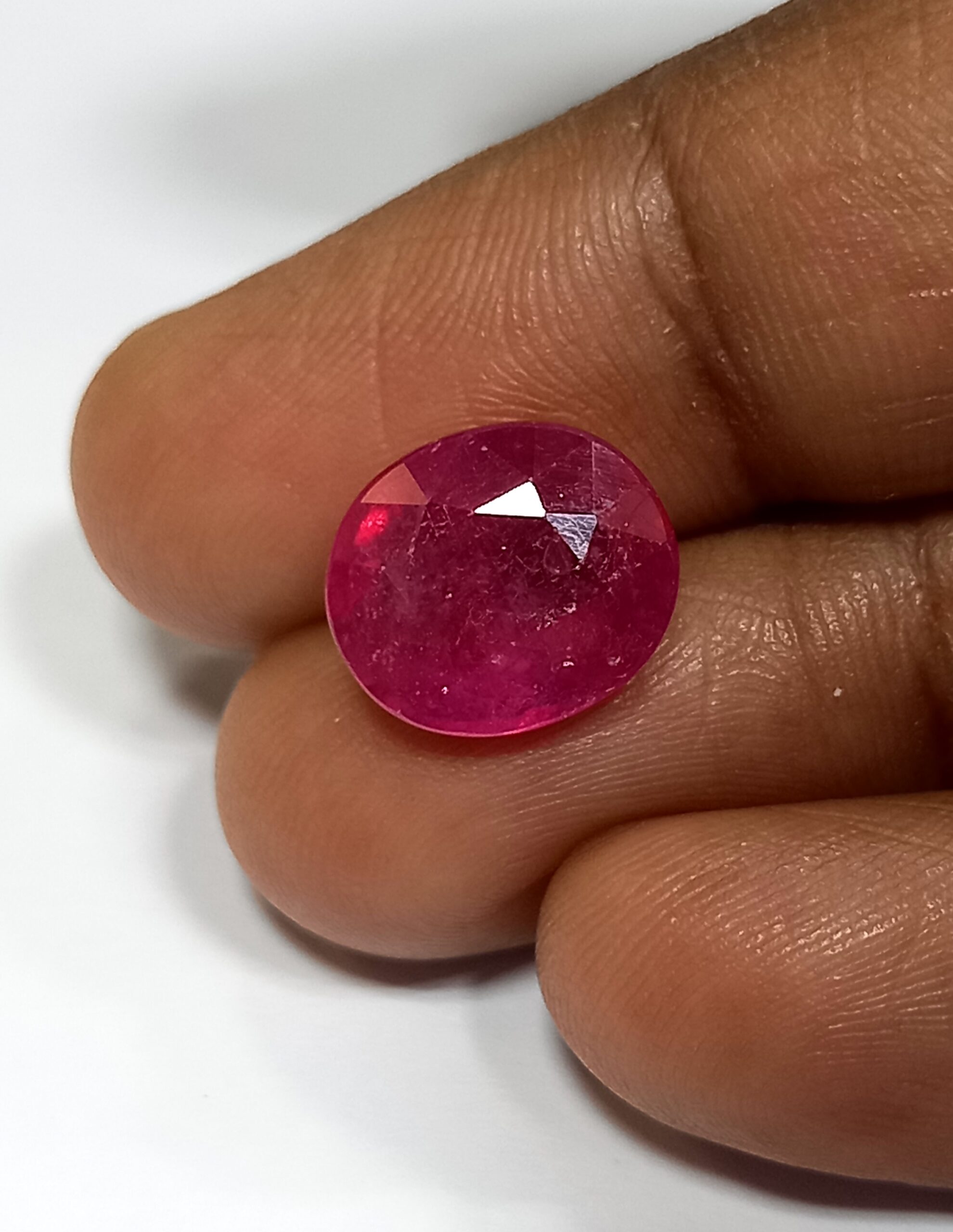 Expertly cut from a 6.10 carat natural pink ruby gemstone, this oval gemstone boasts a vivid hue that is sure to make a statement.