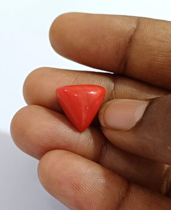 Expertly crafted from 7.05 Cts of Natural Italian Coral Gemstone, this Triangle Cabochon measures 12.4*12.3 MM and features a stunning red color.