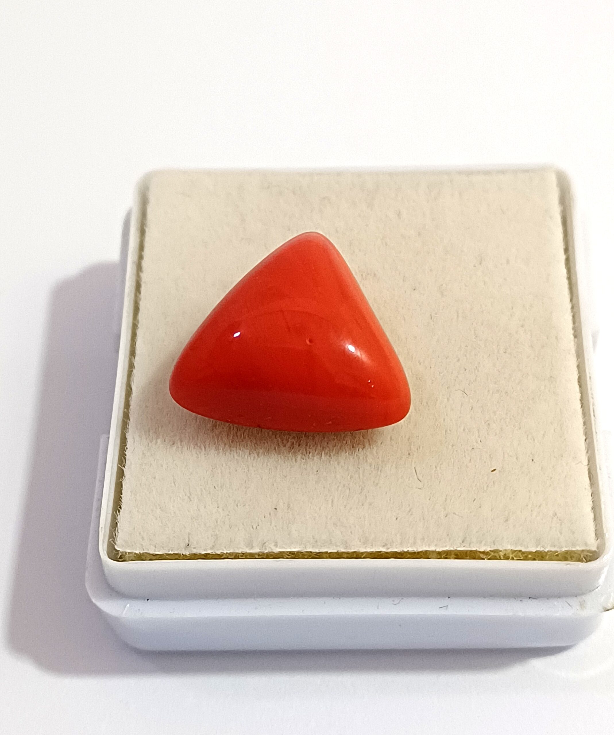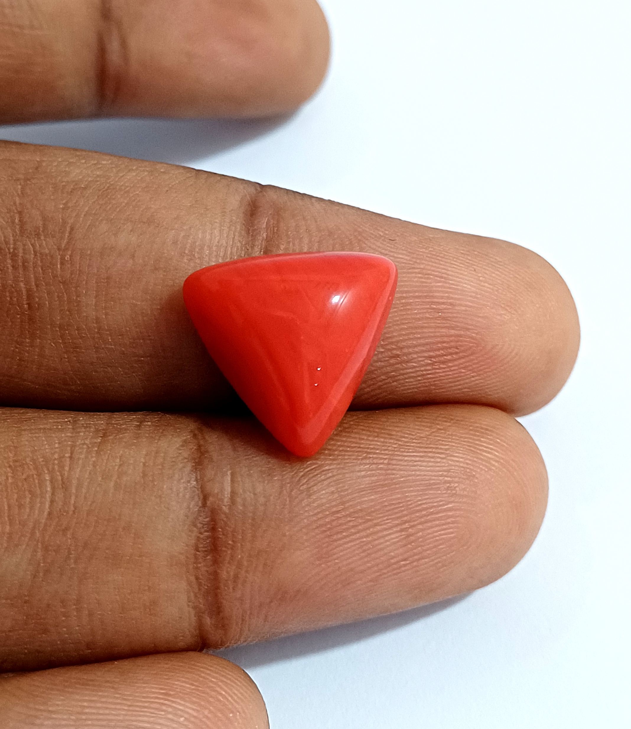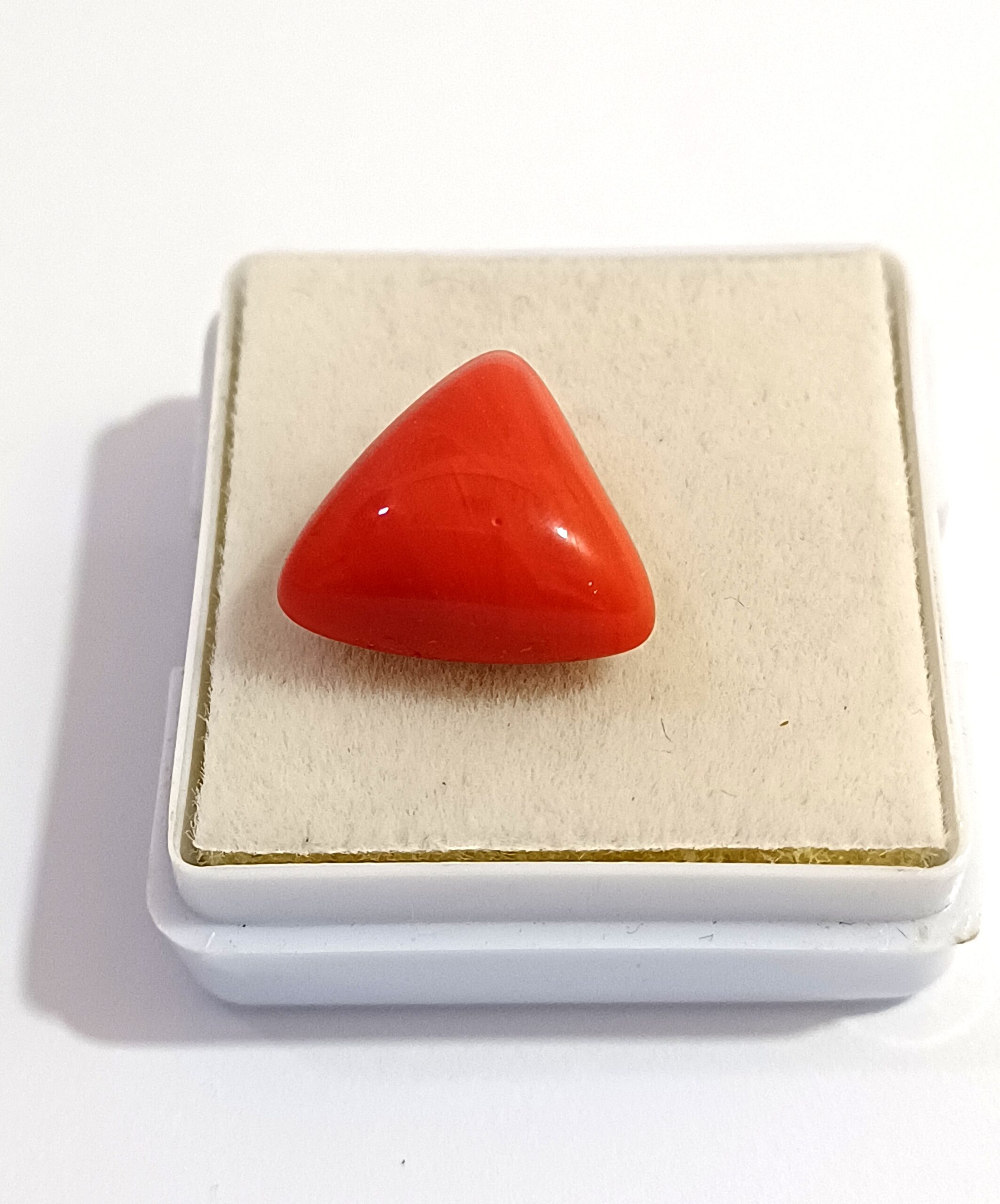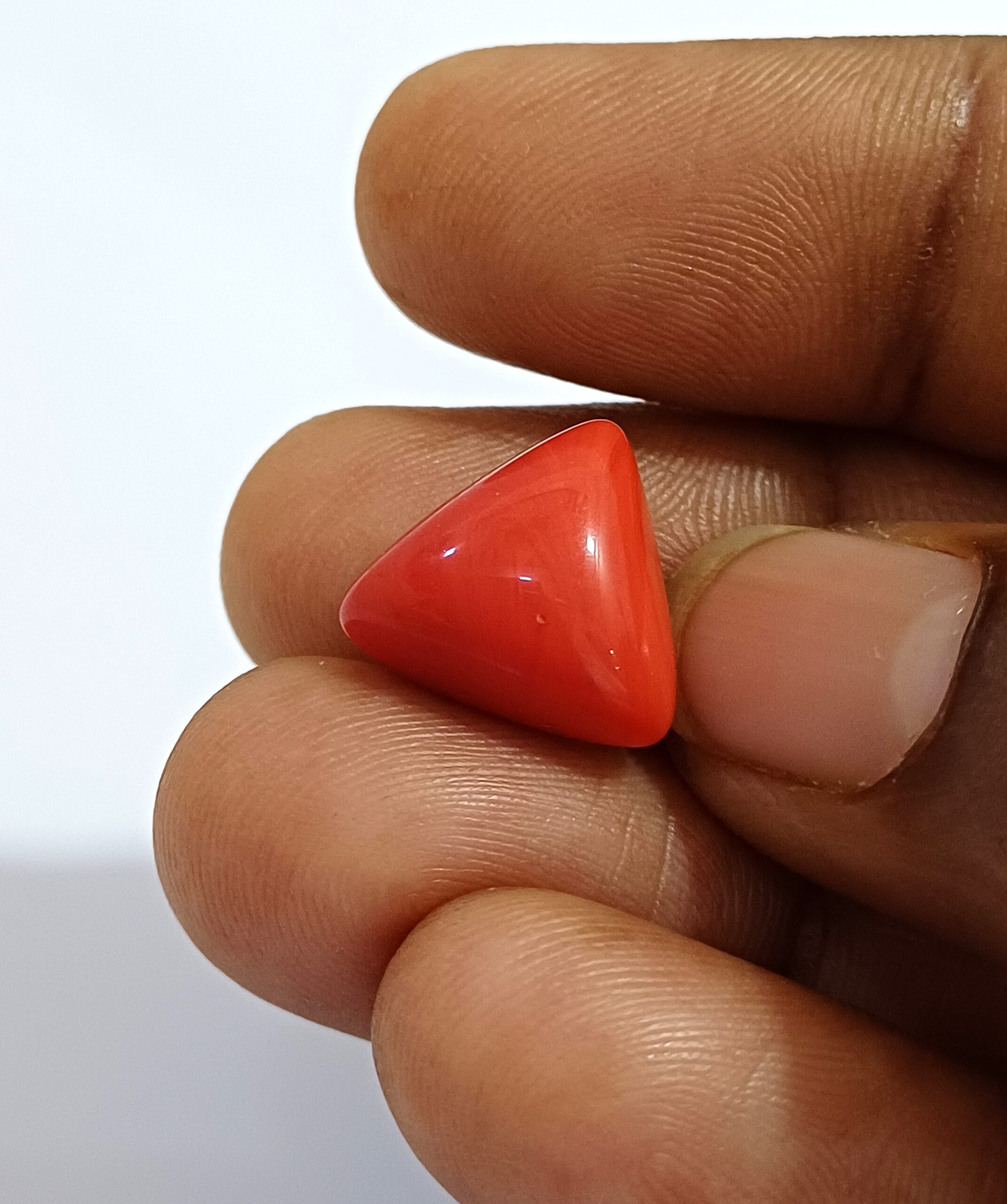 This natural Italian Coral gemstone boasts 7.34 carats and is cut into a unique triangle shape measuring 12.5*12.4MM.