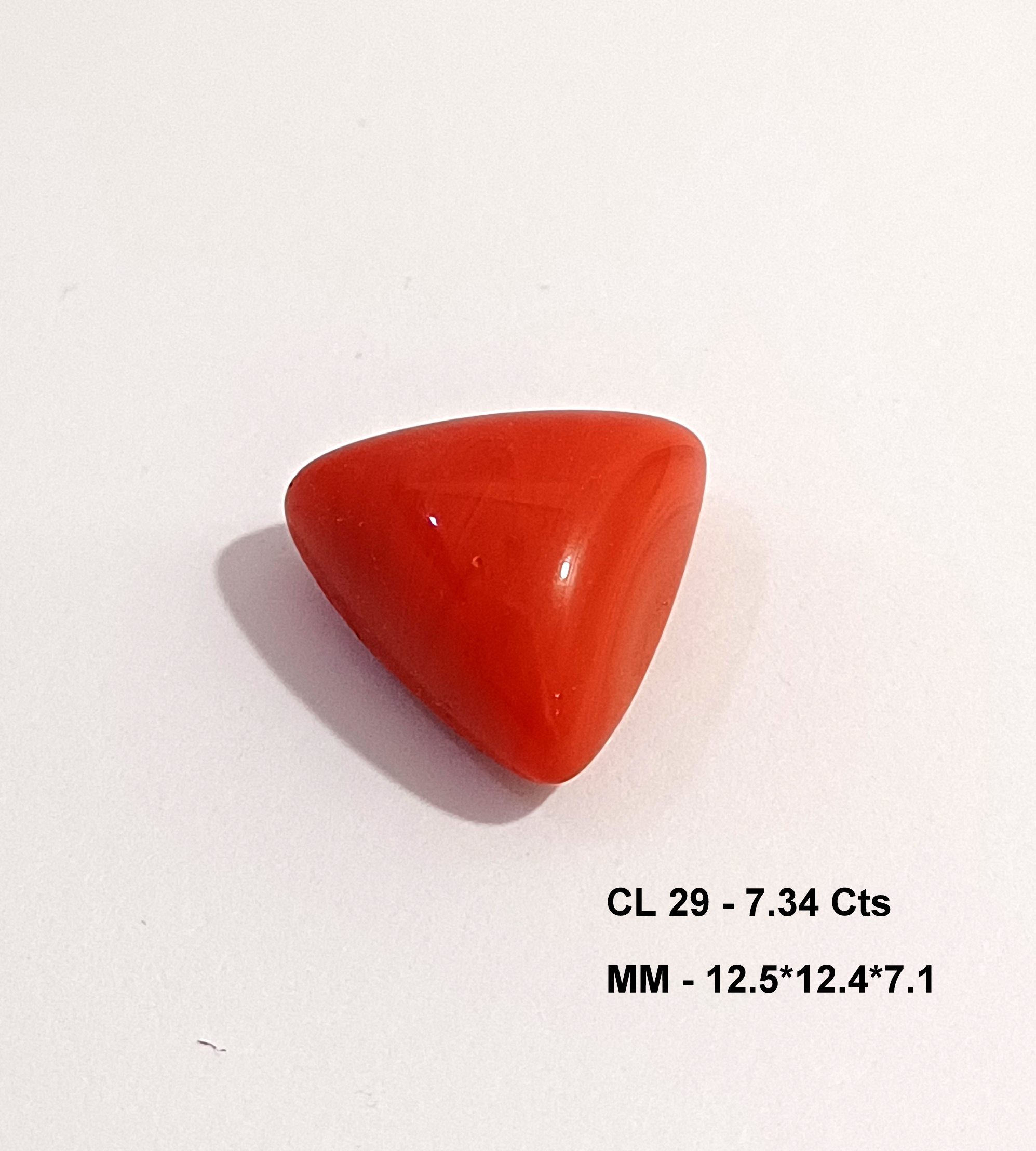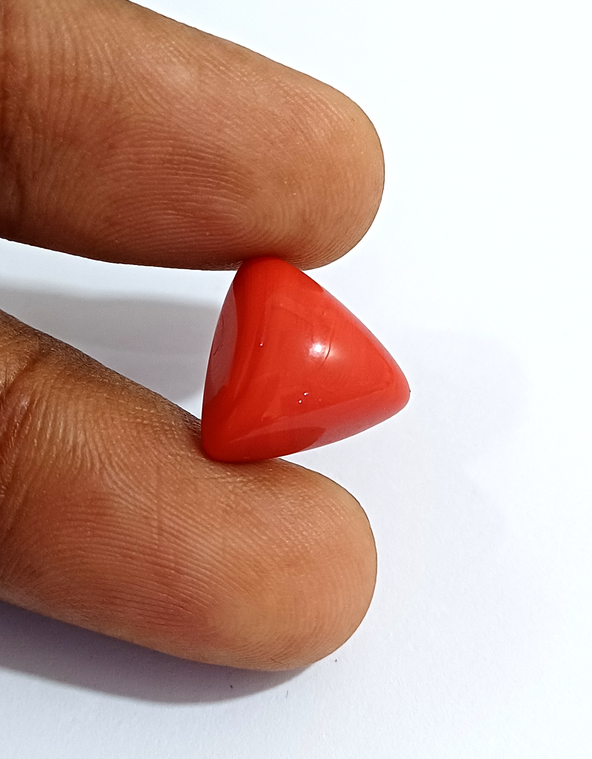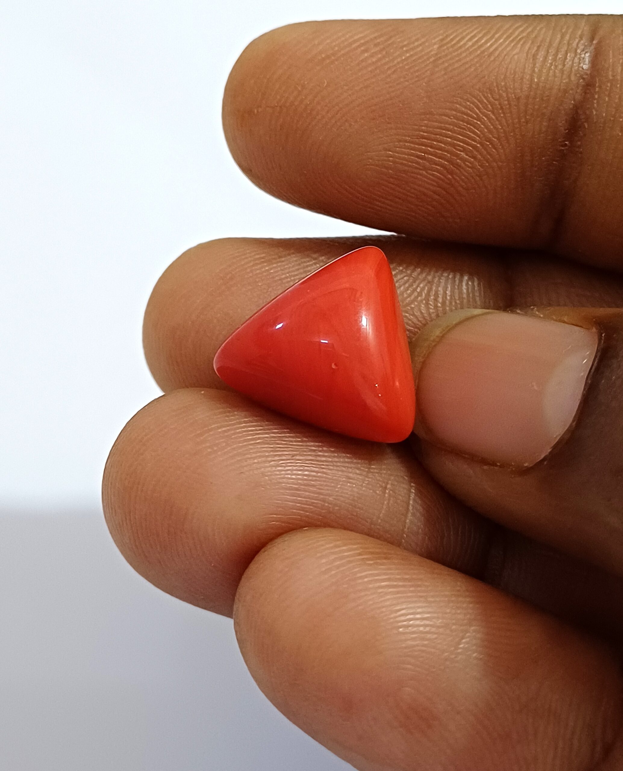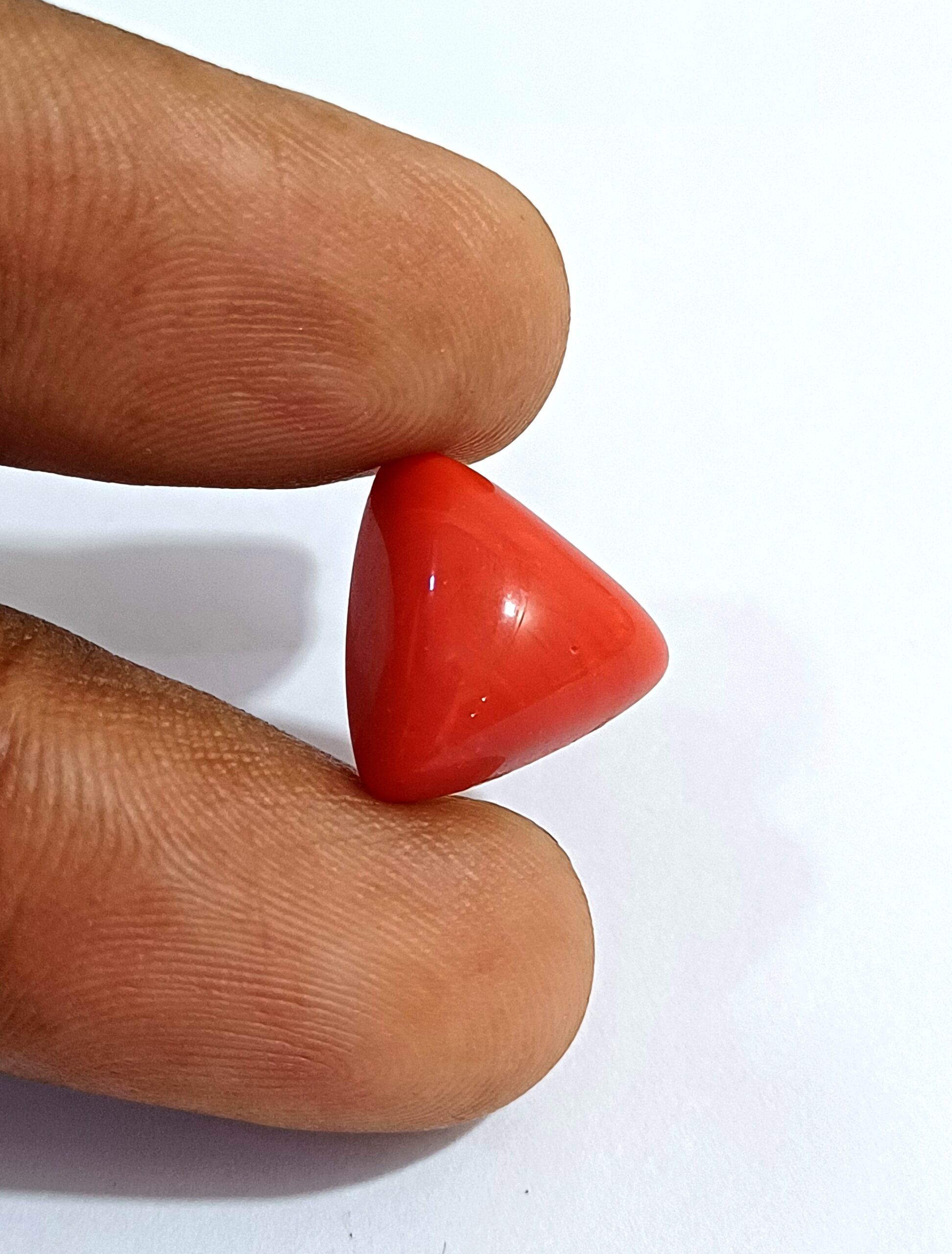This natural Italian Coral gemstone boasts 7.34 carats and is cut into a unique triangle shape measuring 12.5*12.4MM.