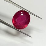 As an expert in the gemstone industry, I can confidently assert that this 7.40 carat natural pink ruby Gemstone has a stunning oval cut, measuring 11.2 by 9.8 millimeters, originating from Thailand.