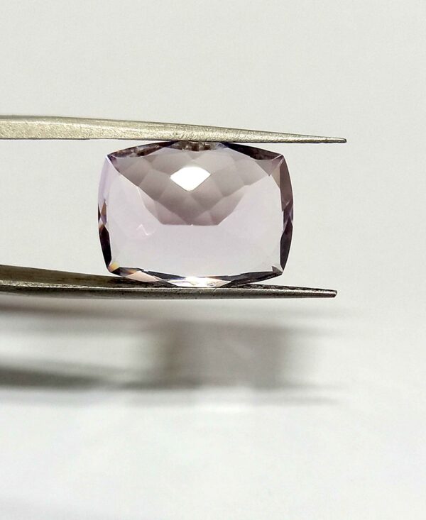Brazil Rose De France Amethyst This 9.60 carat natural Brazil Rose De France Amethyst gemstone boasts a stunning pink hue and is expertly cut into a classic octagon shape measuring 16*12 mm.