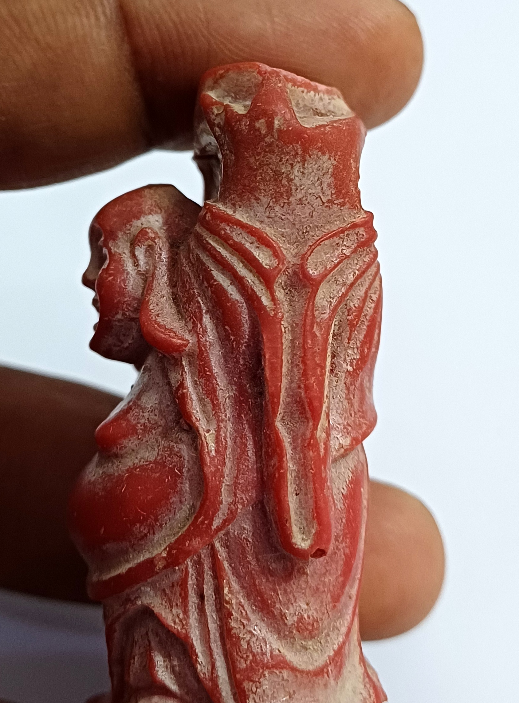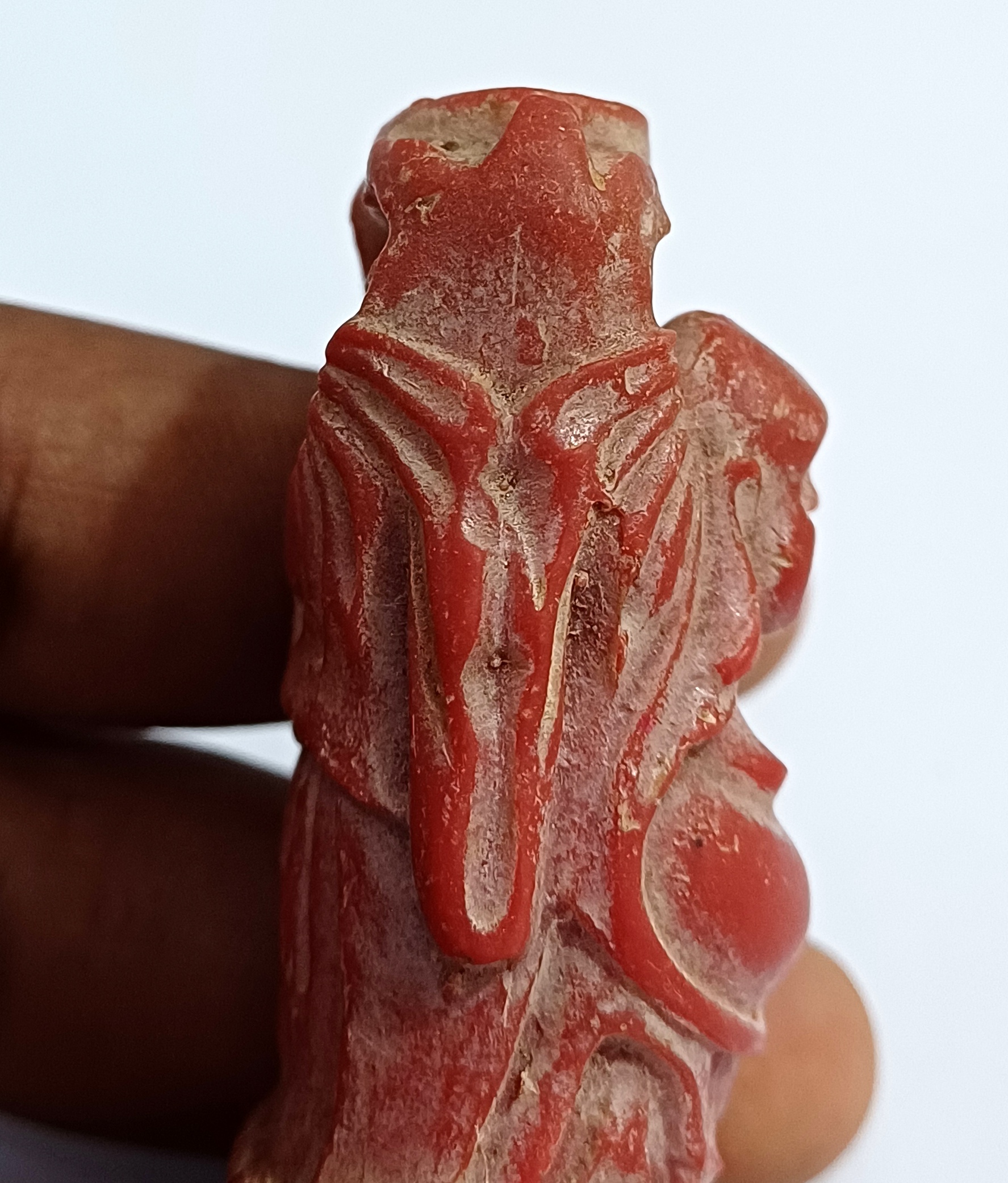 Handcrafted from natural coral gemstone, this 2*1 inch figurine weighs 27 grams and brings prosperity and positivity to your life.