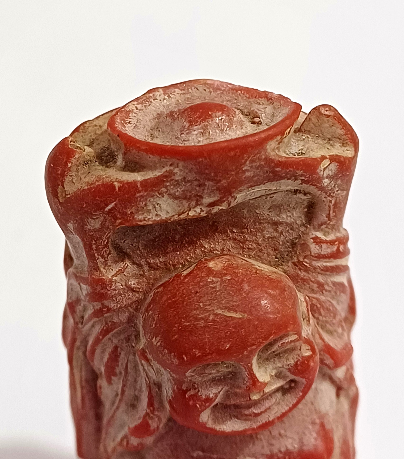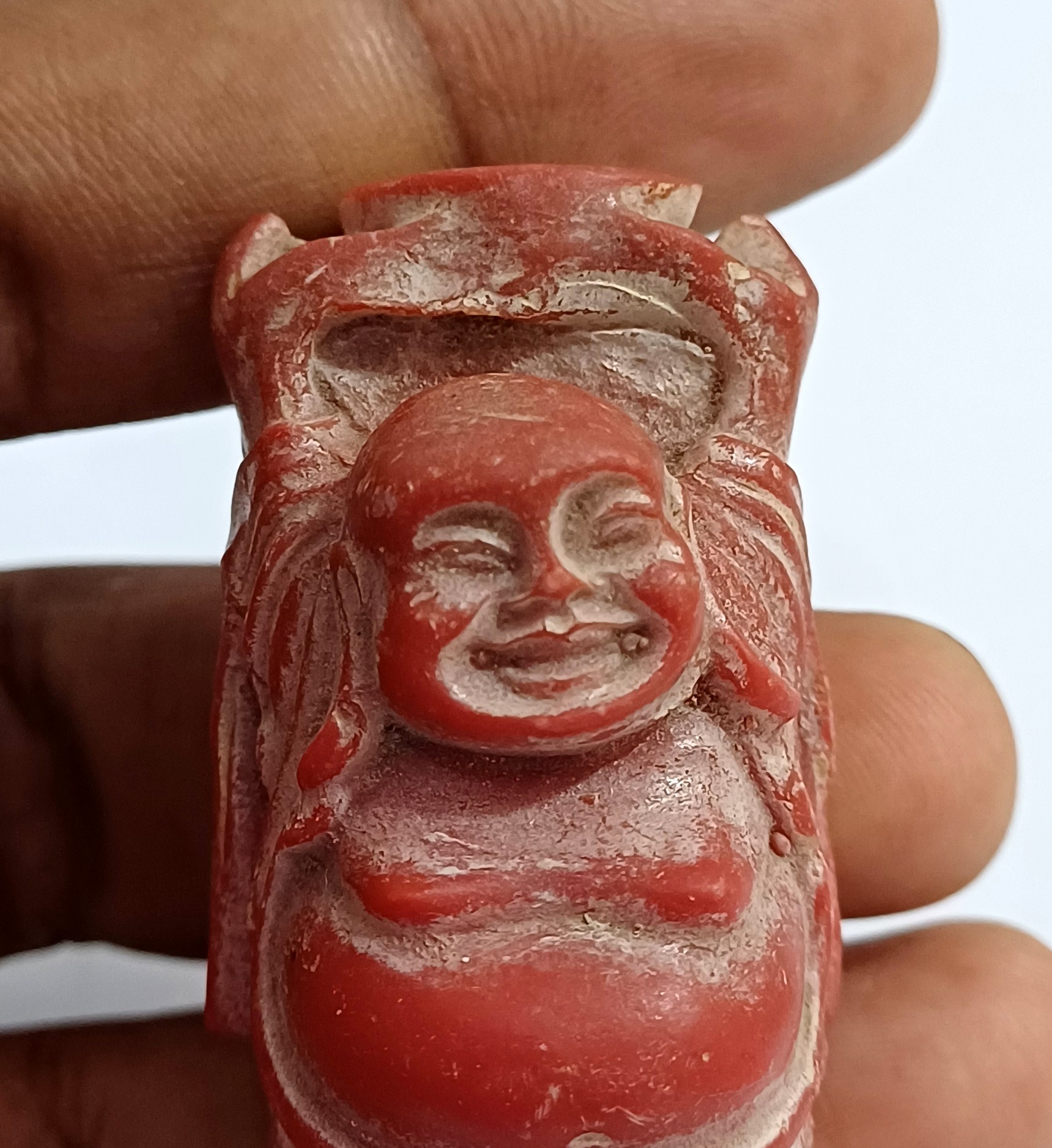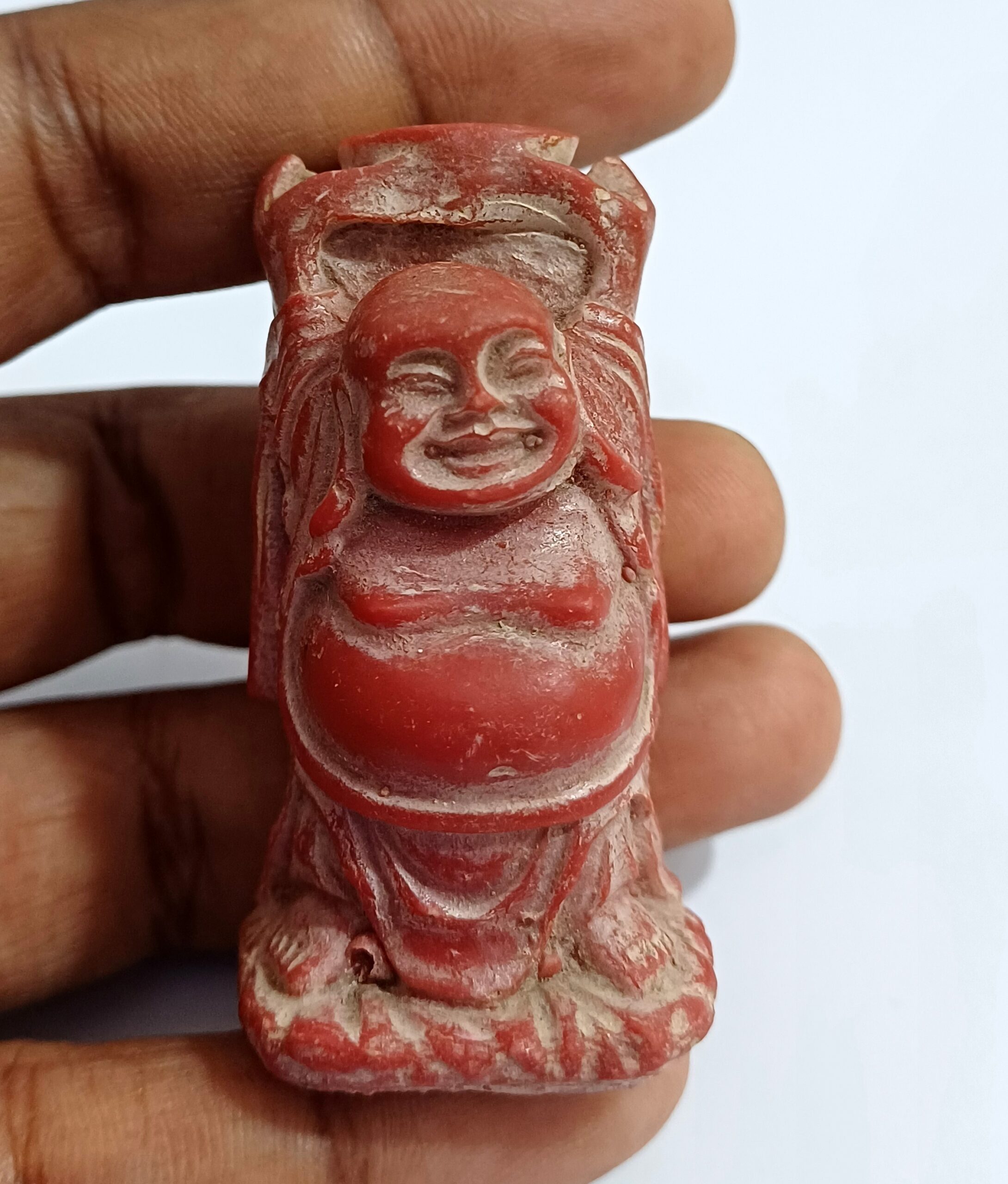 Antique Coral Laughing Buddha Enhance your luck with our Antique Natural Coral Gemstone Carved Laughing Buddha.