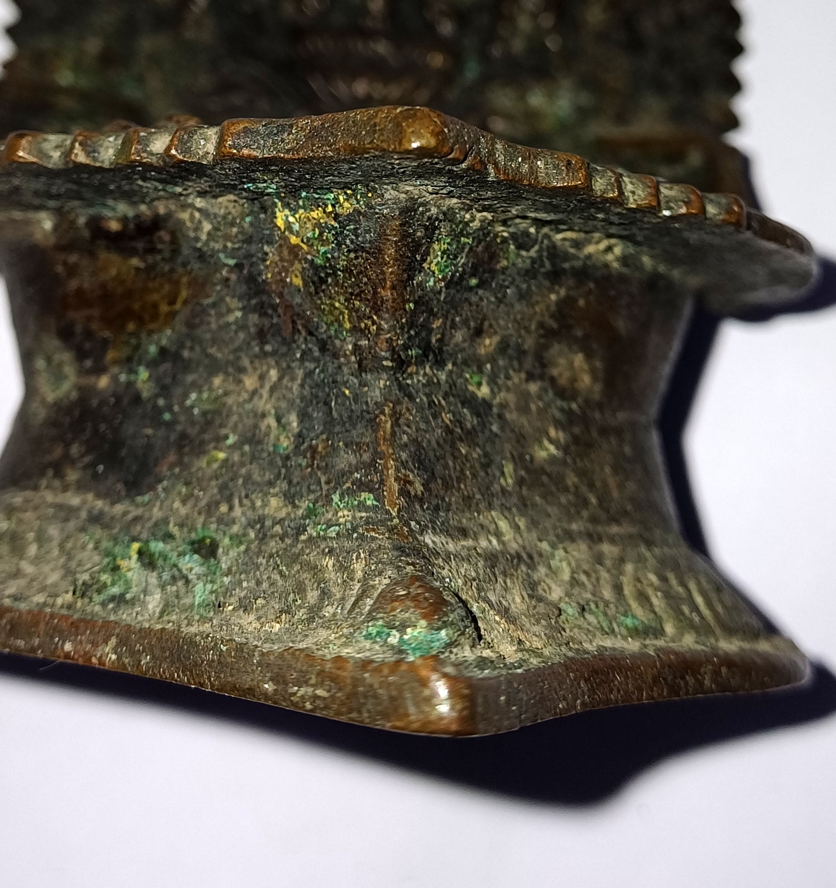 Introducing the Antique Gajalakshmi Oil Lamp, a stunning piece that beautifully blends artistry with tradition. This exquisite lamp, handcrafted from bronze and weighing 335 grams, is a remarkable representation of Indian culture.