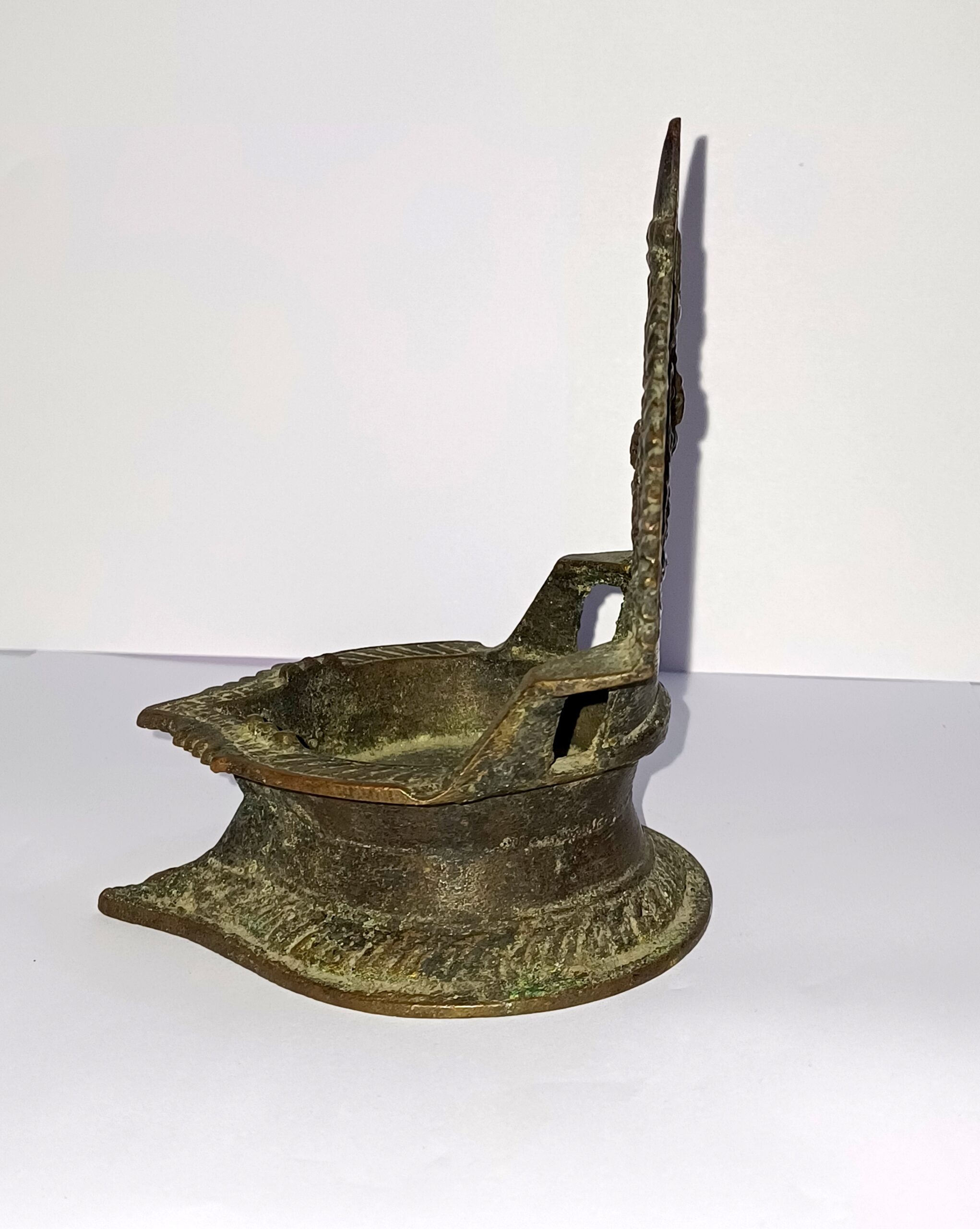 Featuring intricate engravings of two elephants, it exemplifies the rich heritage of artisan craftsmanship. The Antique Gajalakshmi Oil Lamp measures 5*4 MM, making it a perfect size for small spaces while allowing it to stand out as a focal point in your decor.