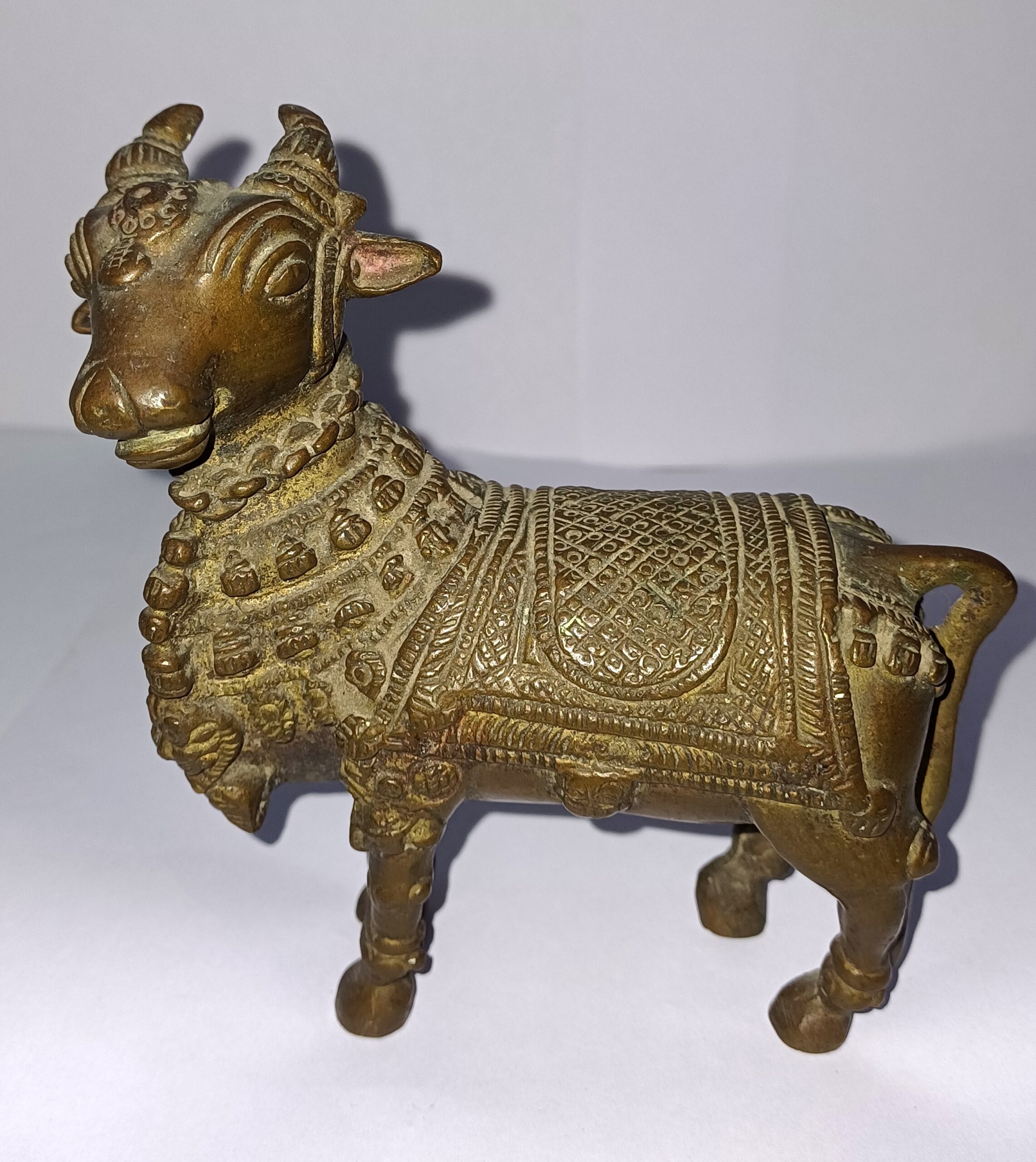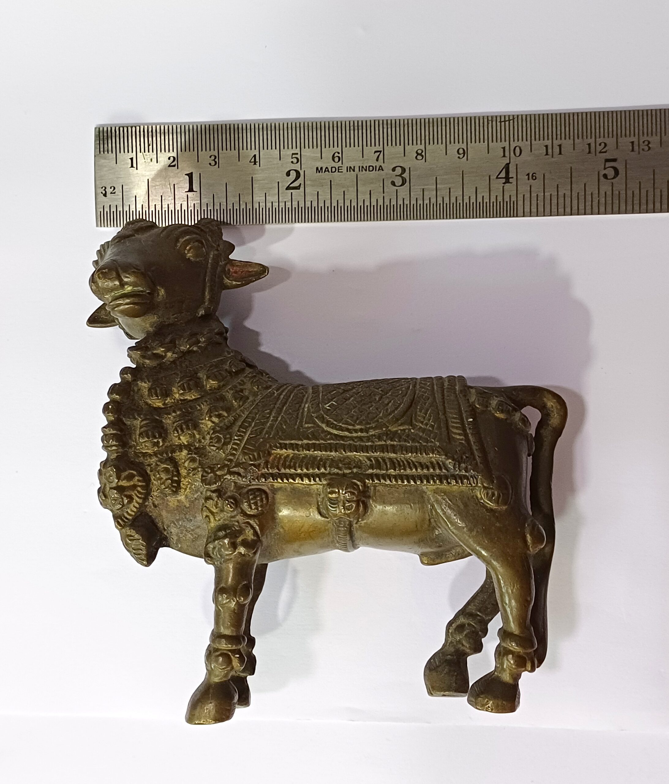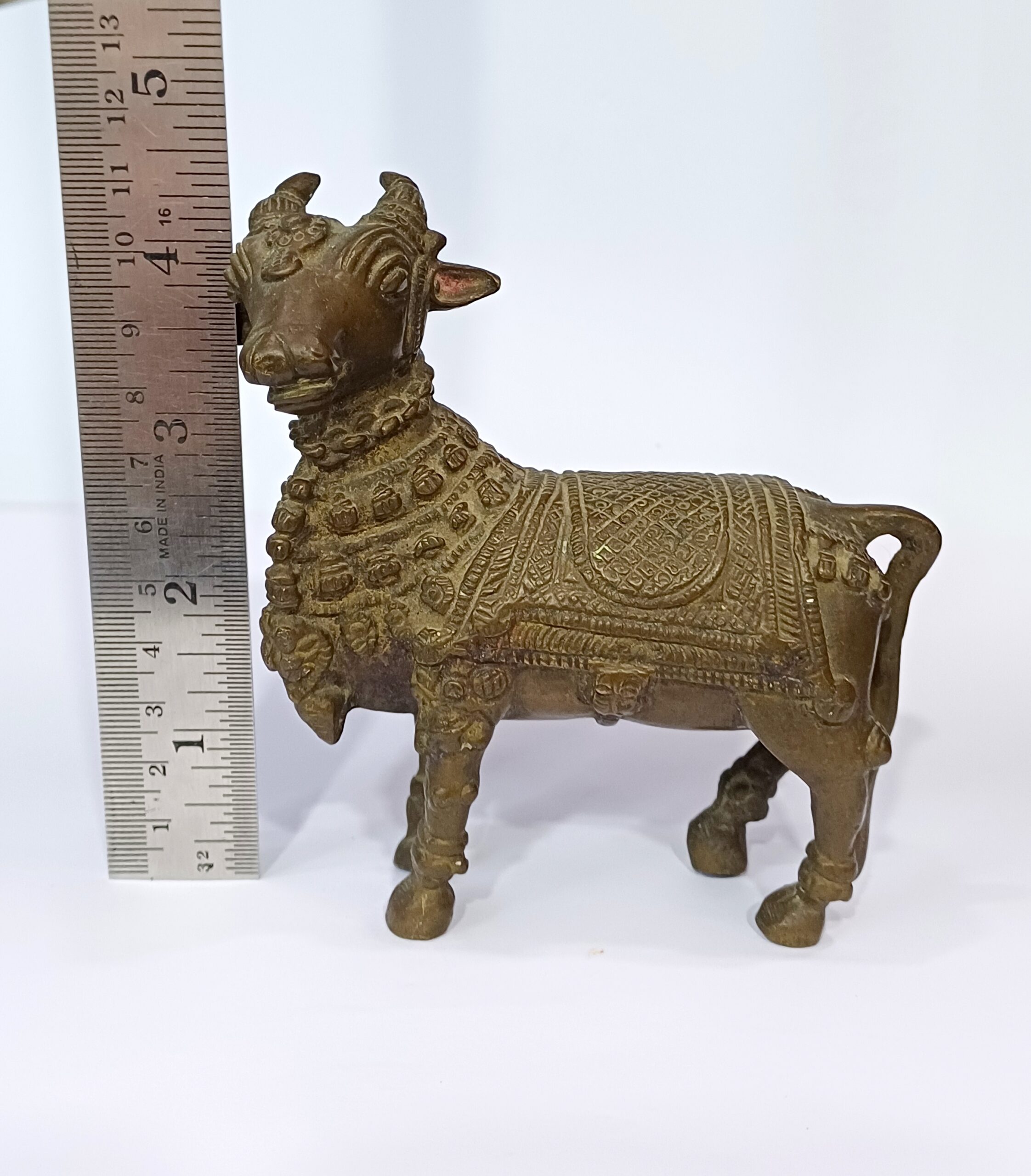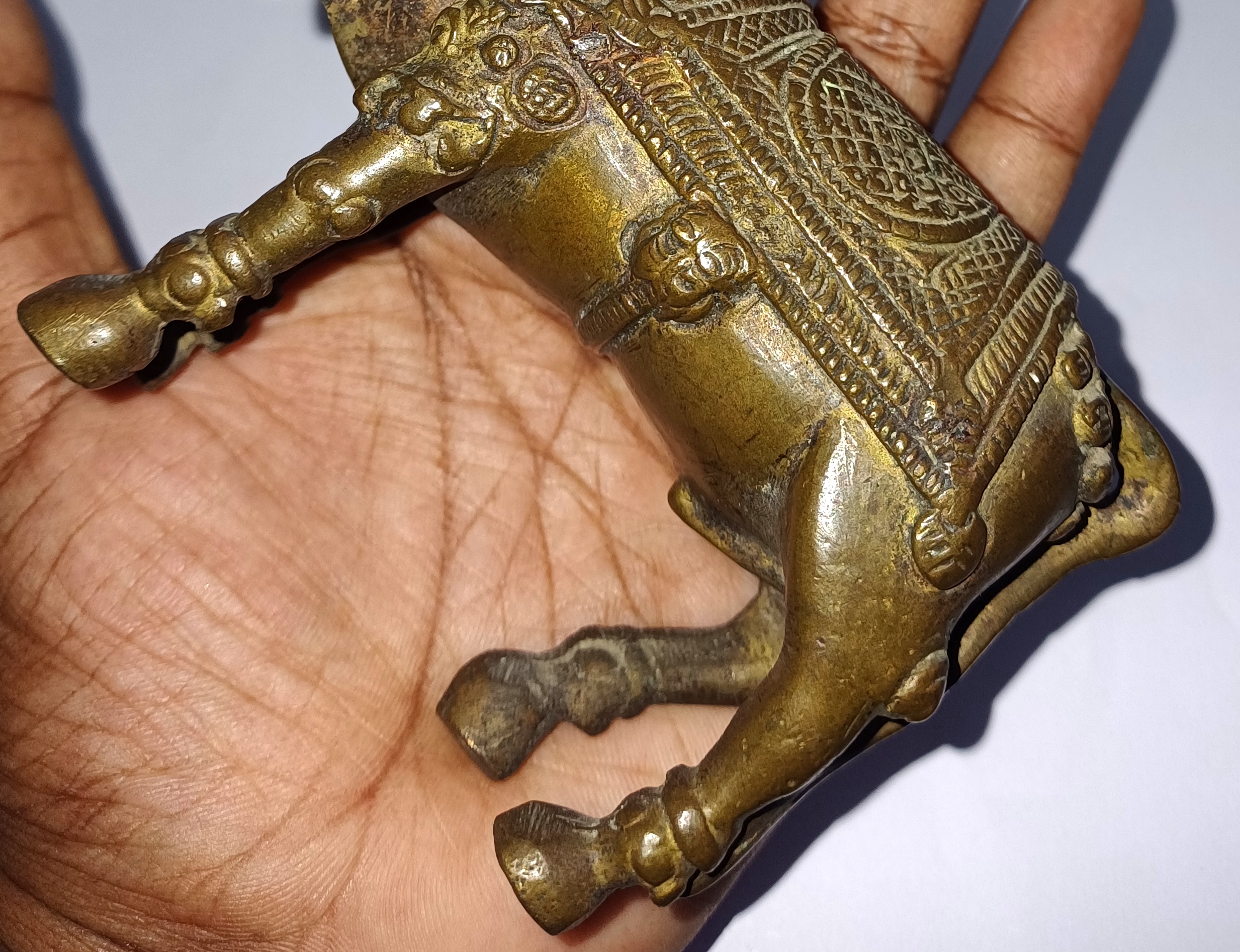 This Antique Kaamdhenu Cow Bronze 19th Century is a rare and sacred find. Measuring 4.5*4.5 inches and weighing 993 grams, it is a beautiful representation of traditional craftsmanship.