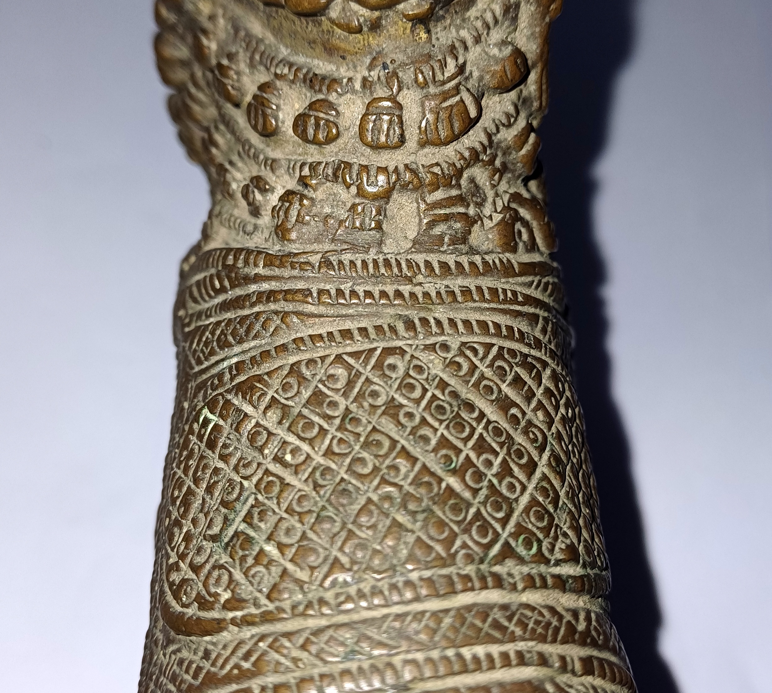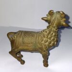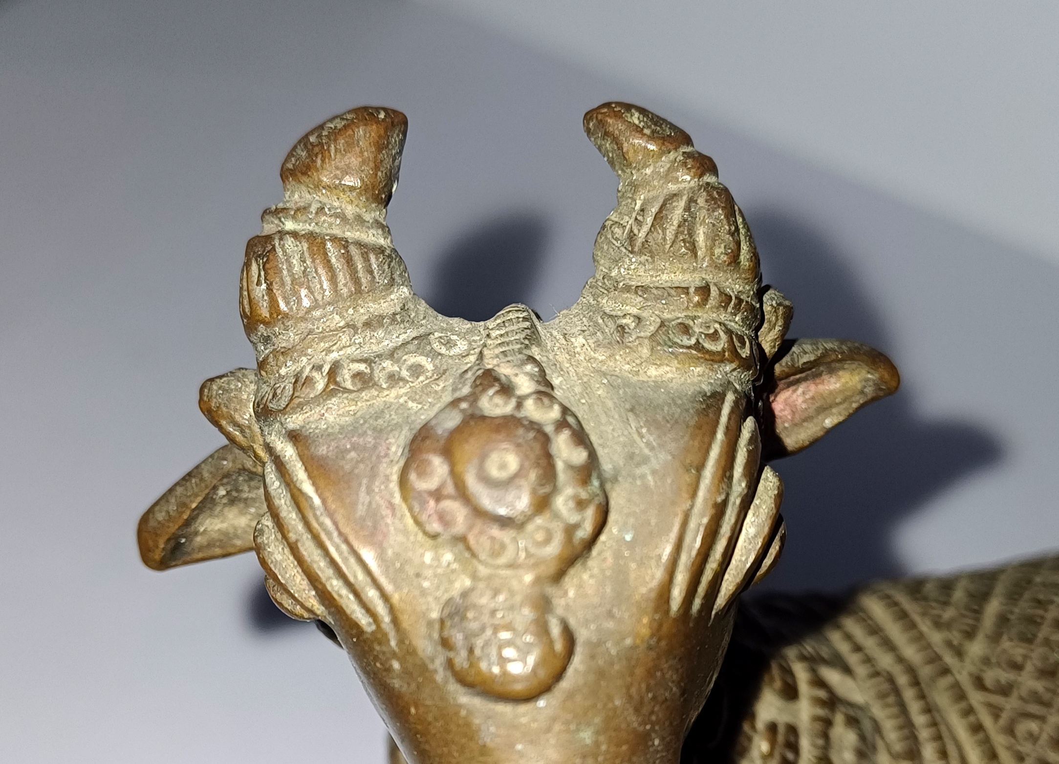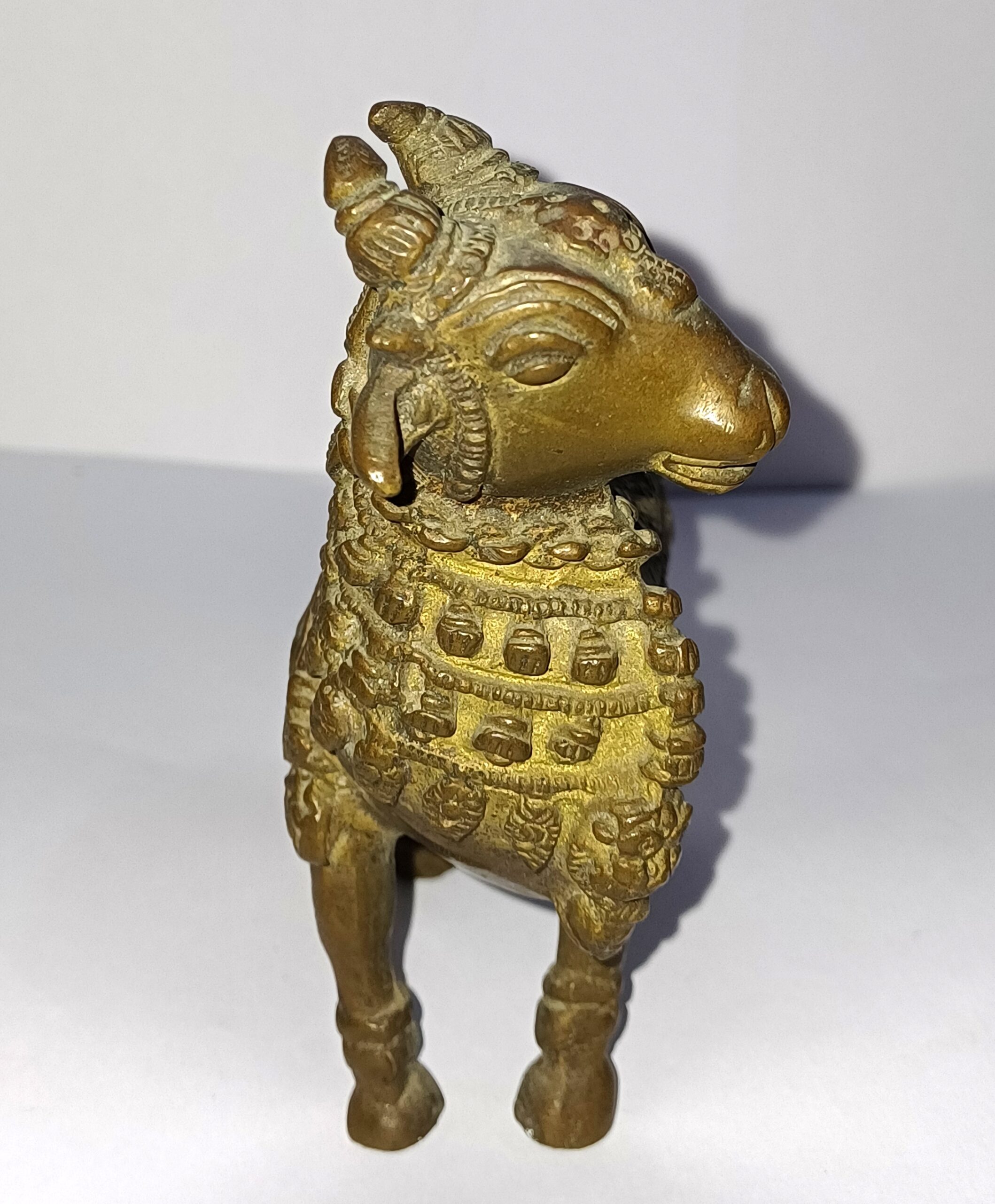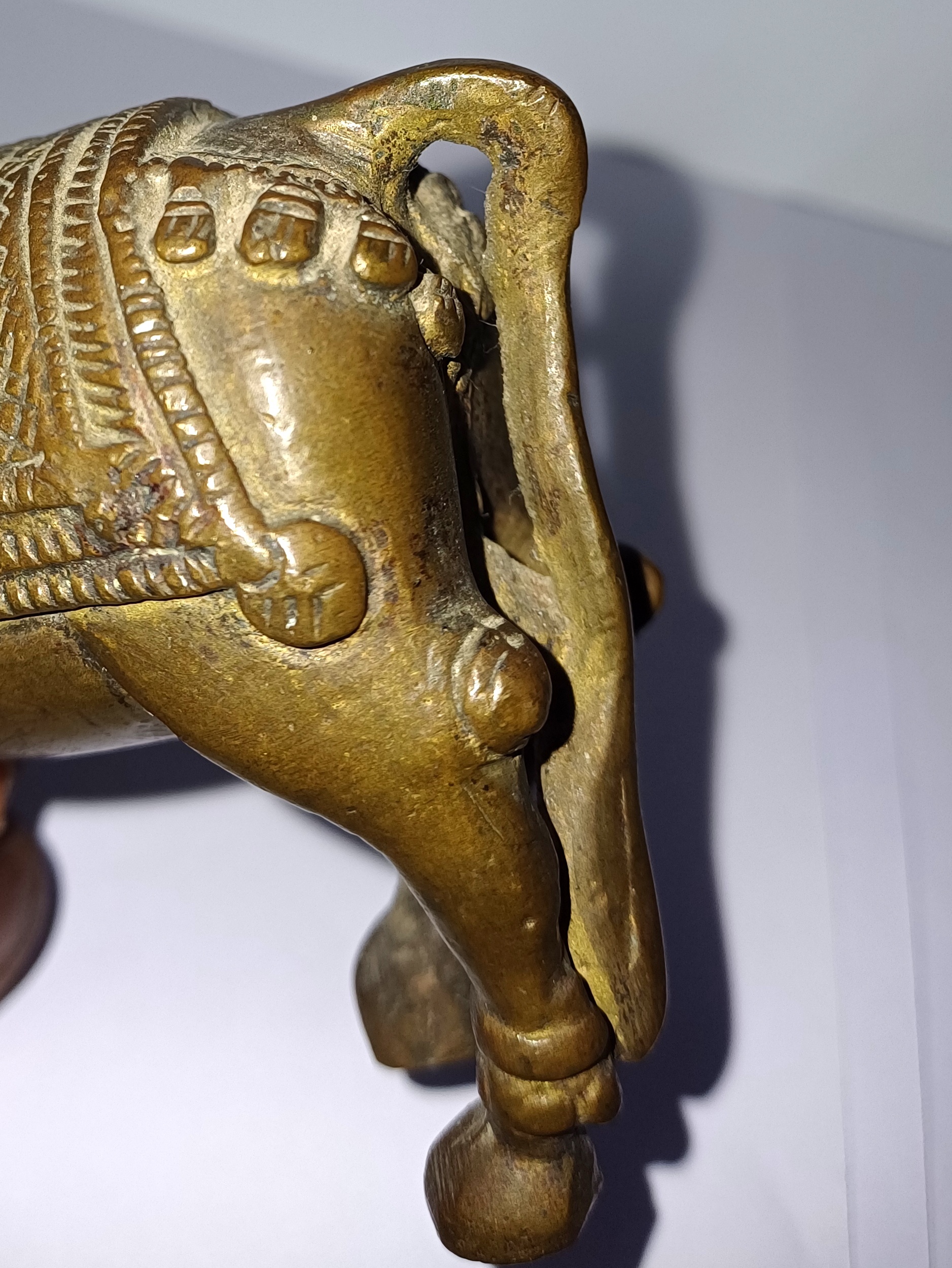 This Antique Kaamdhenu Cow Bronze 19th Century is a rare and sacred find. Measuring 4.5*4.5 inches and weighing 993 grams, it is a beautiful representation of traditional craftsmanship.
