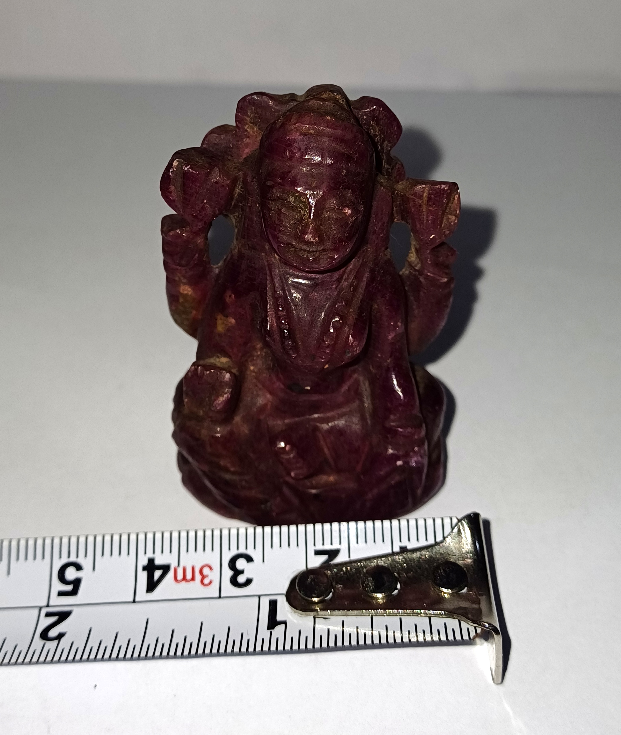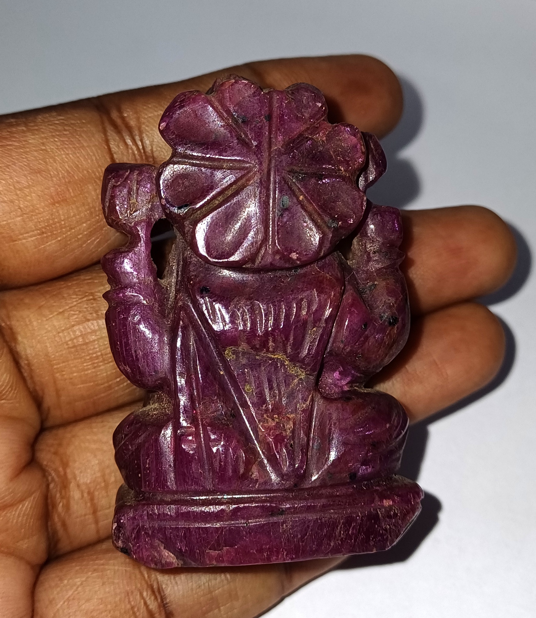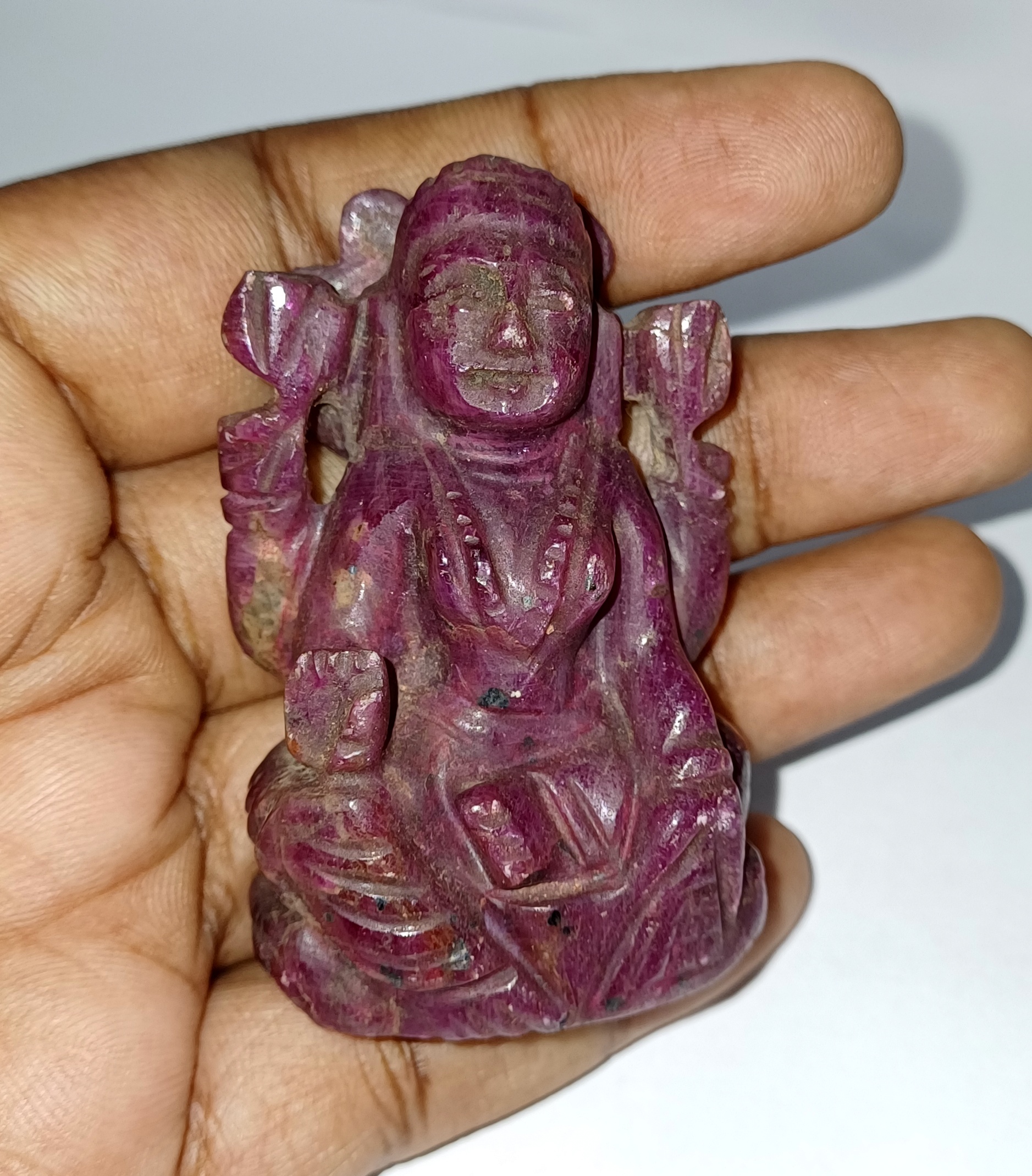 Handcrafted with precision, this 2*1.5 inch idol is made with 78 grams of genuine ruby gemstone.