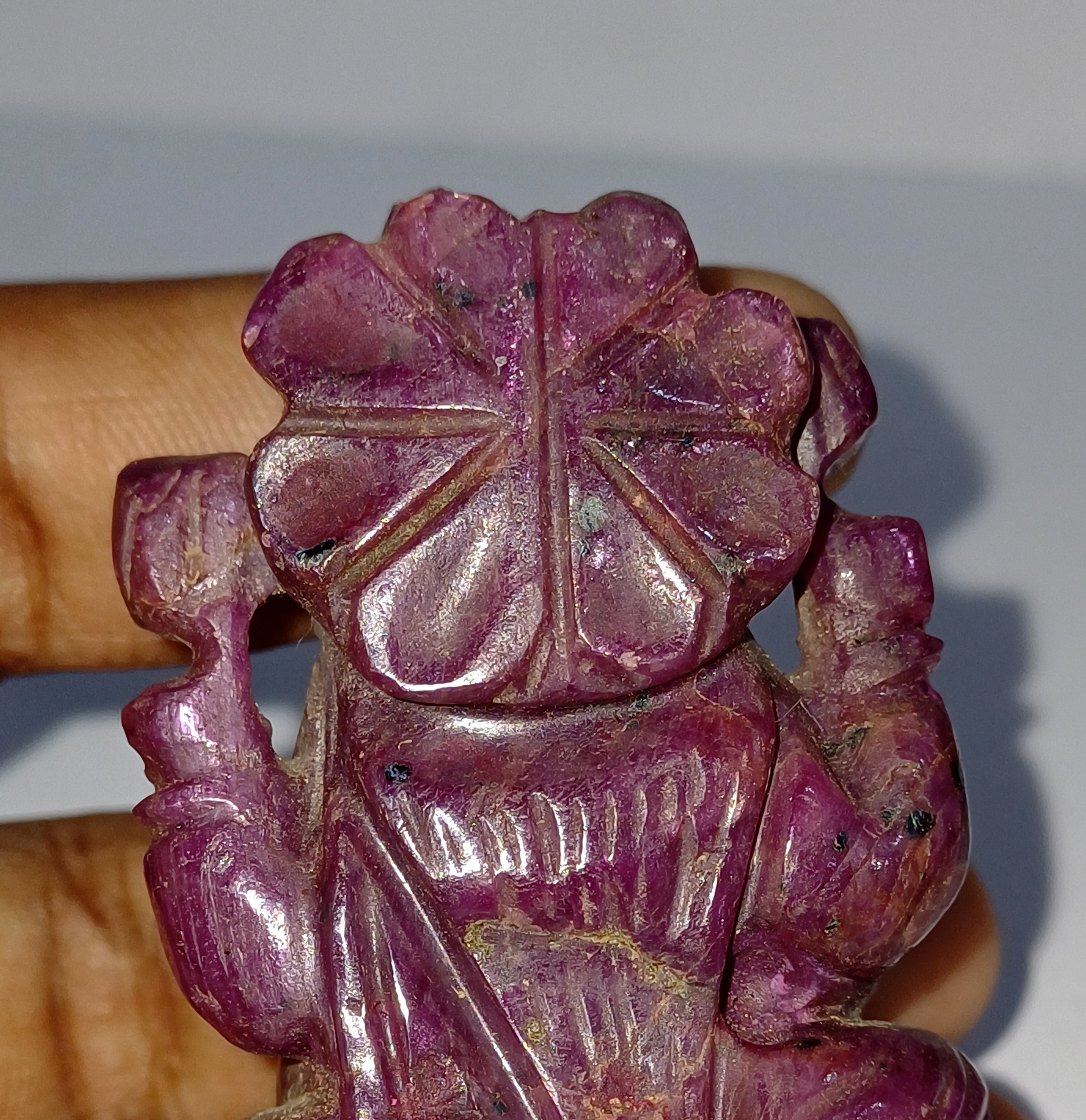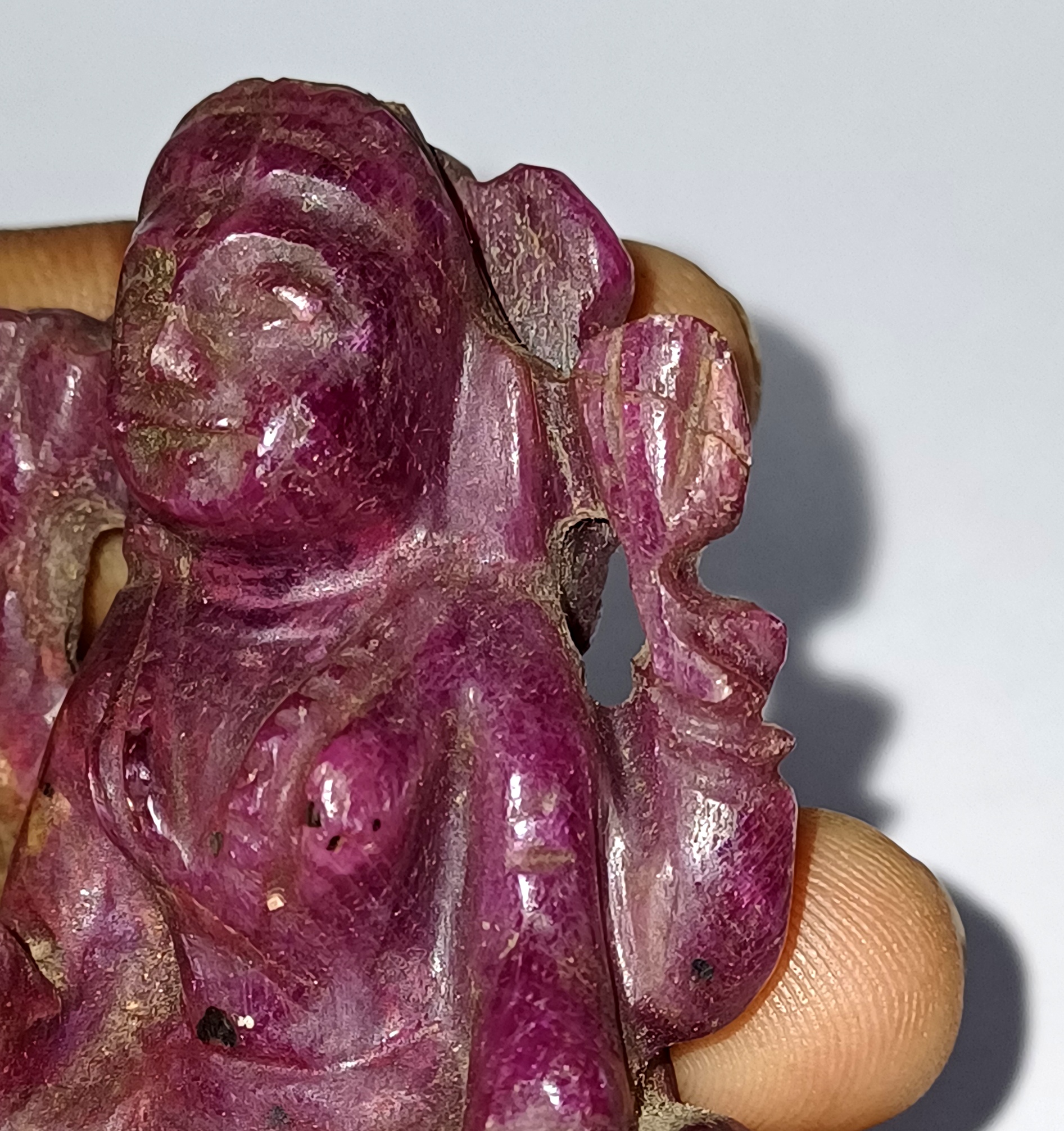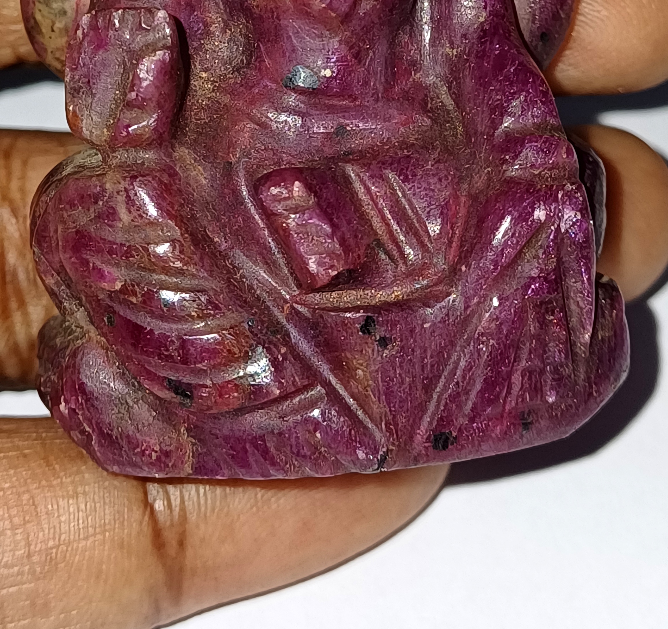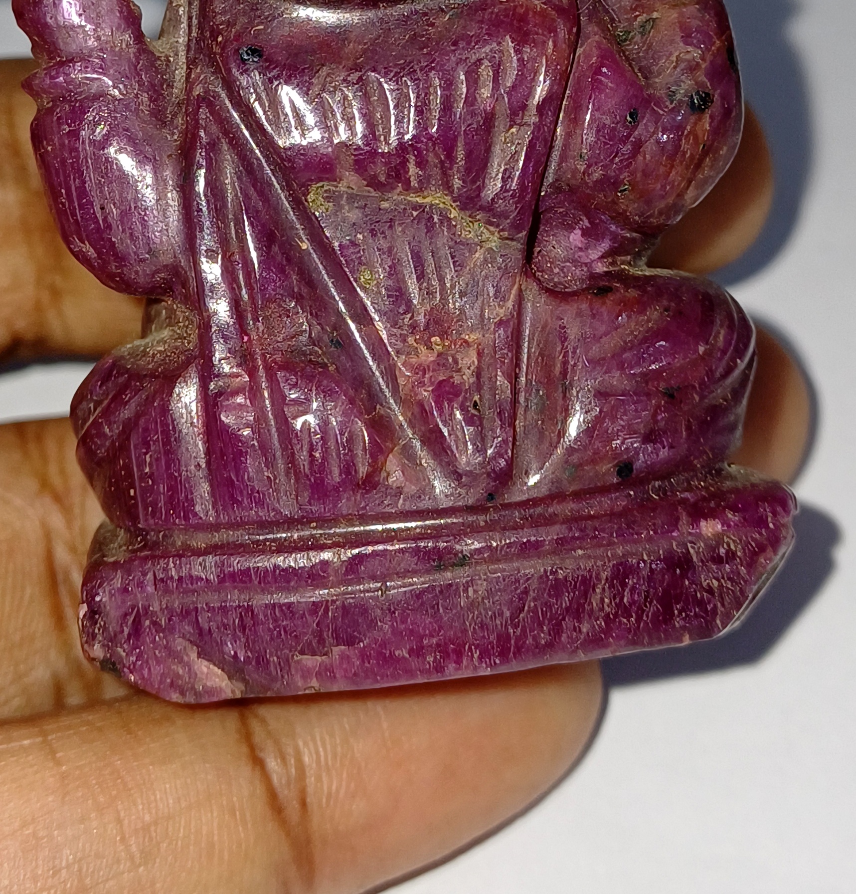 Handcrafted with precision, this 2*1.5 inch idol is made with 78 grams of genuine ruby gemstone.