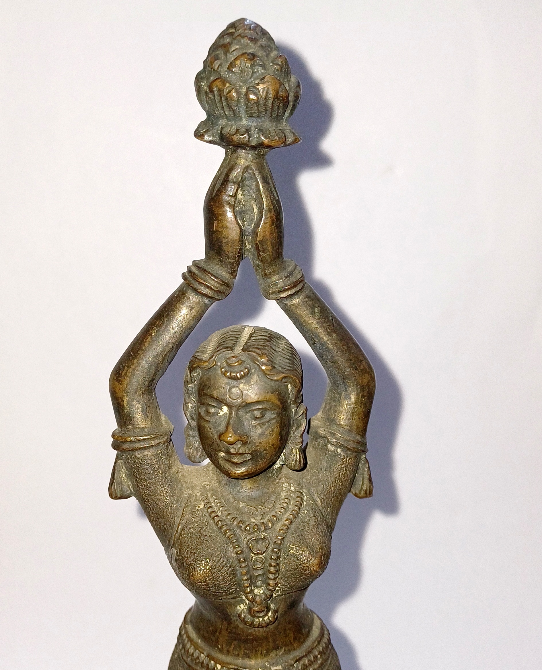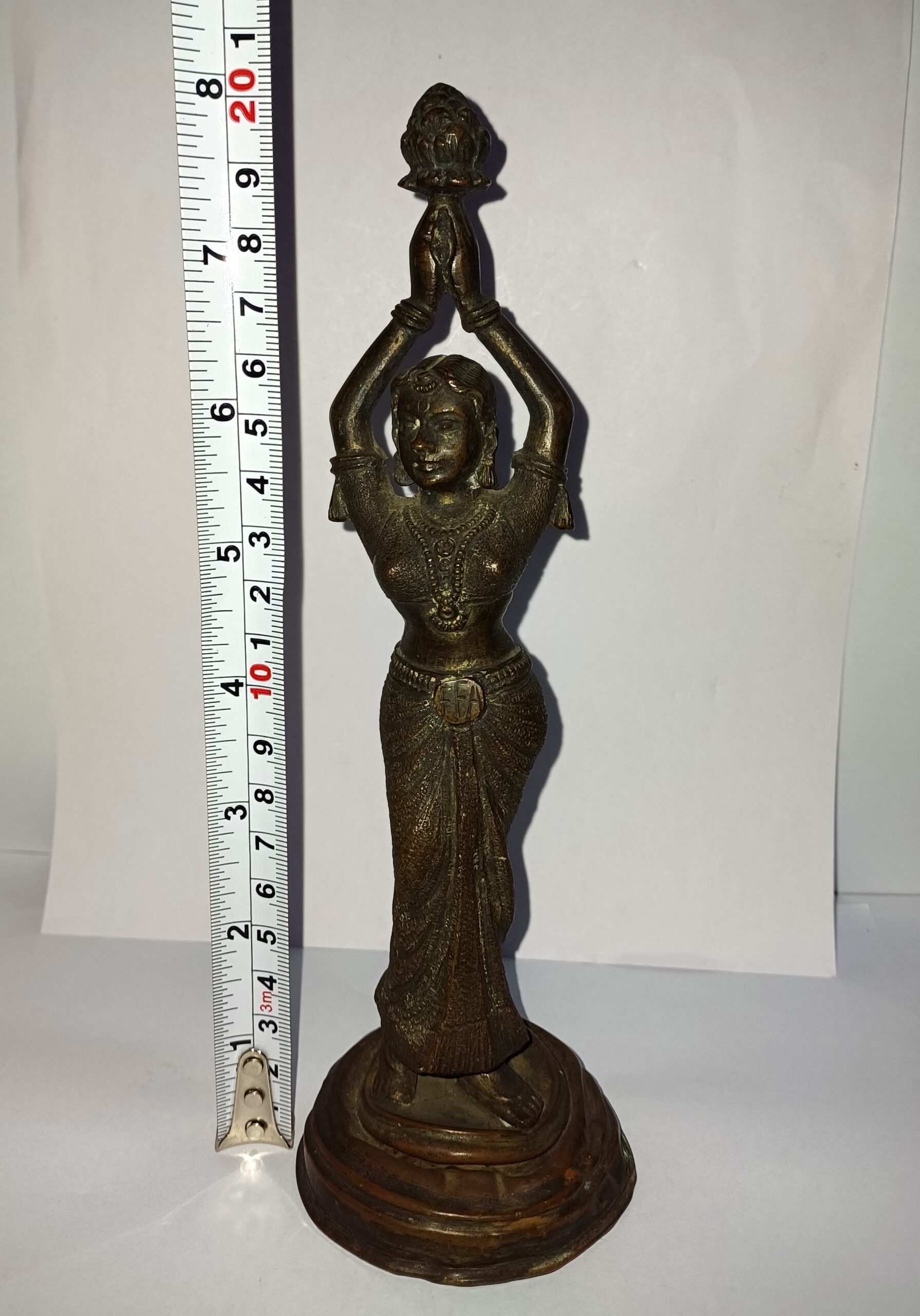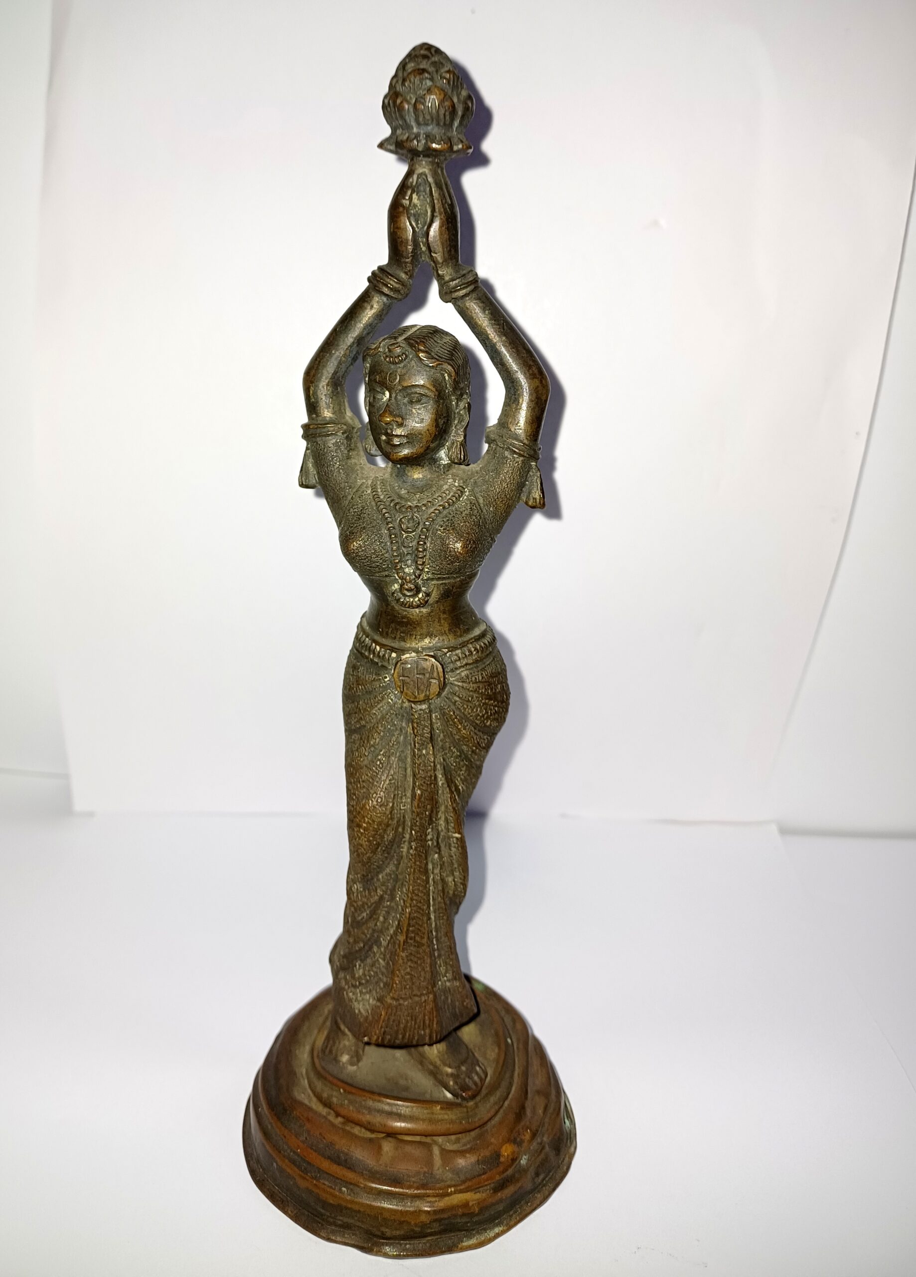 Antique South Indian Bronze Lady Idol – Handcrafted Hindu Statue – Dancing Woman with Lotus