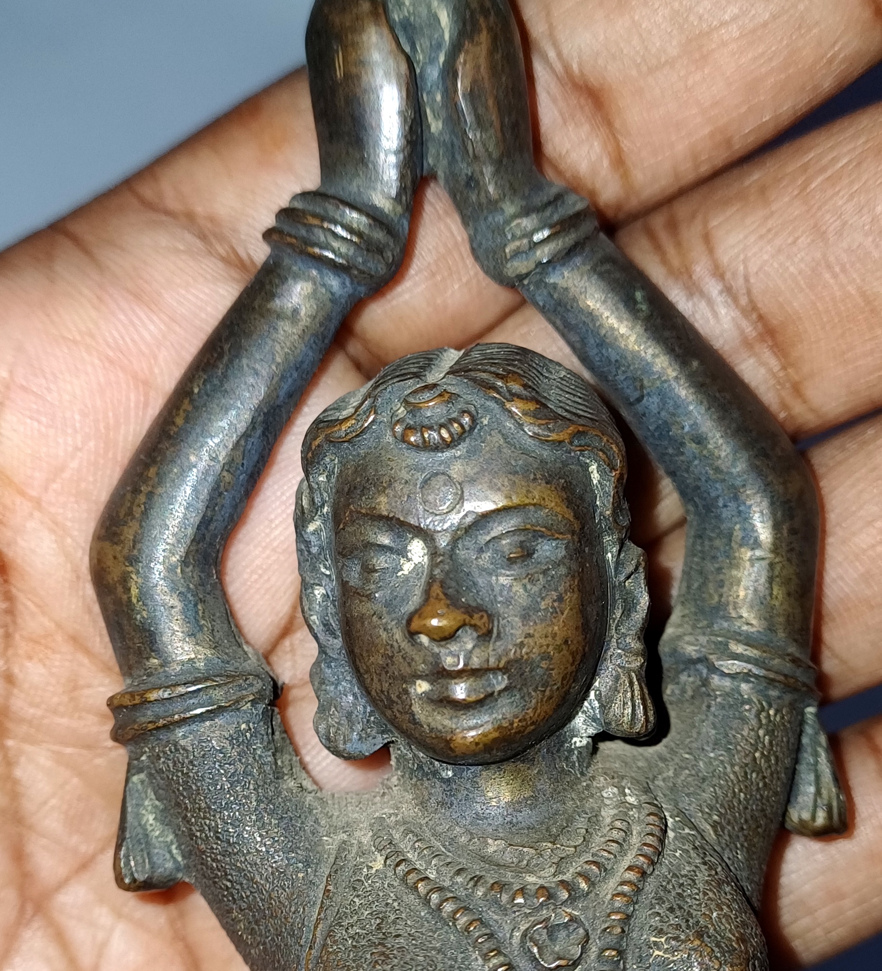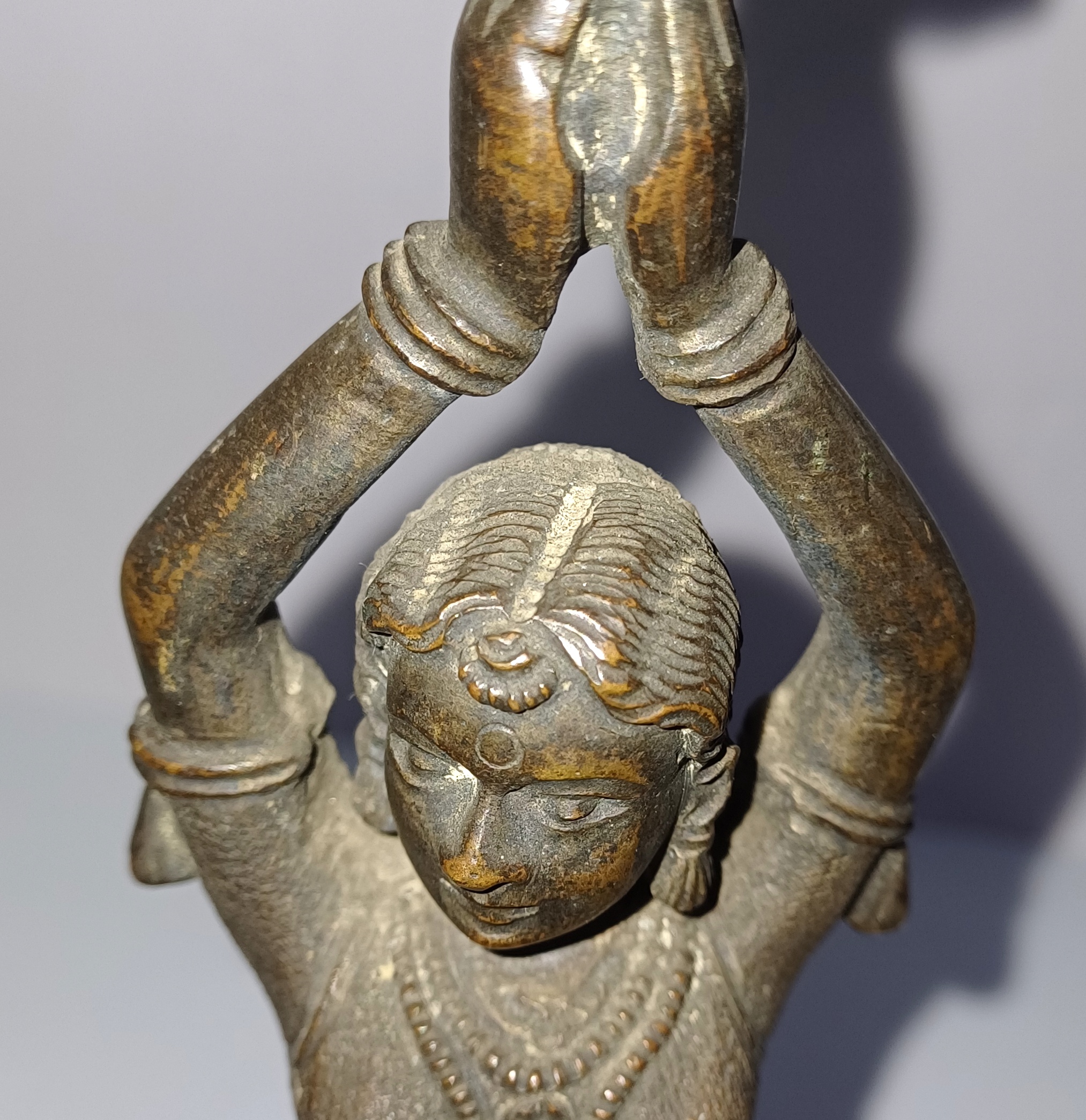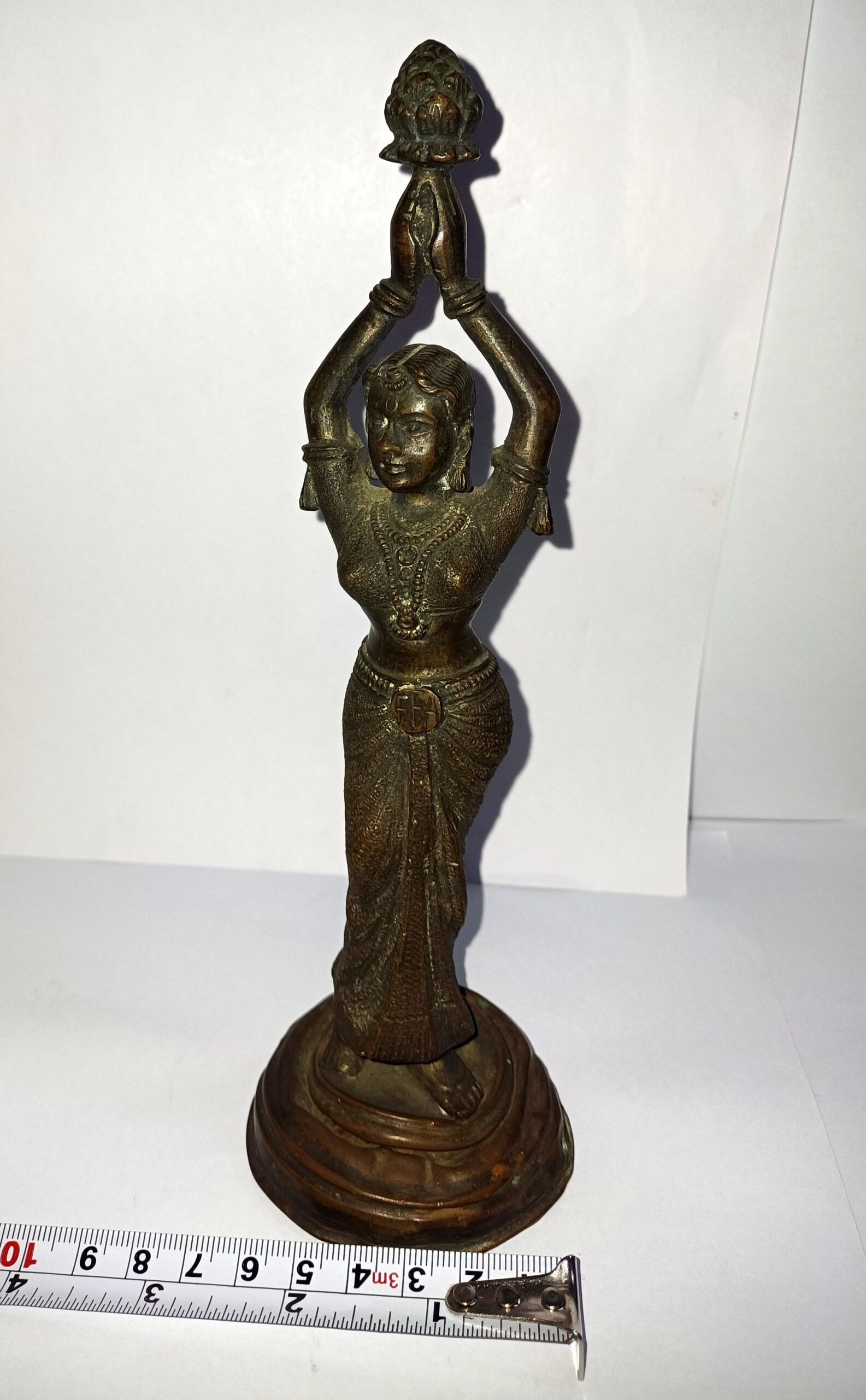 Antique South Indian Bronze Lady Idol – Handcrafted Hindu Statue – Dancing Woman with Lotus