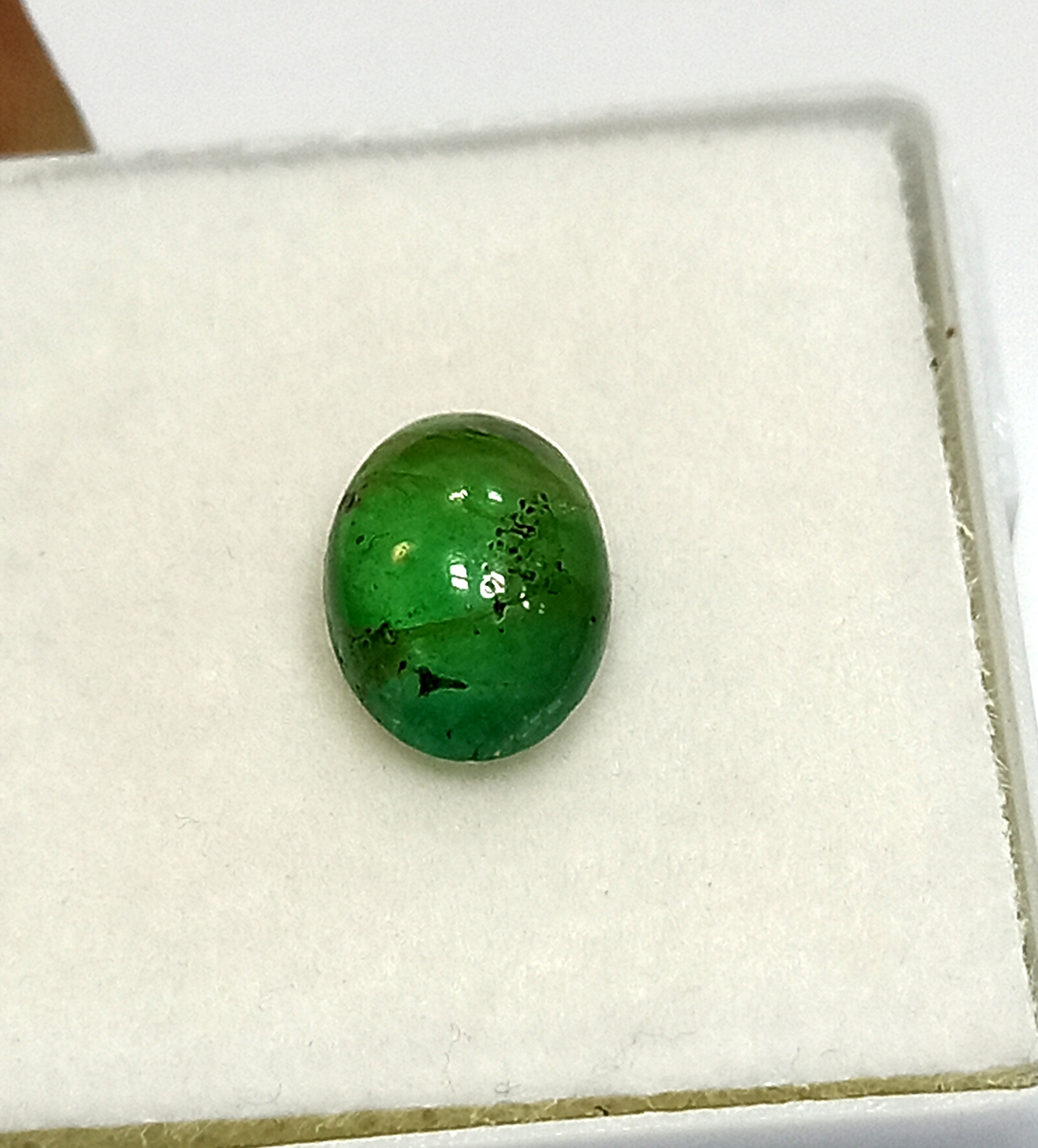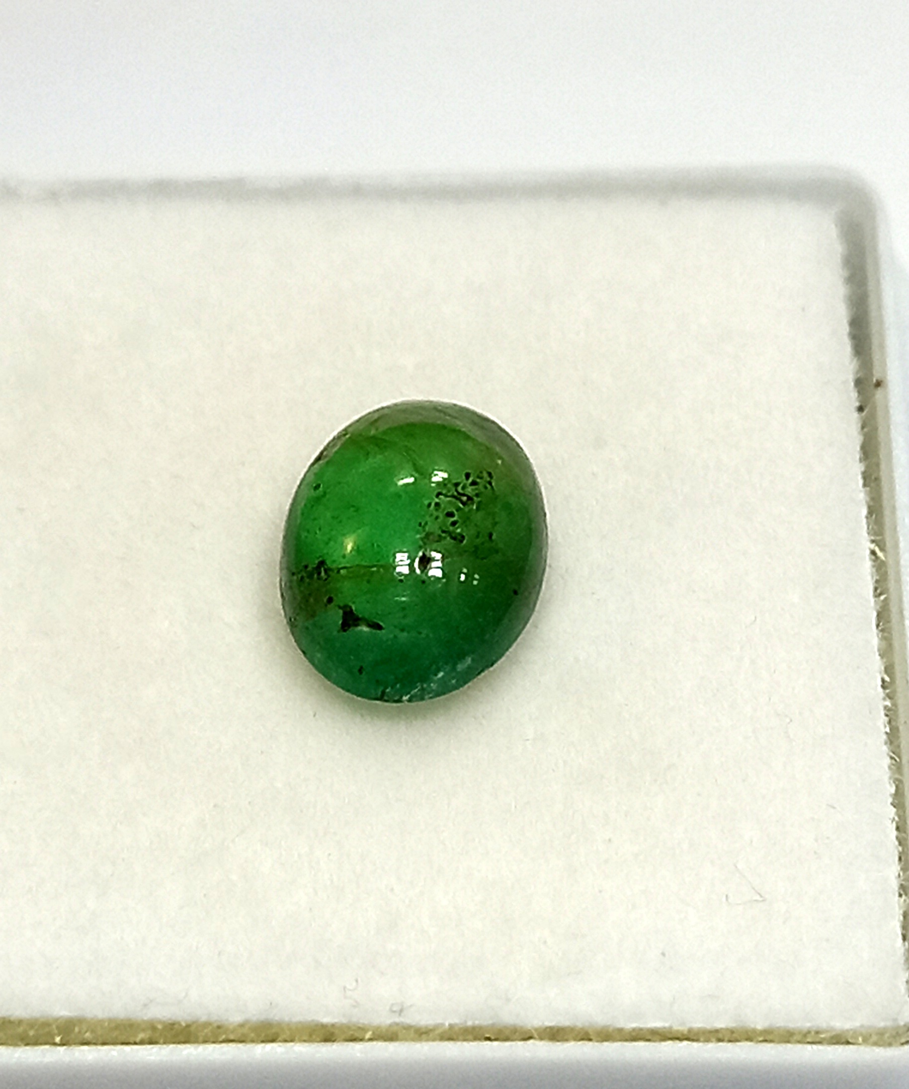 Emerald Oval Cabochon This beautiful Emerald gemstone originates from Zambia and has a total weight of 1.63 carats.