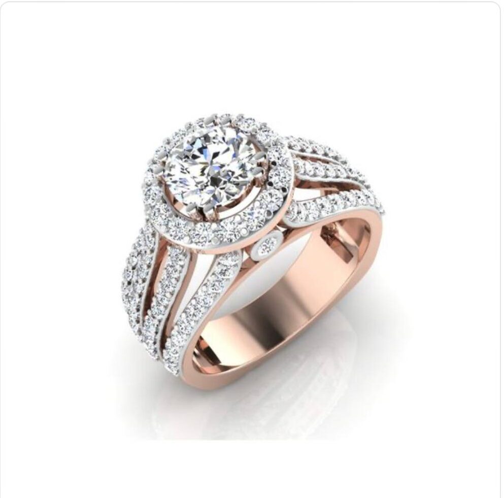 Gold Diamond Ring 5.500 Grams in 3 Gold Colors Yellow, Rose and White Gold mounted with EF VVS Diamonds