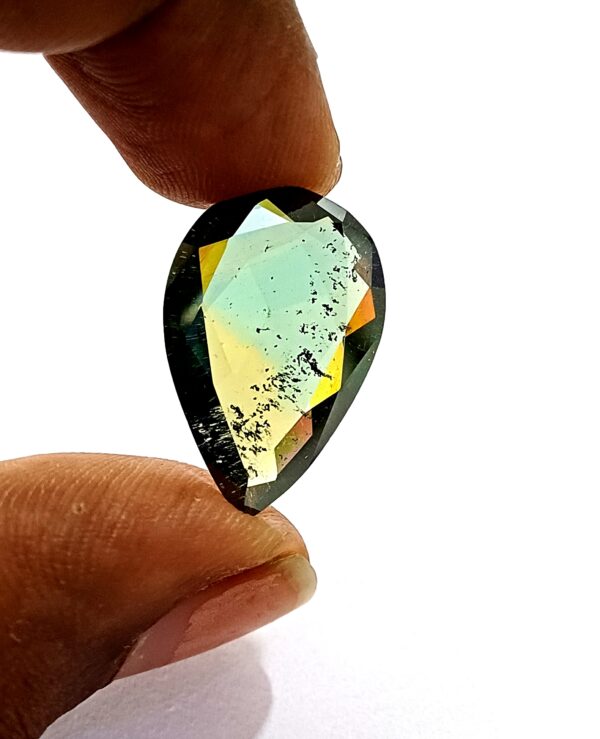 Moissanite Pear Cut Diamond Expertly crafted and precisely cut, this 5.55 carat Moissanite Diamond boasts a stunning natural metallic green color.