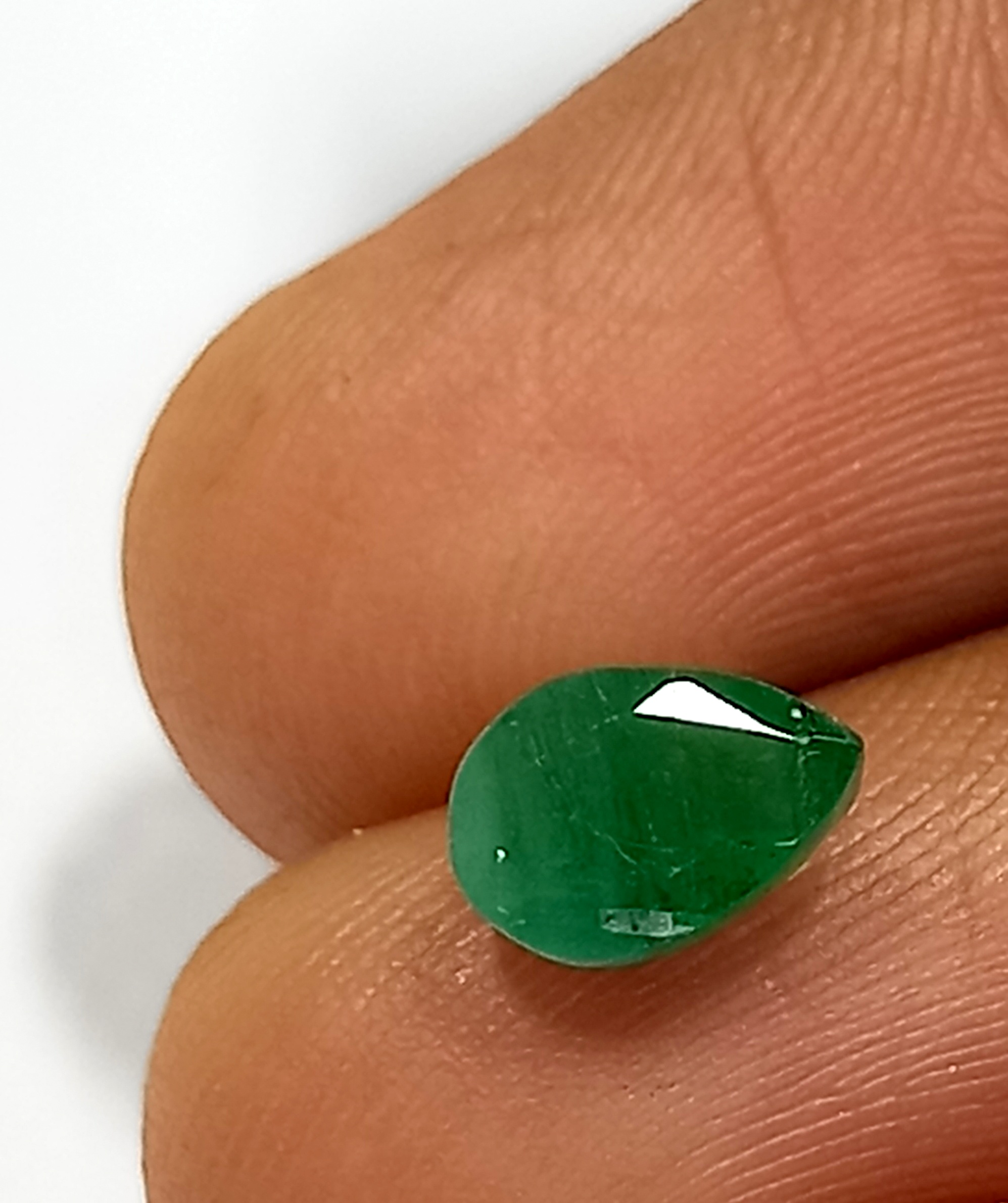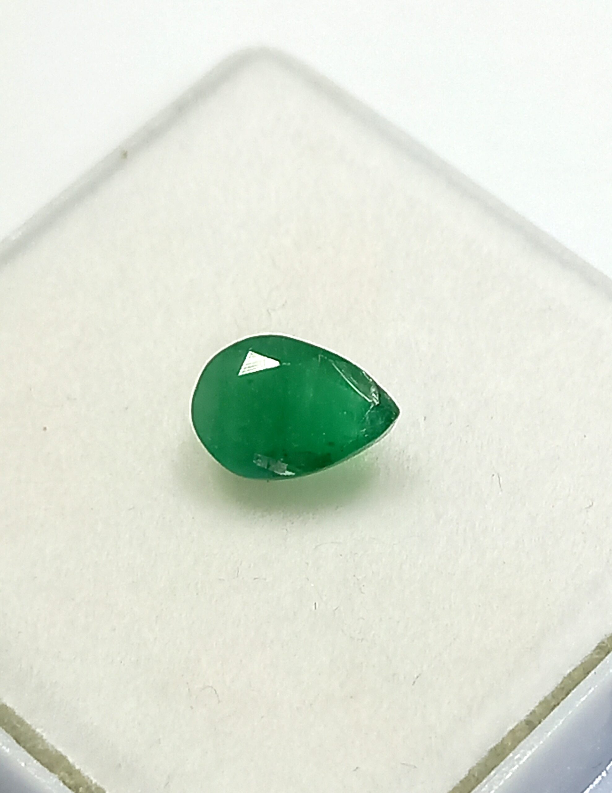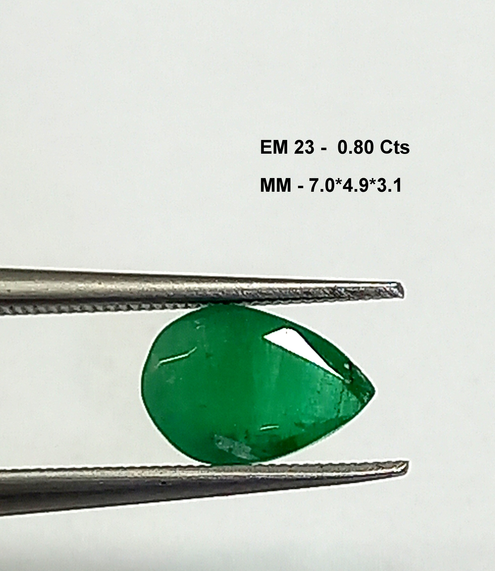 This Natural Zambian Emerald gemstone boasts a stunning pear cut and weighs 0.80 cts. Sourced from Zambia, it measures 7.0*4.9 mm and is 100% natural.