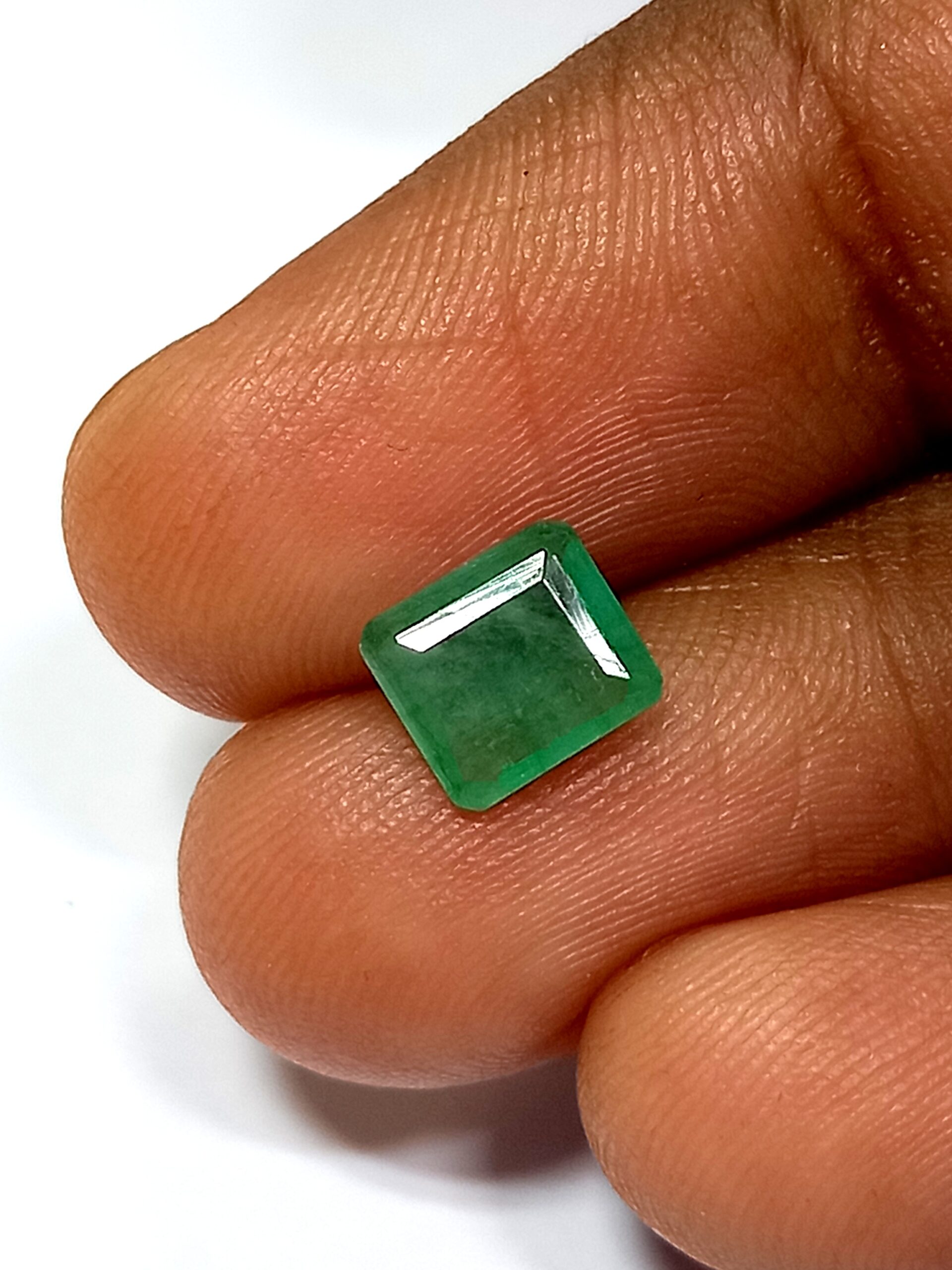 Expertly cut and sourced from Zambia, this 0.90 carat natural Zambian Emerald gemstone boasts a stunning emerald cut measuring 6.4*5.7 MM.