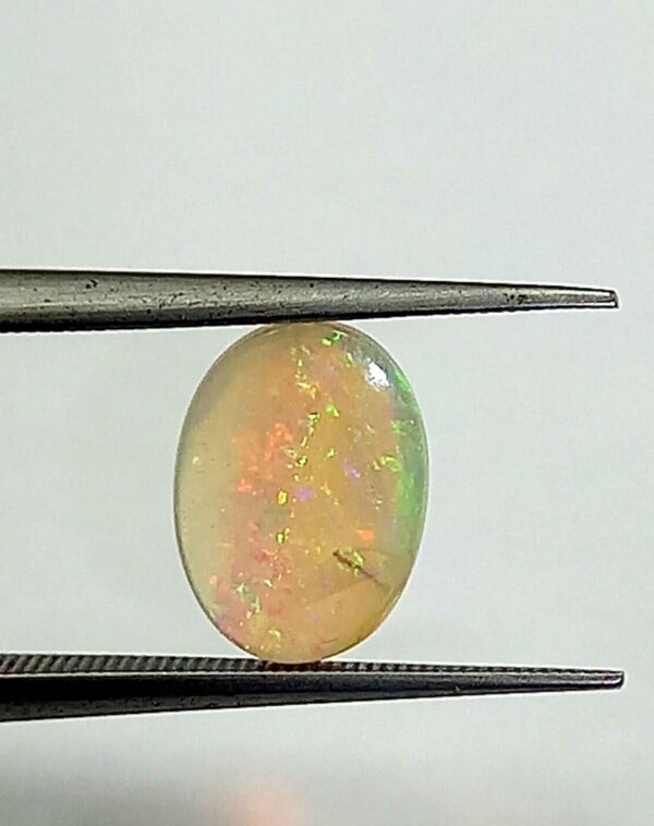 The oval cabochon shape measures 8.9*6.5 MM and showcases a stunning white multicolor hue.